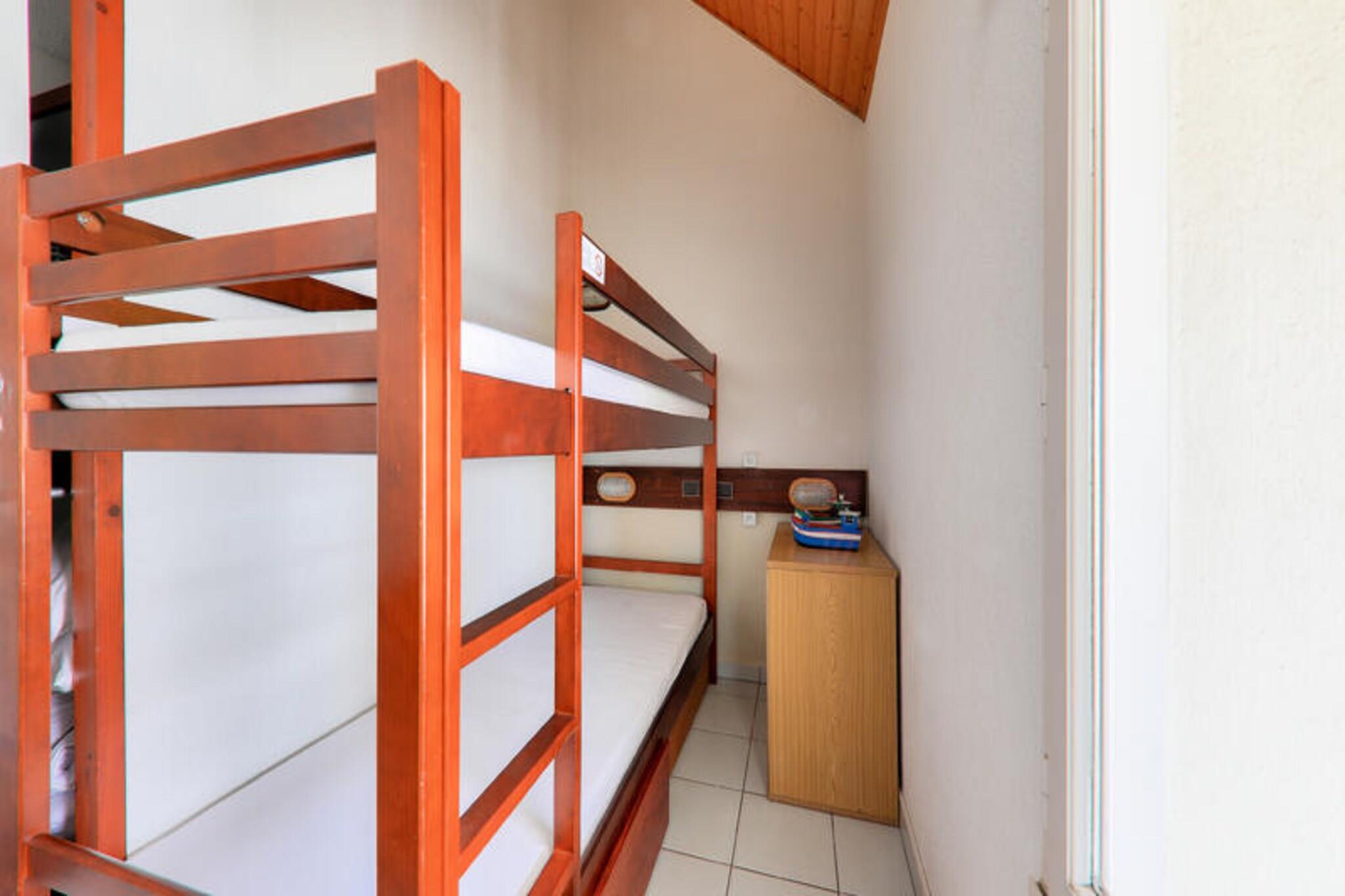 Segundo distrito de un pueblo acogedor, la residencia Port du Crouesty Village distribuye sus fachadas tradicionales bretonas a pocos pasos del puerto y del océano, en la península de Rhuys, entre el golfo de Morbihan y la bahía de Quiberon. Disfrute de sus vacaciones en Bretaña en elegantes casas de granito con tejados de pizarra y balcones de madera blanca. A sólo 300 metros de la playa de Fogeo, de un kilómetro de longitud, le esperan apartamentos confortables y totalmente equipados. Explore la amplia gama de actividades de ocio que se ofrecen en el lugar, desde natación hasta voleibol de playa, a 200 metros de los restaurantes y tiendas de Port Crouesty. ¡O también podrás disfrutar del placer de un fin de semana de talasoterapia en Bretaña, gracias al acceso directo al centro de talasoterapia Miramar Crouesty! Apreciarás: La playa de Fogeo y sus actividades de ocio a unos 300 metros. Acceso directo al centro de talasoterapia Miramar Crouesty. Alojamiento confortable a pocos pasos del puerto, el mar, tiendas y restaurantes. Su alquiler vacacional incluye: 1 salón, 1 cocina, 3 dormitorios, 2 baños, 1 aseo independiente y 1 plaza de aparcamiento. Las ventajas de su alquiler: Apartamento dúplex para 6 personas, vista al mar, situado cerca del mar, de actividades y comercios, acceso a la piscina de la residencia y con parking. Superficie: 42 m². Ubicación : Piso de alojamiento: 2do piso Acceso a playa o pista: Acceso directo al mar (junto al mar) Centro de la ciudad o pueblo: Centro del pueblo Distancia de pistas al mar: entre 100m y 500m Distancia comercial: entre 100m y 500m Actividades a distancia: entre 100m y 500m Número de niveles de vivienda: 1 piso / Dúplex Composición del salón: Sofá cama del salón: 1 Plazas para sentarse en el sofá: 5 Mesa de centro: Sí Lado de la comida: Tipo de cocina: americana Composición de las habitaciones: Dormitorio 1: Literas: 1 Dormitorio 2: Cama doble 2:1 Dormitorio 3: Cama individual: 1 Composición del baño: Número de baños: 2 Número de baños separados: 1 Baño principal: Tipo de baño: Bañera con columna Una toma de corriente libre cerca del espejo: Sí Perchero(s) o secador de toallas sin calefacción: Sí Cuarto de baño núm. 2: Tipo de baño: Ducha Estado del baño: Buen estado Una toma de corriente libre cerca del espejo: Sí Perchero(s) o secador de toallas sin calefacción: Sí Secador de toallas eléctrico: Sí Exteriores: Aparcamiento dedicado al alojamiento: Sí Tipo de estacionamiento: al aire libre Etiqueta Maeva Home Confort: buena relación calidad-precio. Servicios correctos, alojamiento mantenido y equipado con las principales comodidades. Lo imprescindible para unas vacaciones al mejor precio. Acceso Wifi - Con suplemento - sujeto a disponibilidad. Se admiten mascotas - Además, consultar precios directamente con la residencia. Kit Bebé - Sujeto a disponibilidad: 1 cuna plegable (norma NF EN 716), 1 silla para bebé (a partir de 6 meses), 1 cambiador, 1 cochecito: el contenido puede variar según la residencia) - precios a consultar en recepción. Ropa de cama - Con coste adicional - El contenido puede variar según la residencia: sábana bajera, sábana o funda nórdica y funda de almohada. Toallas - Cargo extra. Posibilidad de cambio de ropa de diario disponible, consultar precios en recepción. Limpieza final de estancia - Servicio de limpieza obligatorio a pagar al realizar el check-in o a la llegada. Estacionamiento - Al aire libre, gratuito sujeto a disponibilidad de espacios. Piscina - Abierta hasta el 15/09/2024 Tasa turística (cargo adicional) - El pago de la tasa turística se realiza a través de su espacio personal: https://mon-compte.maeva.com, el importe varía según la ubicación. Gratis para menores de 18 años. Televisión - Dependiendo de su alojamiento. Depósito (en euros) - 700 Limpieza final de estancia - Servicio de limpieza obligatorio a pagar al realizar el check-in o a la llegada. Ropa de cama - Cargo adicional.