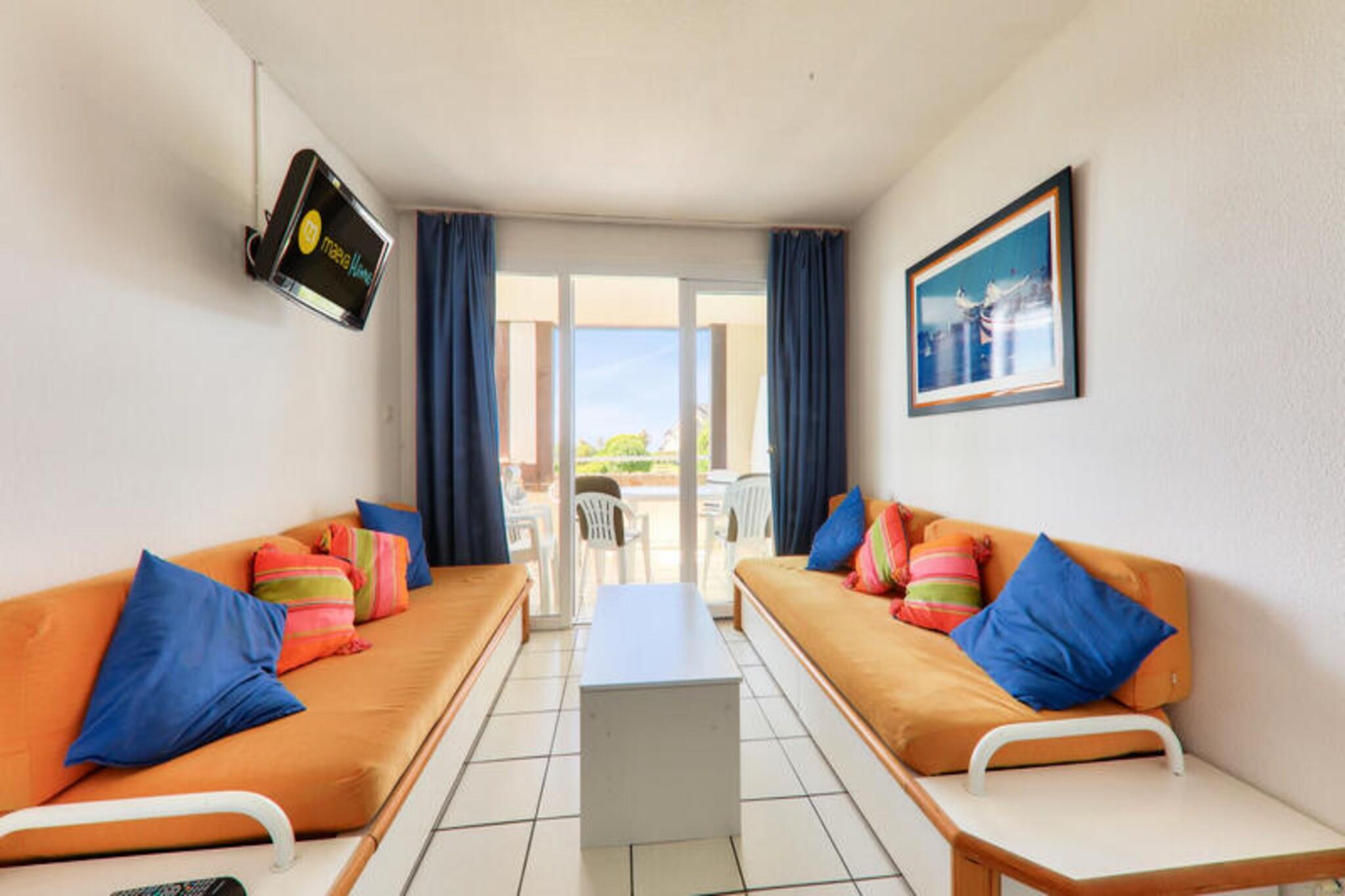Segundo distrito de un pueblo acogedor, la residencia Port du Crouesty Village distribuye sus fachadas tradicionales bretonas a pocos pasos del puerto y del océano, en la península de Rhuys, entre el golfo de Morbihan y la bahía de Quiberon. Disfrute de sus vacaciones en Bretaña en elegantes casas de granito con tejados de pizarra y balcones de madera blanca. A sólo 300 metros de la playa de Fogeo, de un kilómetro de longitud, le esperan apartamentos confortables y totalmente equipados. Explore la amplia gama de actividades de ocio que se ofrecen en el lugar, desde natación hasta voleibol de playa, a 200 metros de los restaurantes y tiendas de Port Crouesty. ¡O también podrás disfrutar del placer de un fin de semana de talasoterapia en Bretaña, gracias al acceso directo al centro de talasoterapia Miramar Crouesty! Apreciarás: La playa de Fogeo y sus actividades de ocio a unos 300 metros. Acceso directo al centro de talasoterapia Miramar Crouesty. Alojamiento confortable a pocos pasos del puerto, el mar, tiendas y restaurantes. Su alquiler vacacional incluye: 1 estadía, 1 cocina, 1 dormitorio, 1 baño, 1 aseo independiente, 1 terraza cubierta y 1 plaza de aparcamiento exterior. Las ventajas de su alquiler: Apreciará este apartamento de 2 habitaciones que le ofrecerá una orientación sureste con una hermosa vista al mar desde su balcón/terraza cubierta. Este alojamiento dispone de plaza de aparcamiento exterior para mayor comodidad. Superficie: 29 m². Ubicación : Piso de alojamiento: 1er piso Acceso a playa o pista: Acceso directo al mar (junto al mar) Centro de la ciudad o pueblo: Centro del pueblo Distancia de pistas al mar: entre 100 y 500 Distancia comercial: entre 100m y 500m Actividades a distancia: entre 100m y 500m Número de niveles de vivienda: Una sola planta Composición del salón: Sofá cama del salón: 2 Plazas para sentarse en el sofá: 4 Mesa de centro: Sí Lado de la comida: Tipo de cocina: americana Composición de las habitaciones: Dormitorio 1: Cama doble: 1 Composición del baño: Número de baños separados: 1 Baño principal: Tipo de baño: Bañera con columna Una toma de corriente libre cerca del espejo: No Perchero(s) o secador de toallas sin calefacción: Sí Exteriores: Balcón: Sí Vista balcón: Mar Orientación del balcón: Sur - Este Terraza: Cubierta Aparcamiento dedicado al alojamiento: Sí Tipo de Aparcamiento: Exterior Etiqueta Maeva Home Confort: buena relación calidad-precio. Servicios correctos, alojamiento mantenido y equipado con las principales comodidades. Lo imprescindible para unas vacaciones al mejor precio. Acceso Wifi - Con suplemento - sujeto a disponibilidad. Se admiten mascotas - Además, consultar precios directamente con la residencia. Kit Bebé - Sujeto a disponibilidad: 1 cuna plegable (norma NF EN 716), 1 silla para bebé (a partir de 6 meses), 1 cambiador, 1 cochecito: el contenido puede variar según la residencia) - precios a consultar en recepción. Ropa de cama - Con coste adicional - El contenido puede variar según la residencia: sábana bajera, sábana o funda nórdica y funda de almohada. Toallas - Cargo extra. Posibilidad de cambio de ropa de diario disponible, consultar precios en recepción. Limpieza final de estancia - Servicio de limpieza obligatorio a pagar al realizar el check-in o a la llegada. Estacionamiento - Al aire libre, gratuito sujeto a disponibilidad de espacios. Piscina - Abierta hasta el 15/09/2024 Tasa turística (cargo adicional) - El pago de la tasa turística se realiza a través de su espacio personal: https://mon-compte.maeva.com, el importe varía según la ubicación. Gratis para menores de 18 años. Televisión - Dependiendo de su alojamiento. Depósito (en euros) - 500 Estacionamiento - Exteriores Limpieza final de estancia - Servicio de limpieza obligatorio a pagar al realizar el check-in o a la llegada. Ropa de cama - Cargo adicional.
