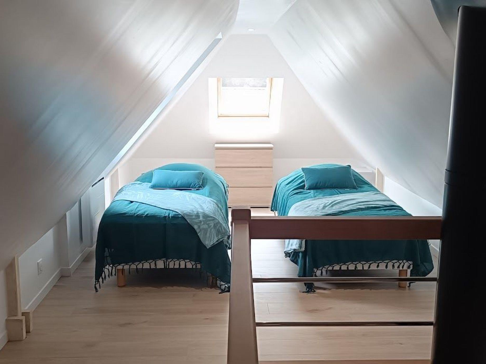 Inside, you'll be greeted by a bright living room with bay window overlooking the garden. The separate kitchen, fully equipped with oven, 12 place dishwasher, microwave and induction hob, invites you to prepare tasty meals. For your comfort, the house has a ground-floor shower room with shower, WC and hairdryer, as well as a second separate WC and a bedroom with a 160 cm bed. The wood-burning stove creates a cosy atmosphere in the house, which is fully tiled on the ground floor and has parquet flooring on the first floor, where there are two attic bedrooms, one with a 140 cm bed, the other with two 80 cm beds that can be converted into a 160 cm bed.