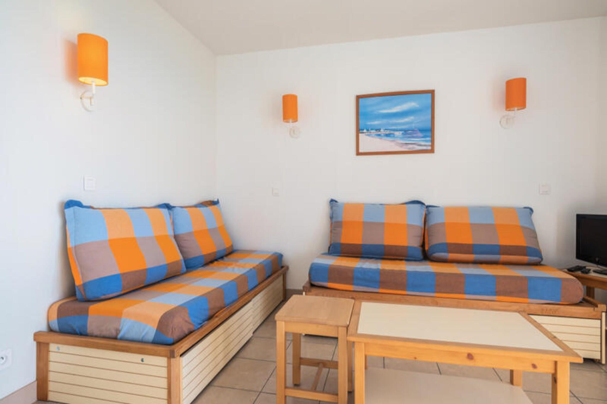 La residencia Audierne Le Phare de Trescadec dispone de apartamentos, divididos en 6 edificios de 2 plantas, la mayoría de los cuales tienen vistas al mar. Su arquitectura está inspirada en las villas costeras con muebles y decoración de inspiración marina. La residencia está situada a 300 m de la playa y dispone de una piscina exterior climatizada. No dispone de ascensor para acceder al alojamiento. Situado cerca de numerosas actividades como la base náutica, el centro de buceo, el club náutico, o el centro ecuestre... 1 salón, 1 cocina, 1 dormitorio, 1 zona de camarote, 2 baños, 1 aseo independiente y balcón amueblado con vistas al mar. Equipamiento del salón: 2 sofás cama y 1 cama nido (3 personas). Zona de cabina: 2 literas individuales. Para la comida: 1 mesa con 7 sillas. Instalaciones de la habitación: 1 dormitorio con 1 cama doble. Equipamiento de baños: 1 baño con 1 ducha, 1 baño con bañera y 1 aseo. Equipamiento de la cocina: zona de cocina abierta al salón. Equipamiento de balcón: 1 mesa y 5 sillas. Superficie: 42m² Las ventajas de este alojamiento: televisión, (TV, equipamiento para bebés, etc.)... Etiqueta de selección de hogar maeva: Apartamentos mantenidos, al día y con equipamiento de calidad. Para unas vacaciones exitosas y confortables. Se admiten mascotas - Además, consultar precios directamente con la residencia. Ropa de cama - Bajo petición, con cargo adicional Ropa de baño - Bajo petición, con cargo adicional Limpieza de final de estancia - Servicio de limpieza obligatorio a pagar al realizar el check-in. Aparcamiento - exterior - gratuito, sujeto a disponibilidad Piscina comunitaria - Incluida. Piscina exterior climatizada desde mediados de abril hasta mediados de septiembre. Tasa turística (cargo adicional) - A pagar en su área de cliente antes de su llegada, el importe varía según la ubicación. Gratis para menores de 18 años Televisión - Según alojamiento. Limpieza de final de estancia - Servicio de limpieza obligatorio a pagar al realizar el check-in. Ropa de cama - Cargo adicional.