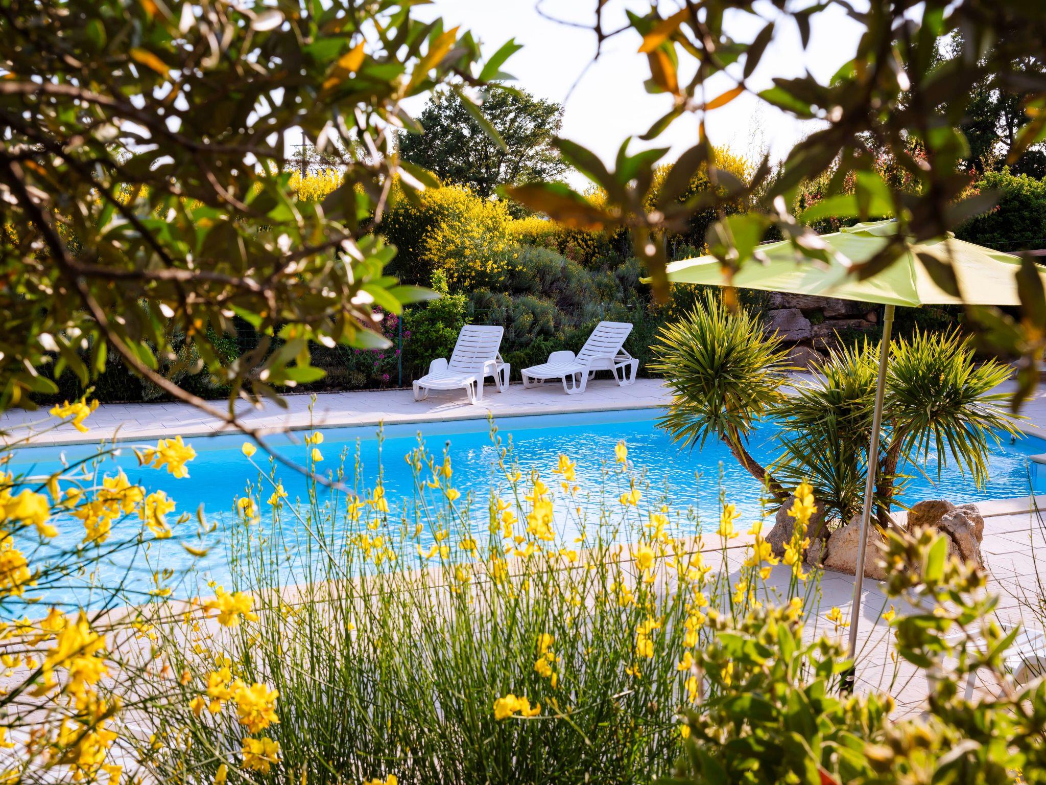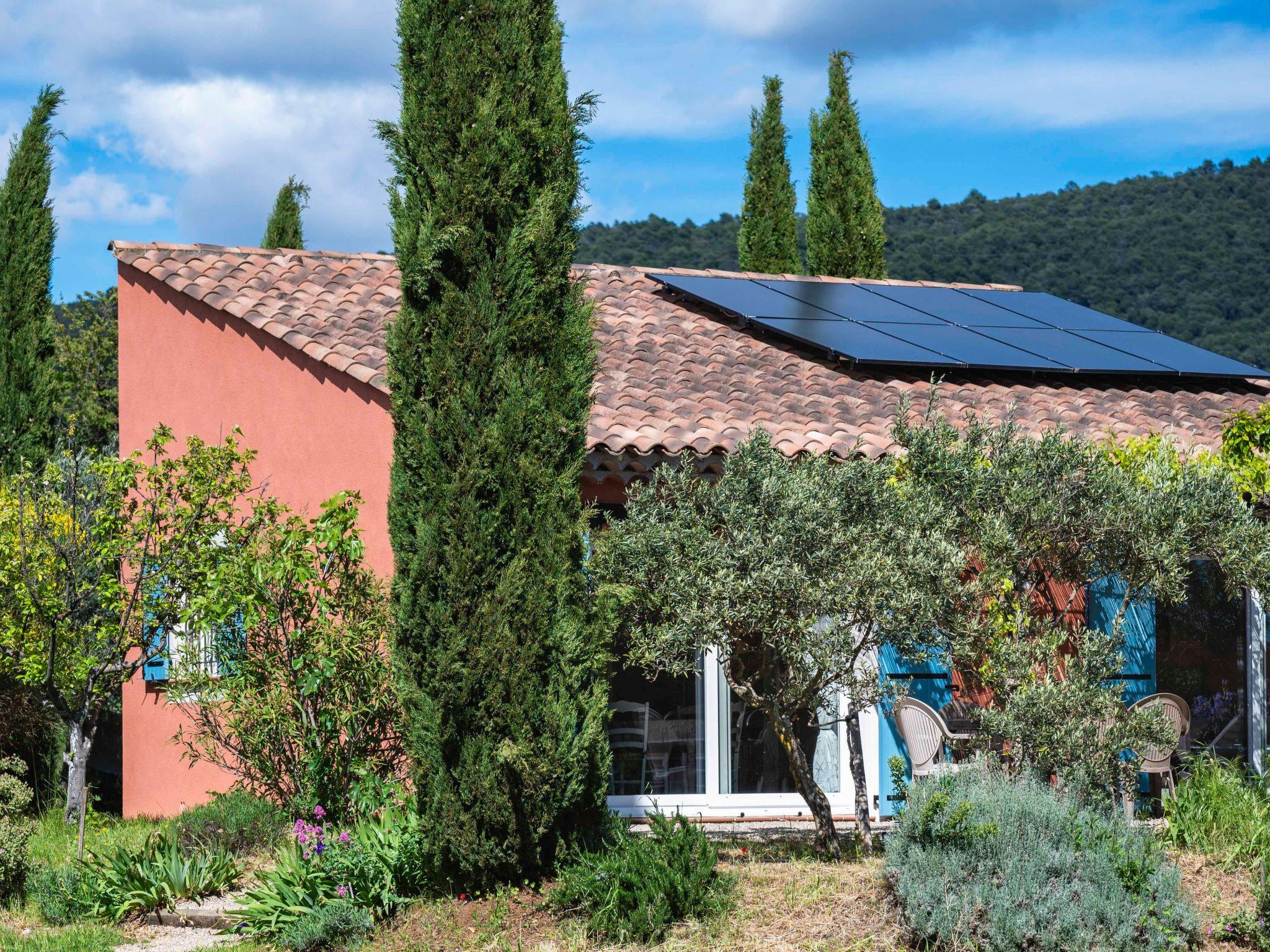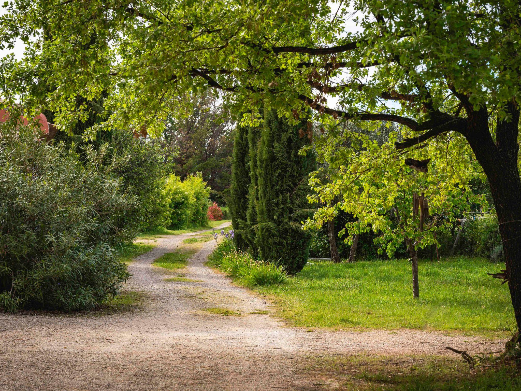 Le Mas de l'Aven, comprising 4 gîtes, is set in very peaceful surroundings in a large garden of over 7000m2 planted with trees. The charming village of Aups is within walking distance of the gîte. Aups has a wide range of shops and restaurants open all year round. The gîte is located 15 km from the Lac de Ste Croix, 30 km from the Gorges du Verdon and close to a number of pretty southern villages with waterfalls, troglodyte houses, tufa cliffs and the most beautiful villages in France. The 60m2 gîte le mûrier offers a large terrace shaded by a pergola, independent of the other gîtes. The living room opens onto a fully equipped open-plan kitchen with plenty of storage space. On the same level is a bedroom with a double bed. A second bedroom has two single beds. A bathroom with walk-in shower. There is also a separate toilet on the ground floor. A large swimming pool (10m x 5m) shared around a large decking area with pool house and plenty of sun loungers and parasols. A volleyball court, ping pong table, playground with swings, slide and pétanque boules will ensure you have a great time. Get away from mass tourism and discover the real thing.