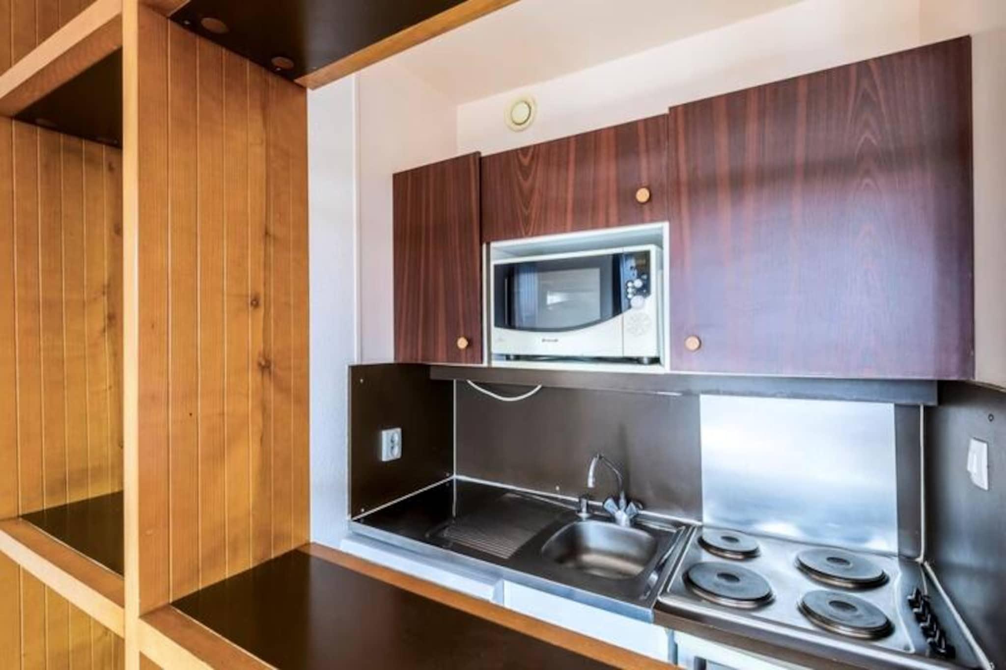 Denne lejlighed er en charmerende træbygning beliggende i hjertet af feriestedet Avoriaz 1800 og tilbyder en bekvem beliggenhed nær Village des Enfants og alle feriestedets butikker og underholdning. Denne bolig giver nem adgang til en række aktiviteter, herunder Aquariaz, det første bjergvandland omgivet af tropisk vegetation (ekstra gebyr), og en nærliggende sø med mange udendørs aktiviteter. For at slappe af kan gæsterne slappe af i resortets wellness-center, eller børn kan nyde børneklubben "Village des Enfants d'Annie Famose", der tilbyder betalte aktiviteter fra 3 til 16 år. Denne bolig er perfekt for budgetbevidste rejsende, der ønsker at udforske Avoriaz' vinter- og sommeraktiviteter. Om vinteren kan du nyde skiløb og snowboard, mens området om sommeren byder på vandreture, cykling og en række familievenlige attraktioner. Selve lejligheden er et kompakt rum på 22 m² med en hyggelig opholdsstue med to sovesofaer og et kabineområde med køjesenge, hvilket gør den ideel til små familier eller grupper. Det åbne køkken er udstyret med det nødvendige, og en balkon med liggestole giver mulighed for udendørs nydelse. Badeværelset inkluderer et badekar og separat toilet, og boligen tilbyder også praktiske faciliteter såsom overdækket parkering (reservation påkrævet), babysæt og sengetøj.