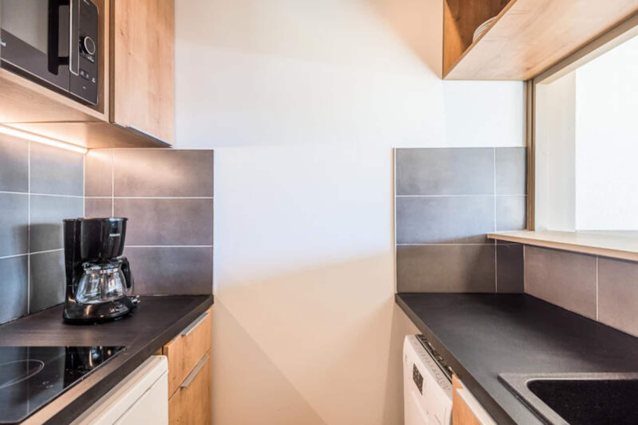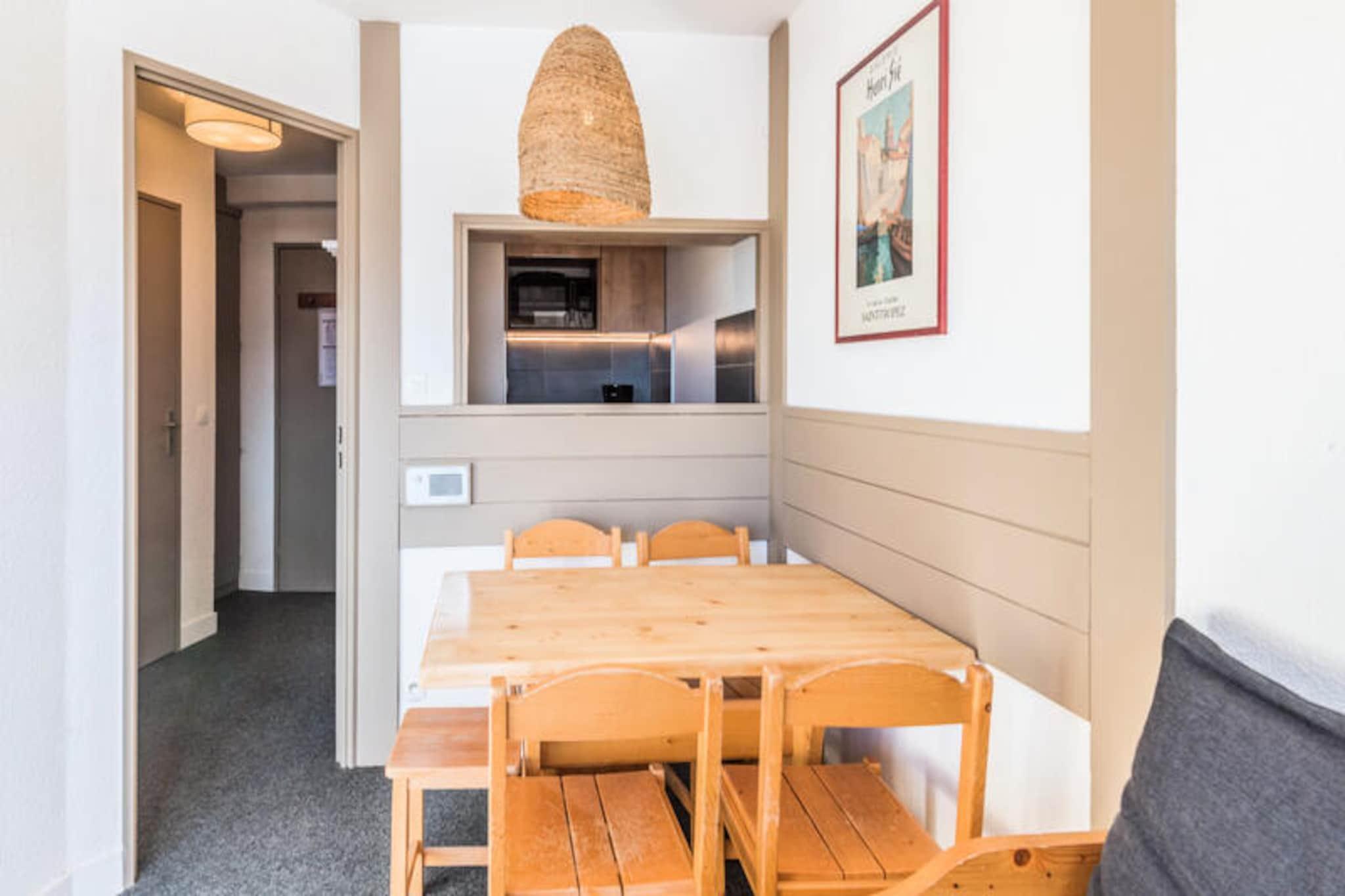 Denne ejendom, veludstyret og komfortabelt møbleret, tilbyder 27 m² boligareal, egnet til op til 4 personer. Opholdsområdet har 2 enkeltsovesofaer og en ekstra udtræksseng, ideel til et barn. Soveværelset indeholder en dobbeltseng til afslappende nætter, og boligen indeholder et badeværelse med badekar og et separat toilet. Gæsterne kan nyde en møbleret balkon med en smuk udsigt over resortet, og der er et skiskab til praktisk opbevaring af udstyr. Ejendommen er kæledyrsvenlig mod et tillægsgebyr og tilbyder valgfrie tjenester såsom daglig rengøring, håndklædeskift og slutrengøring for ekstra bekvemmelighed. Beliggende i hjertet af feriestedet Avoriaz 1800, har ejendommen en fremragende beliggenhed med direkte adgang til skiløjperne, hvilket gør det til et sandt ski-in/ski-out-retræte. Det er beliggende nær forskellige attraktioner, herunder Village des Enfants og Aquariaz, et bjergvandland med tropisk tema. Boligen ligger også tæt på butikker og restauranter, samt andre underholdningsmuligheder inden for resortet. For familier tilbyder den nærliggende børneklub aktiviteter mod betaling, og wellness-centret tilbyder afslapningsmuligheder efter en dag med skiløb eller eventyr. Området er let tilgængeligt, med parkeringsmuligheder på de omkringliggende overdækkede parkeringspladser. Det åbne køkkenområde er integreret i stuen, hvilket giver et funktionelt rum for gæster til at tilberede måltider under deres ophold. Køkkenet er udstyret med alt det nødvendige til selvforplejning, og opholdsstuen er indrettet med et spisebord til fire. Derudover kommer lejligheden med et fjernsyn til underholdning. Ejendommens velholdte faciliteter sikrer et behageligt og behageligt ophold med kvalitetsfaciliteter overalt.