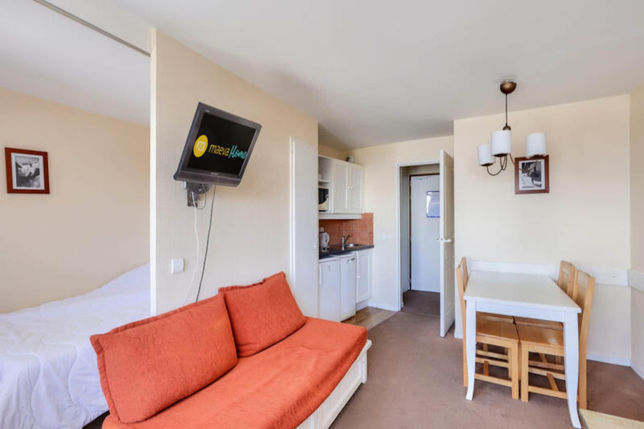 Ejendommen tilbyder sammen med sin førsteklasses beliggenhed et komfortabelt og funktionelt rum for gæster, der ønsker at nyde en ski-in, ski-out-oplevelse. Denne lejlighed på 32 m² kan rumme op til 2 gæster og byder på en hyggelig stue, et fuldt udstyret køkken og et soveværelse med en dobbeltseng. Lejligheden har også et rummeligt badeværelse med badekar-bruser og et separat toilet. Den private balkon byder på en fantastisk udsigt over bjergene, hvilket giver det perfekte sted at slappe af efter en dag på pisterne. Kæledyr er tilladt mod et tillægsgebyr, og et babysæt er tilgængeligt efter anmodning, afhængigt af tilgængelighed. Daglig rengøring og skift af sengetøj tilbydes mod ekstra omkostninger, hvilket sikrer et behageligt ophold. Beliggende i en yderst bekvem beliggenhed, er ejendommen kun et stenkast væk fra pisterne, hvilket giver mulighed for ski-in, ski-out adgang direkte fra boligen. Gæsterne kan nemt udforske de nærliggende butikker og restauranter, mens det berømte Aquariaz, det største bjergvandland, også ligger i nærheden (mod et ekstra gebyr). Denne perfekte kombination af adgang til udendørs aktiviteter og resortfaciliteter sikrer et sjovt og dynamisk ophold, uanset om det er sommer eller vinter. Lejligheden er veludstyret med væsentlige faciliteter, herunder et åbent køkken med køleskab, komfur og mikroovn, hvilket gør det nemt for gæsterne at tilberede deres måltider. Yderligere bekvemmeligheder omfatter adskillige opbevaringspladser og et fjernsyn. Håndklæder er tilgængelige mod et tillægsgebyr, mens sengelinned er inkluderet i boligen. Gæster kan drage fordel af den overdækkede parkering på stedet, som skal reserveres på forhånd via en dedikeret hjemmeside. Ejendommen tilbyder en obligatorisk slutrengøring, og yderligere tjenester såsom daglig rengøring er tilgængelige efter anmodning.