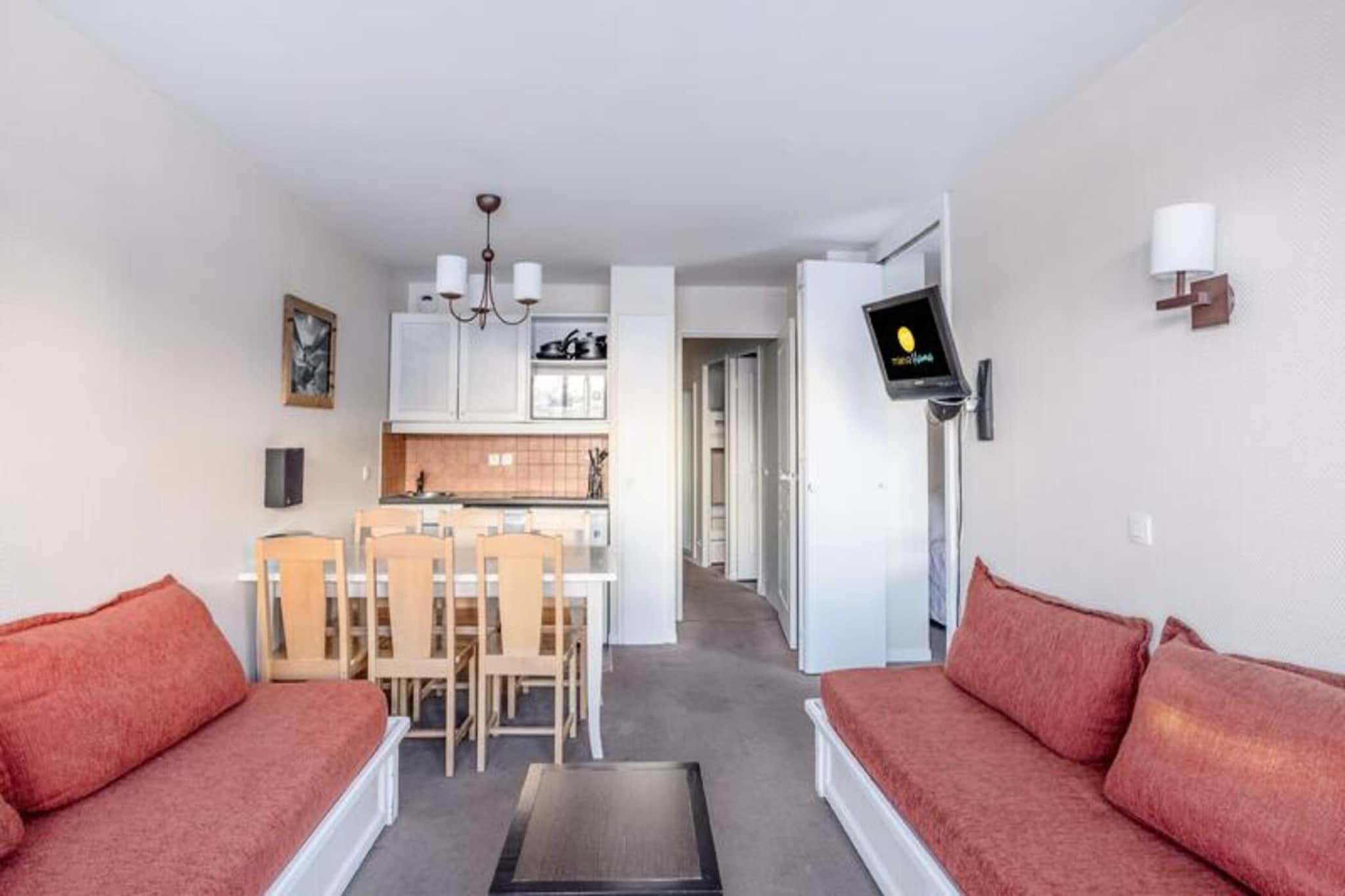 Denne hyggelige lejlighed på 1. sal, beliggende i Falaise-distriktet i Avoriaz, tilbyder en perfekt ski-in/ski-out-oplevelse med direkte adgang til pisterne, kun få skridt fra det pulserende feriestedscenter. Boligen har panoramaudsigt over Morzine-dalen, så gæsterne kan nyde Alpernes naturskønne skønhed. Lejligheden er ideelt beliggende nær en række butikker, restauranter og det berømte Aquariaz-vandland, det største bjergvandland i Europa, der tilbyder underholdning for alle aldre. De nærliggende pister byder på skimuligheder om vinteren, mens feriestedets centrum byder på shopping, restauranter og rekreative aktiviteter året rundt. Placeringen er perfekt for dem, der søger en problemfri, spændende bjergferie. Den 6-personers leje inkluderer en komfortabel stue, et fuldt udstyret køkken, et soveværelse med en dobbeltseng, et kabineområde med to køjesenge, to badeværelser og et separat toilet. Ideel til en familie eller en lille gruppe, lejligheden er designet med moderne bekvemmeligheder og hyggelig indretning. Gæsterne kan også drage fordel af overdækket parkering, hvilket sikrer et bekvemt ophold.