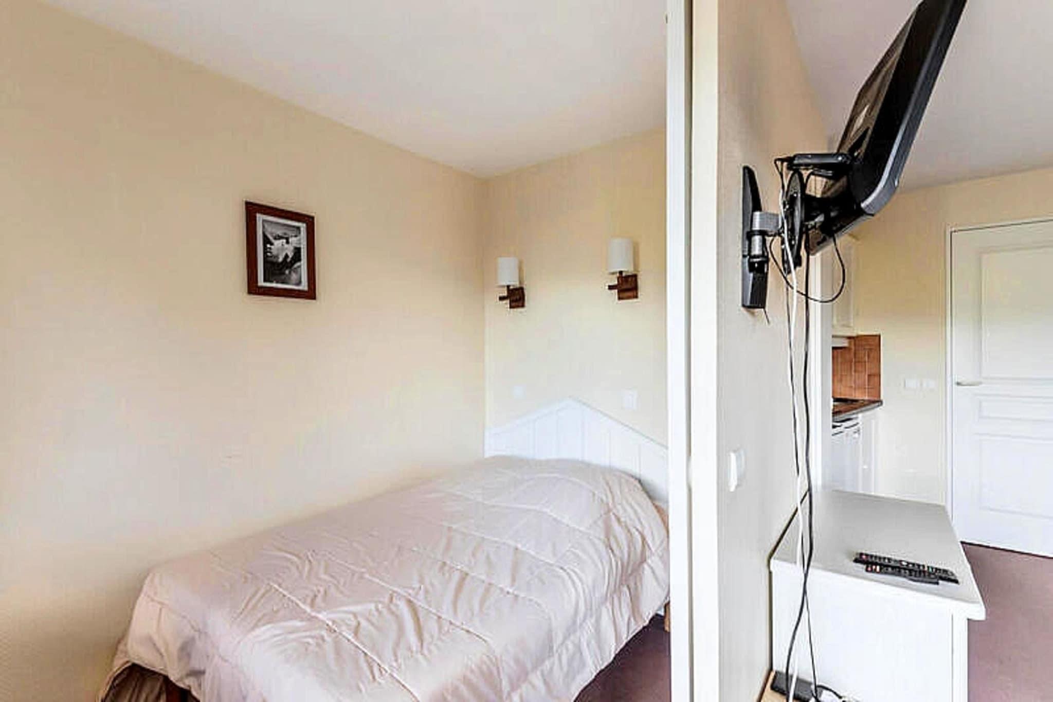 Denne charmerende 2-værelses lejlighed kan rumme op til 4 personer med et hyggeligt soveværelse med en dobbeltseng og en stue med en sovesofa til to. Beliggende i en førsteklasses beliggenhed er det perfekt til både afslapning og eventyr. Ejendommen er kæledyrsvenlig, så dine lodne venner kan nyde ferien med dig. Derudover tilbyder det væsentlige faciliteter, herunder sengelinned, et vedligeholdelsessæt og et fladskærms-tv, hvilket sikrer et behageligt ophold for alle gæster. Lejligheden ligger kun 200 meter fra resortets pister og tilbyder nem adgang til både vintersport og byens centrum. Gæsterne kan udforske nærliggende butikker, restauranter og caféer inden for gåafstand. Aquariaz-vandlandet, kun 800 meter væk, er perfekt til familiesjov. Lejligheden ligger også bekvemt tæt på overdækket parkering og feriestedets gågade, hvilket giver både komfort og tilgængelighed. Lejligheden har et fuldt udstyret køkken med mikrobølgeovn, ovn og køleskab, hvilket gør selvforplejning til en leg. Der er også badeværelse med bruser og separat toilet. Yderligere tjenester såsom leje af håndklæder, babysæt (afhængigt af tilgængelighed) og rengøring er tilgængelige efter anmodning.