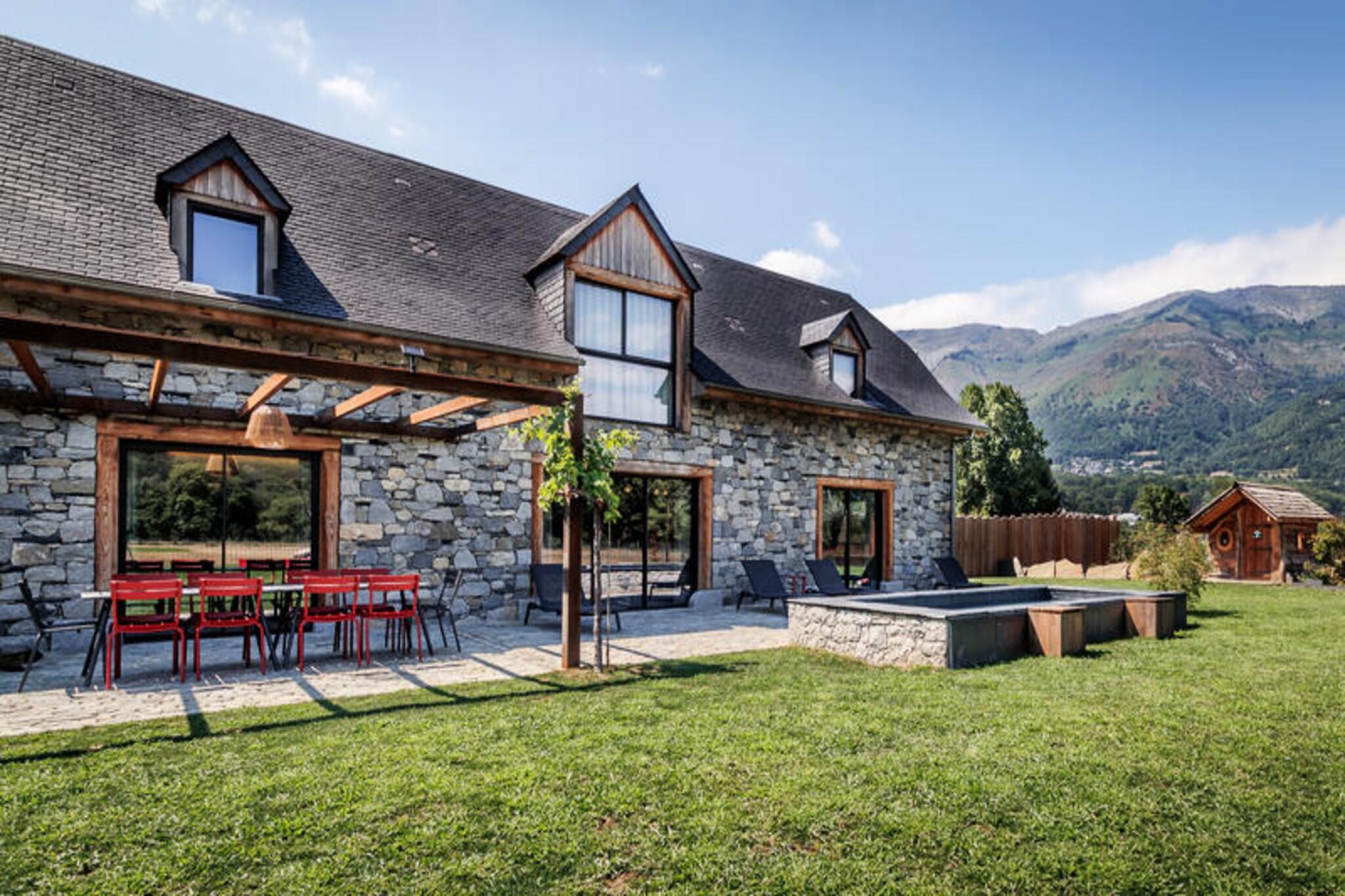 Beliggende mindre end en kilometer fra Pyrenæernes Dyrepark, tilbyder etablissementet dig muligheden for at bo i to villaer, der kan rumme hele familien eller dit gensyn med venner, alt sammen i den friske luft og i grønne omgivelser. Placeringen er ideel til et besøg i Parc Animalier des Pyrénées, som har over 120 forskellige arter. Du vil blive forført af roen og den betagende udsigt over Pyrenæernes tinder. Du har valget mellem to enestående boliger: La Grange, en gammel lade renoveret med ædle materialer eller Le Moulin, med moderne udsmykning, der blander træ og farverige detaljer. Stue, Spisestue Fuldt udstyret køkken 3 master suiter med king size senge 1 sovesal med 2x2 enkelt køjesenge 4 bruserum 2 separate toiletter Terrasse Petanque bane Hytte til børn Wifi adgang - gratis Depositum (ekstra) - 500 Sengetøj - inkluderet Håndklæder - inkluderet Slutrengøring - ekstra EURO150/indkvartering for 6 personer - EURO200/indkvartering for 10 personer (obligatorisk) Parkering - gratis Turistskat (ekstra gebyr) - betales på stedet i henhold til gældende takst Slutrengøring - 200 EURO/indkvartering (obligatorisk) Opvarmet swimmingpool - opvarmet swimmingpool fra april til september Depositum (i euro) - 500