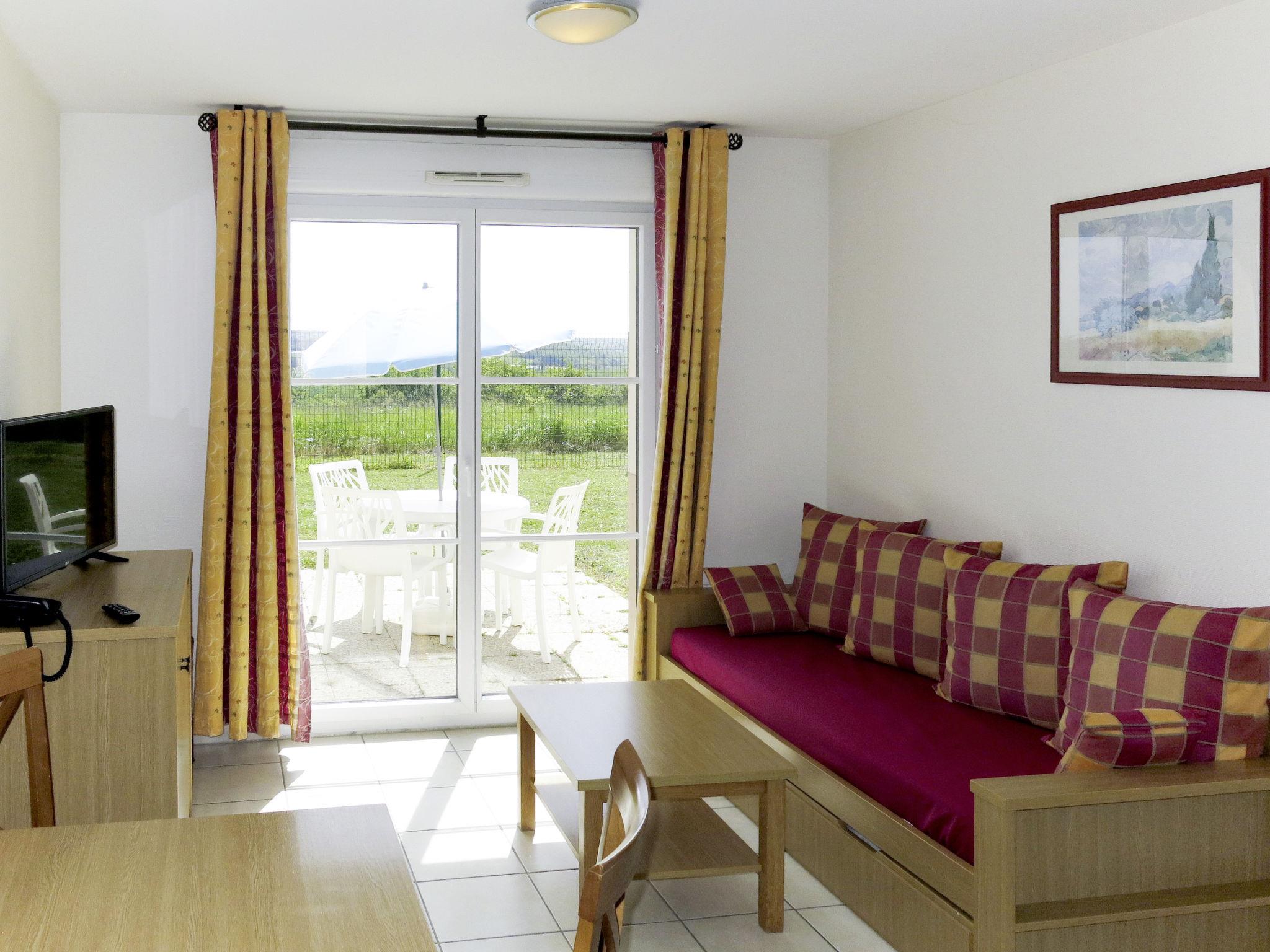 "Les Jardins Renaissance", 2-room house 35 m2. Practical and cosy furnishings: living/sleeping room with 1 sofabed, 1 pull-out bed, dining table and TV. 1 room with 2 sleeping facilities. Kitchenette (dishwasher, 1 ceramic glass hob hotplate, toaster, kettle, microwave, electric coffee machine). Bath/WC or shower/WC. Electric heating. Carpet. Terrace, small garden. Terrace furniture. Facilities: children's high chair, baby cot (extra). Internet (WiFi, extra). Parking (1 car). Please note: non-smokers only. Maximum 2 pets/ dogs allowed. Smoke alarm.