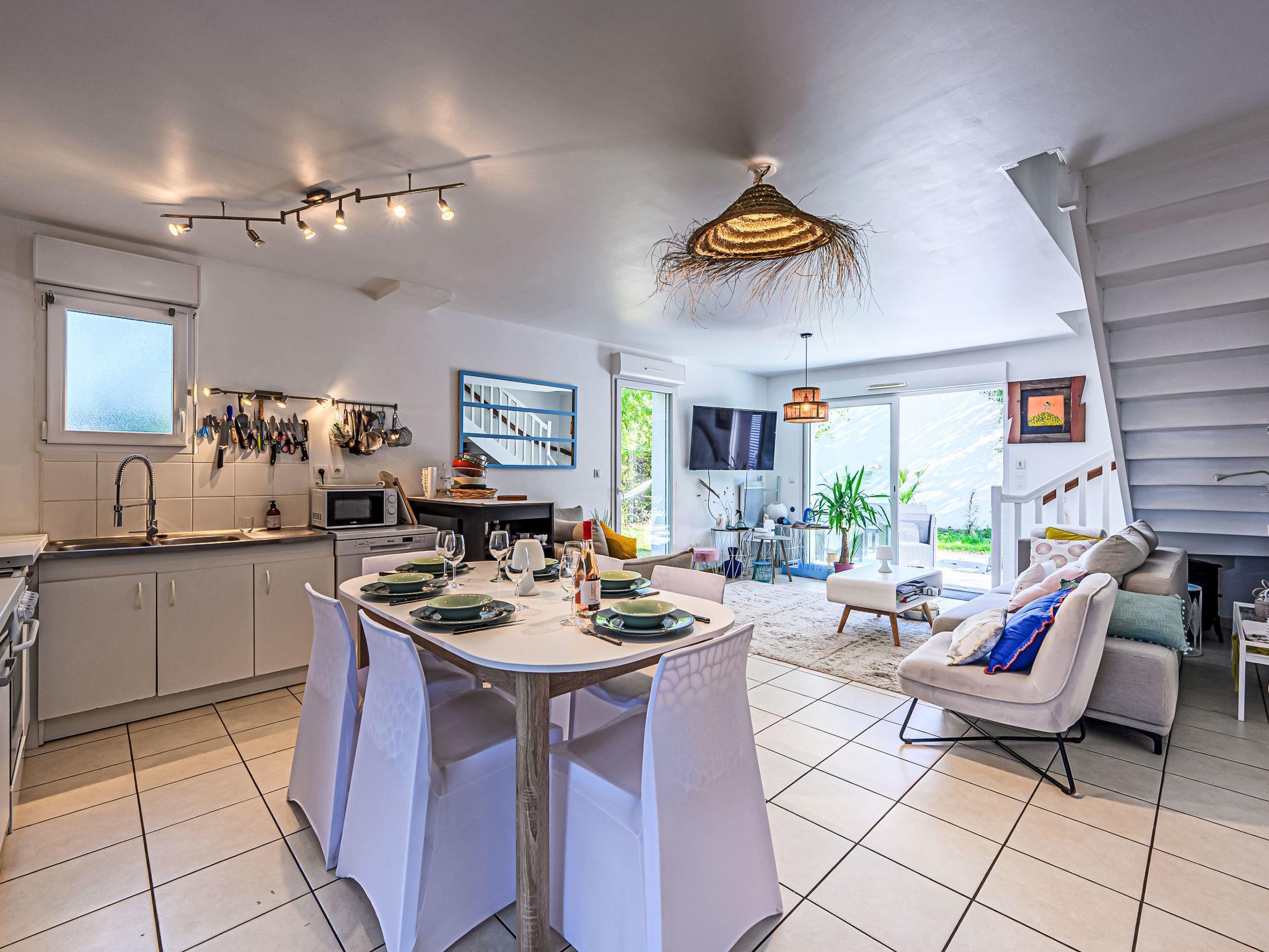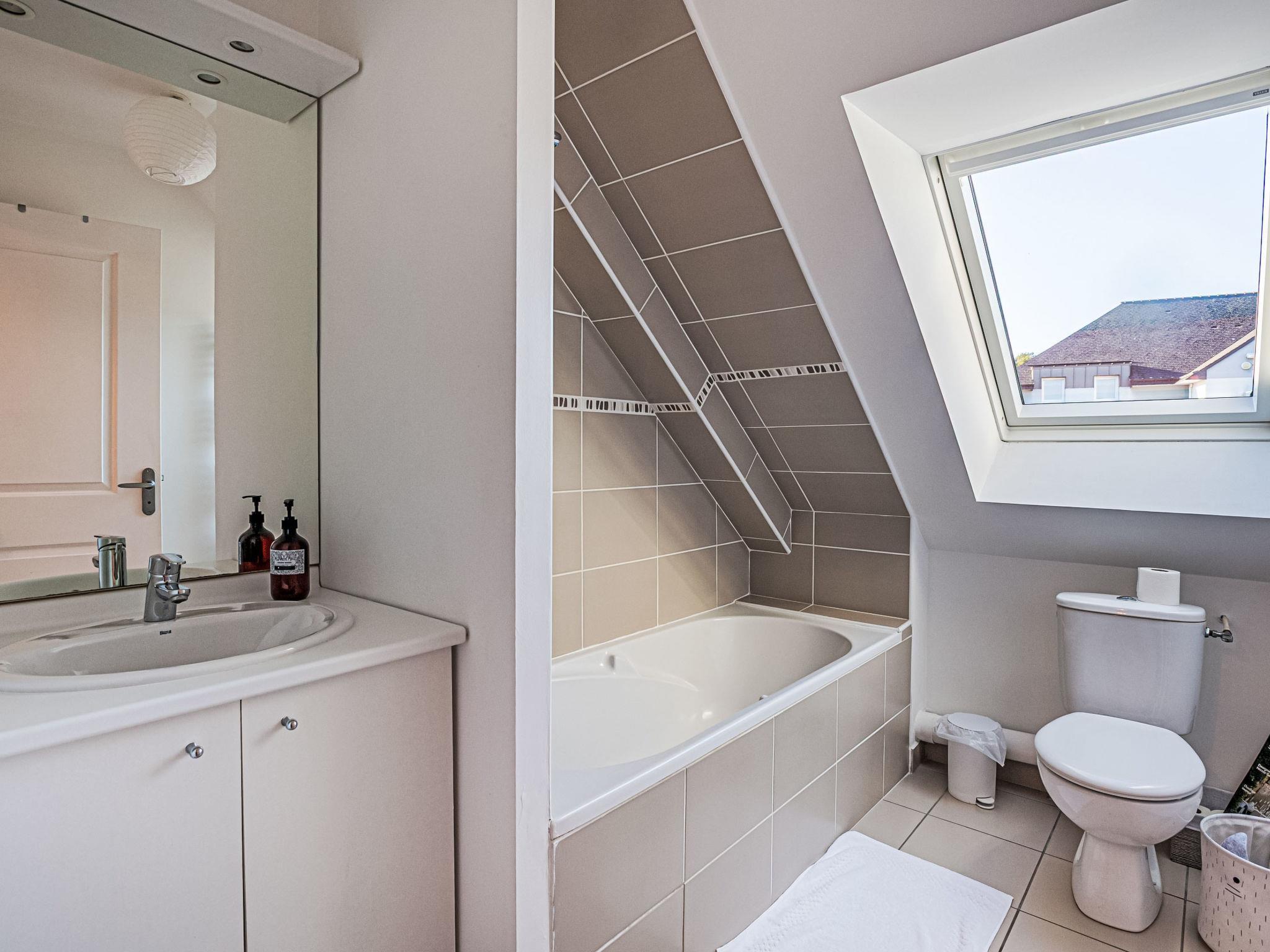 Baden: Terraced house "Maison de l'Amaryllis", 2 storeys. In the centre of Baden, 2 km from the sea, 2 km from the beach. Supermarket 1 km, restaurant, bar 600 m, bakery 700 m, café 600 m, bus stop "Baden centre" 700 m, sandy beach "Plage des 7 Iles" 4 km. Sailing school 5 km, tennis 2 km, riding stable 2 km. Nearby attractions: Embarcadère pour les Iles du Golfe 5 km, Auray et Saint Goustan 8 km, Vannes 18 km, Carnac et La Trinité Sur Mer 25 km, Presqu'ile de Quiberon 39 km, Belle ïle en Mer, Houat, Hoedic. The keys‘ handover takes place by the agency Interhome in Bono, 4 km.