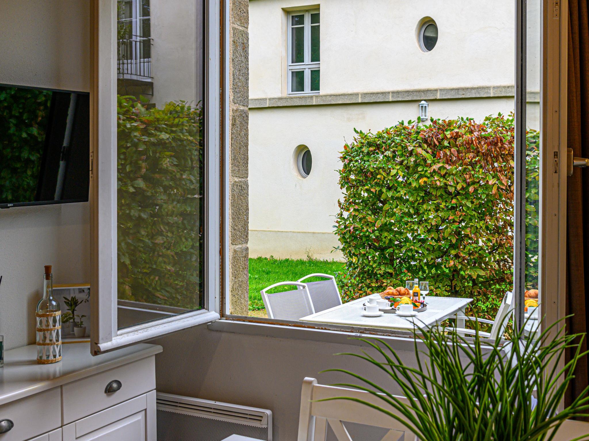"Château De Kergonano, dans l'Orangerie", 3-room semi-detached house 38 m2. Comfortable and beautiful furnishings: living/sleeping room with 1 double sofabed (2 x 80 cm, length 190 cm), TV (flat screen). Exit to the terrace. Kitchenette (dishwasher, 4 ceramic glass hob hotplates, toaster, kettle, microwave, electric coffee machine). Sep. WC. Upper floor: 1 room with 1 x 2 bunk beds (90 cm, length 190 cm). 1 room with 1 french bed (1 x 140 cm, length 190 cm). Shower. Terrace. Terrace furniture. View of the garden. Facilities: Internet (WiFi, extra). Parking. Please note: non-smokers only. Smoke alarm. Daily cleaning and change of linen possible on request and at extra cost. Offer by a private individual according to Art. 155, IV of CGI.