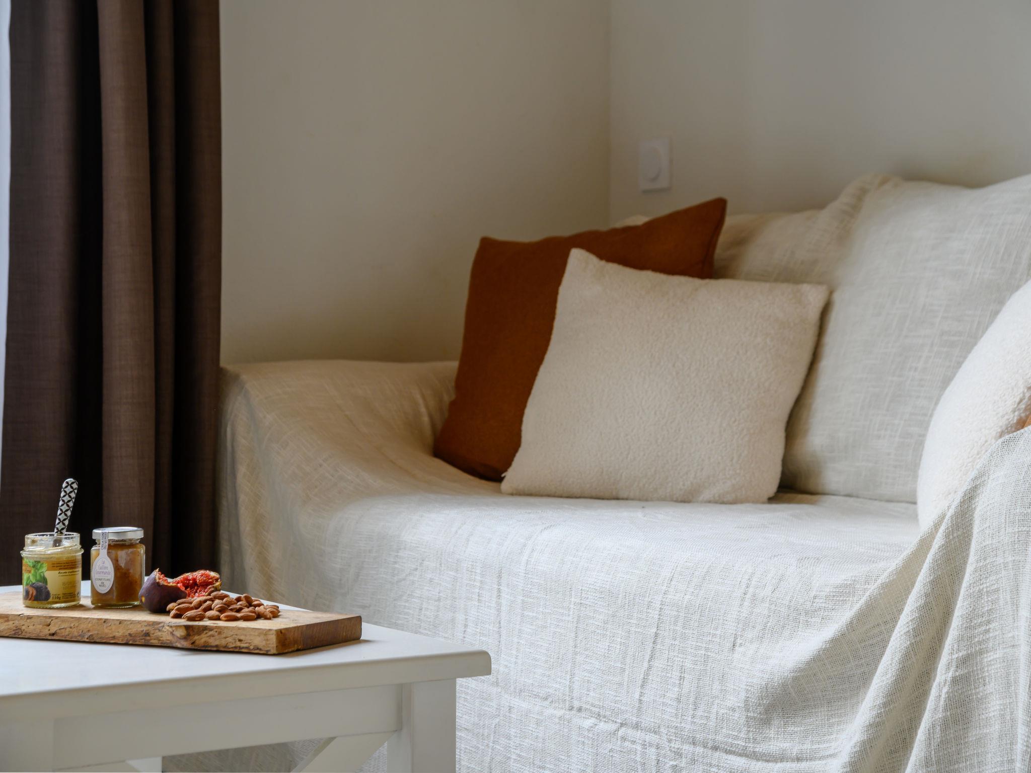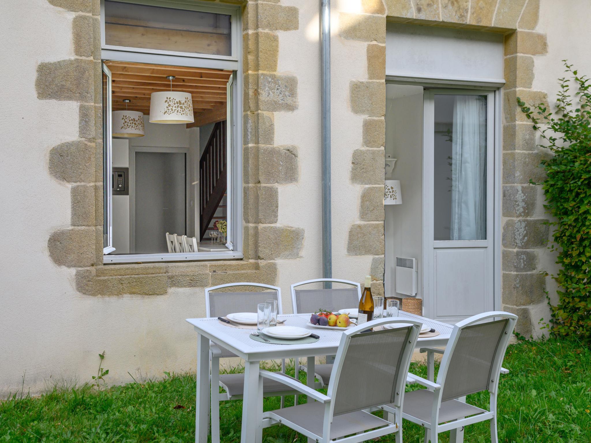 "Château De Kergonano, dans l'Orangerie", 3-room semi-detached house 38 m2. Comfortable and beautiful furnishings: living/sleeping room with 1 double sofabed (2 x 80 cm, length 190 cm), TV (flat screen). Exit to the terrace. Kitchenette (dishwasher, 4 ceramic glass hob hotplates, toaster, kettle, microwave, electric coffee machine). Shower, sep. WC. Upper floor: 1 room with 1 x 2 bunk beds (90 cm, length 190 cm). 1 room with 1 french bed (1 x 140 cm, length 190 cm). Terrace. Terrace furniture. View of the garden. Facilities: Internet (WiFi, extra). Parking. Please note: non-smokers only. Smoke alarm. Daily cleaning and change of linen possible on request and extra. Offer by a private individual according to Art. 155, IV of CGI.