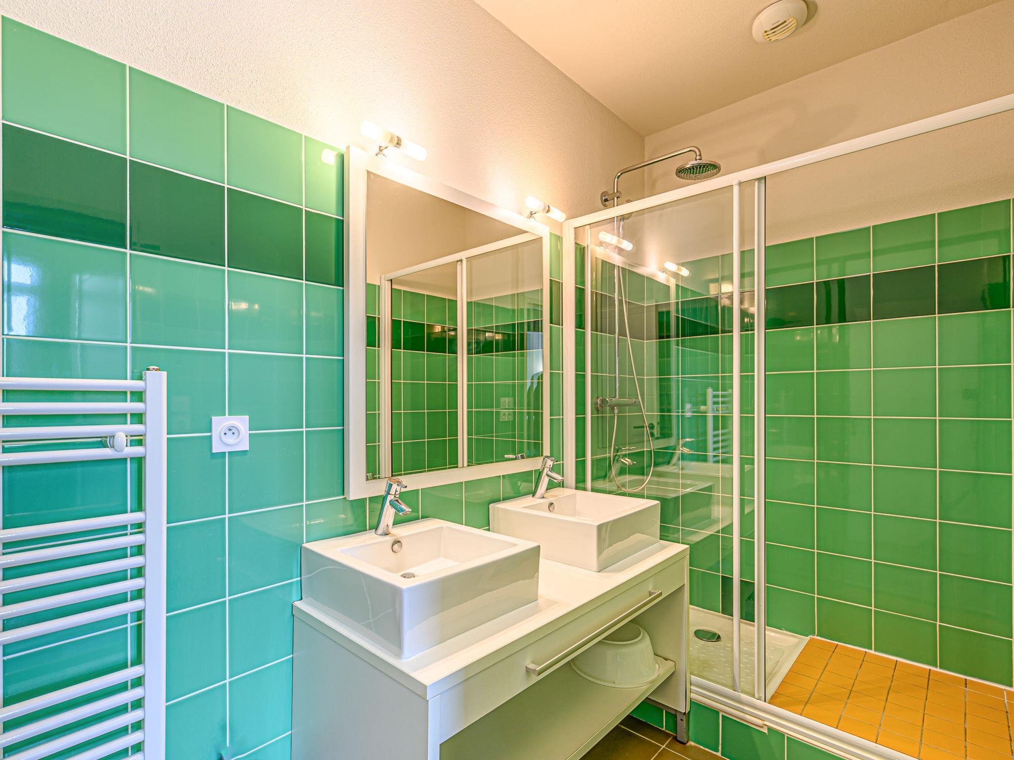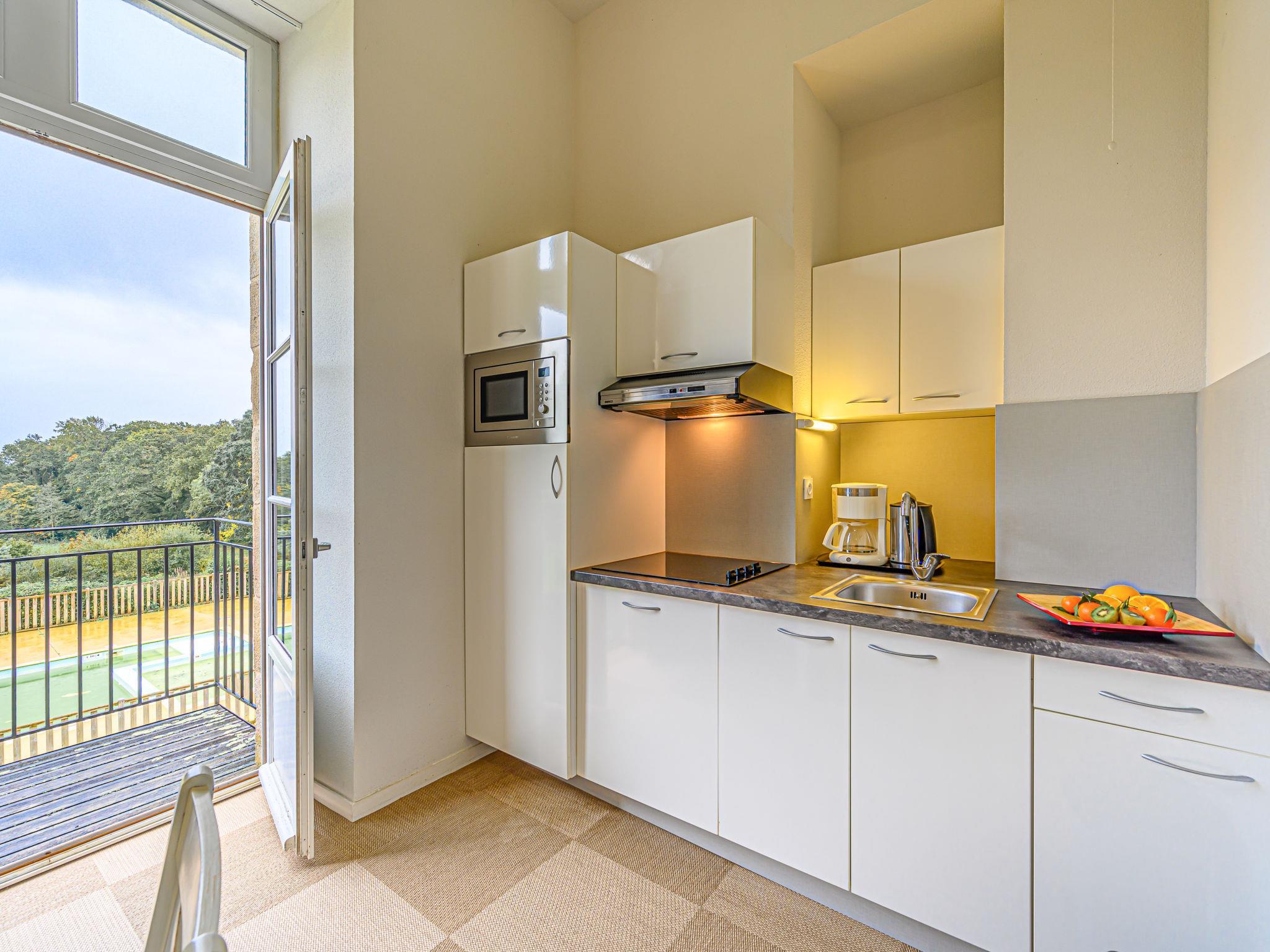 "Château De Kergonano", 3-room apartment 47 m2. Beautiful furnishings: living/dining room with 1 double sofabed (2 x 80 cm, length 190 cm), TV (flat screen). Exit to the balcony. 1 room with 1 french bed (1 x 140 cm, length 190 cm). 1 room with 1 x 2 bunk beds (90 cm, length 190 cm). Kitchenette (dishwasher, 4 ceramic glass hob hotplates, toaster, kettle, microwave, electric coffee machine). Shower, sep. WC. Electric heating. Balcony. View of the swimming pool and the garden. Facilities: Internet (WiFi, extra). Parking. Please note: suitable for families. Non-smokers only. Smoke alarm. Daily cleaning and change of linen possible on request and at extra cost. Offer by a private individual according to Art. 155, IV of CGI.