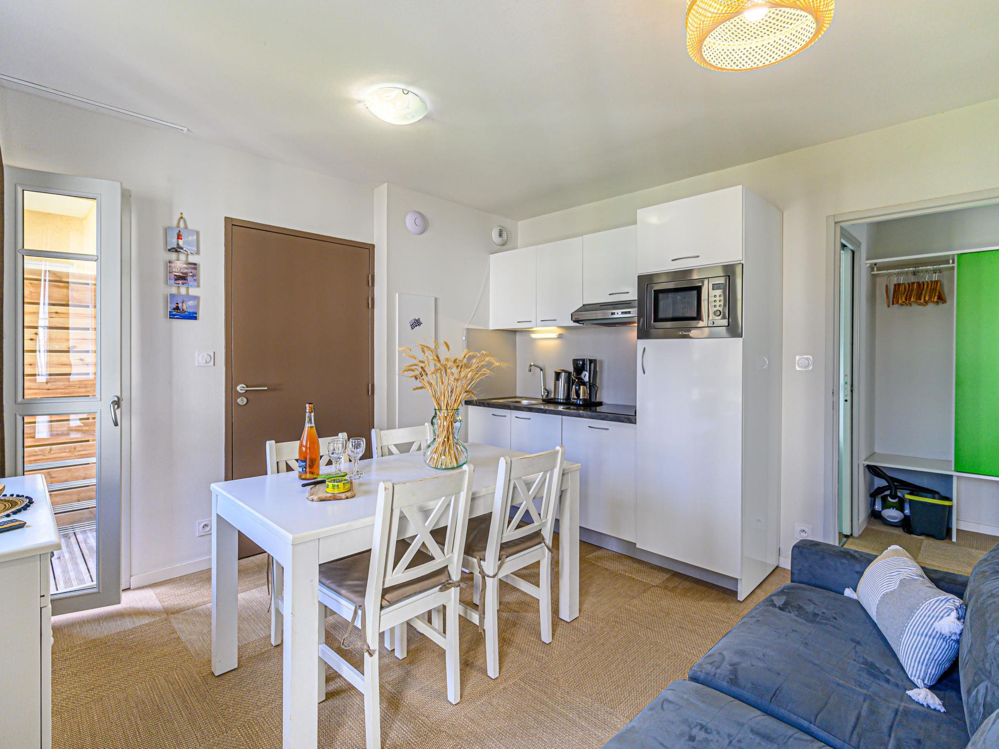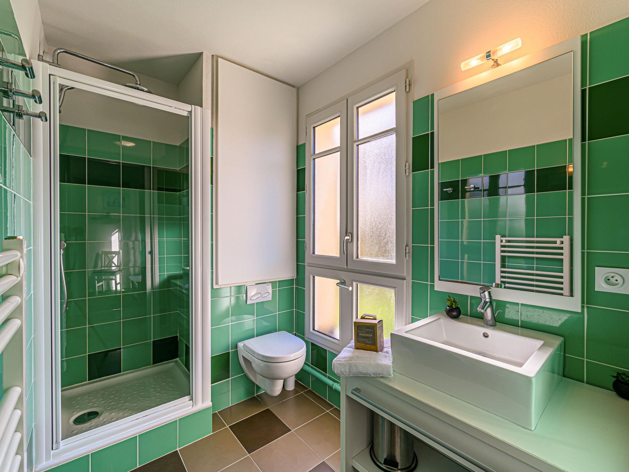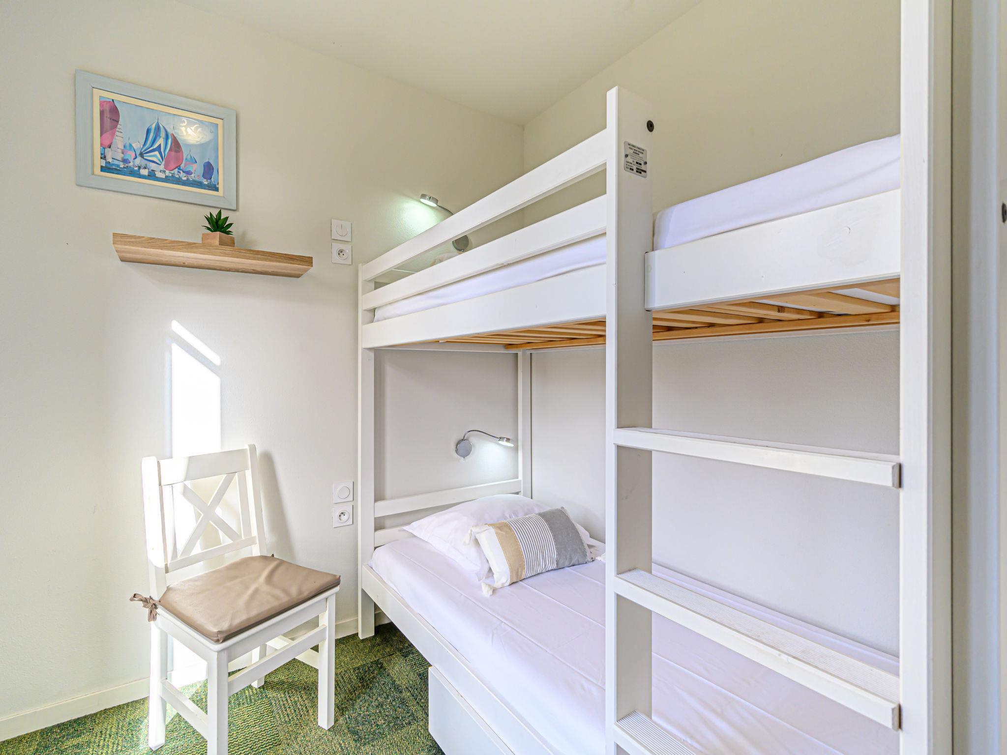"Le Château de Kergonano", 2-room apartment 35 m2 on 1st floor. Comfortable and beautiful furnishings: living/dining room with dining table and TV (flat screen). 1 room with 1 french bed. 1 small room 5 m2 with 1 x 2 bunk beds (90 cm, length 190 cm). Kitchenette (dishwasher, 4 ceramic glass hob hotplates, kettle, microwave, electric coffee machine). Shower/WC. Electric heating. Small balcony. View of the swimming pool and the garden. Facilities: Internet (WiFi, extra). Parking. Please note: non-smokers only. Smoke alarm, fire extinguisher. Pets are not accepted. Daily cleaning and change of linen possible on request and at extra cost. Offer by a private individual according to Art. 155, IV of CGI.