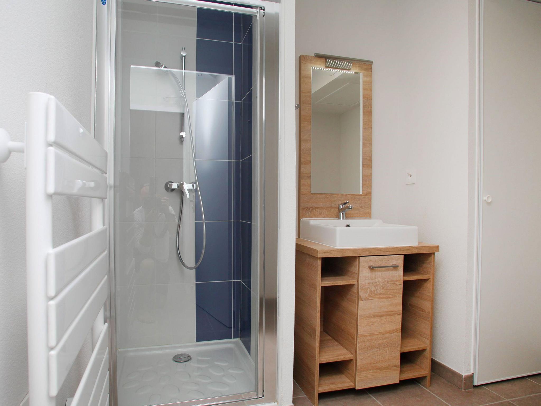 "Odalys Référence Les Iles du Morbihan", 2-room apartment 40 m2. Beautiful furnishings: living/sleeping room with 2 sleeping facilities (90 cm, length 190 cm), dining table and TV (flat screen). Exit to the garden, to the balcony. 1 room with 1 french bed (160 cm, length 200 cm). Small kitchenette (dishwasher, 2 ceramic glass hob hotplates, kettle, electric coffee machine, combination microwave). Bath/WC or shower/WC. Electric heating. Small balcony or small terrace. Terrace furniture. Facilities: children's high chair, baby cot (extra). Internet (WiFi, free). Please note: non-smokers only. Maximum 1 pet/ dog allowed. Smoke alarm, fire extinguisher.