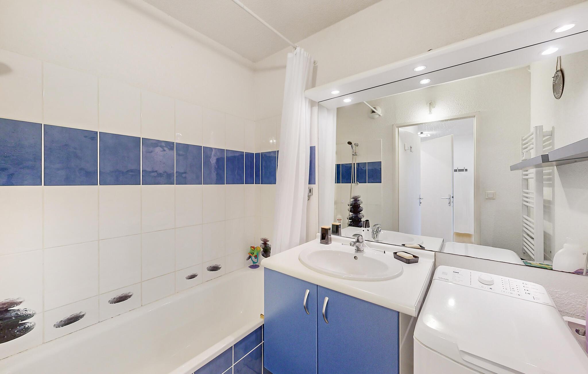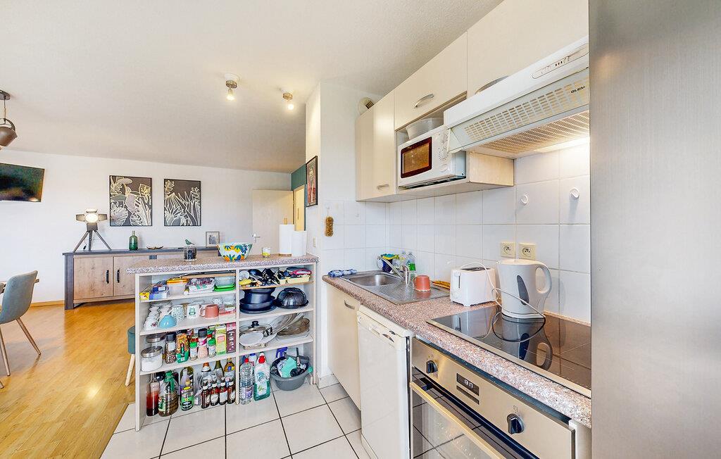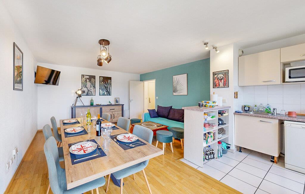 Jeres ferielejlighed i Bagnères-de-Bigorre er noget særligt med et moderne og venligt design. Den lyse opholds- og spisestue med et stort spisebord og en komfortabel sofa indbyder til afslapning, hvad enten det er til en hyggelig middag eller en afslappende filmaften. Nyd den friske bjergluft på balkonen med en fantastisk udsigt over de grønne bakker og den charmerende by. Siddeområdet på balkonen er perfekt til en morgenmad under åben himmel eller et glas vin om aftenen. Lad den betagende udsigt synke ind og planlæg jeres næste eventyr.