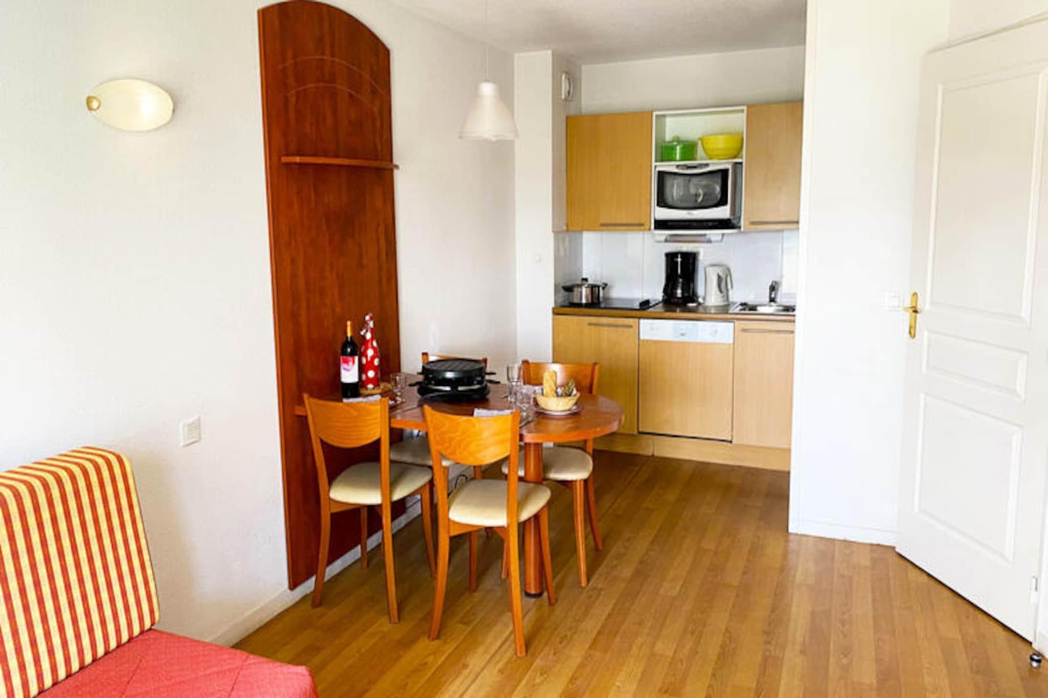 I hjertet af det betagende pyrenæiske landskab inviterer Pic du Midi-residensen i La Mongie dig til at opleve charmen ved det største skiområde i de franske Pyrenæer. Med sin traditionelle arkitektur af træ og sten smelter denne residens problemfrit sammen med sine naturlige omgivelser og tilbyder et varmt og indbydende tilflugtssted for rejsende, der søger både eventyr og afslapning. Forestil dig at vågne op til panoramaudsigt over snedækkede tinder fra din sydvendte terrasse, hvor den friske bjergluft forynger dine sanser. Uanset om du er her for vintersport eller sommerferier, lover denne destination uforglemmelige øjeblikke året rundt. \n\nResidensen har omhyggeligt designede lejligheder udstyret med moderne bekvemmeligheder, herunder et tekøkken med keramiske kogeplader, mikrobølgeovn og opvaskemaskine. Den hyggelige stue med fladskærms-tv og en dobbelt sovesofa giver det perfekte sted at slappe af efter en dag med udforskning. Soveværelset, der er møbleret med en blød dobbeltseng, sikrer afslappende nætter, mens badeværelset tilbyder et afslappende bad i badekarret. Yderligere bekvemmeligheder såsom et skirum, parkeringskælder og et døgnåbent vaskeri forbedrer dit ophold. Gæsterne kan også nyde den opvarmede indendørs pool og fitnessrummet, hvilket tilføjer et strejf af luksus til deres bjergferie.\n\nResidensen ligger kun 300 meter fra pisterne og tilbyder nem adgang via en gratis shuttle-service, hvilket gør den til et paradis for skientusiaster. Om sommeren vækkes de landlige omgivelser til live med græssende får og lamaer, og de nærliggende stolelifte Tournaboup og Panorama giver adgang til naturskønne vandrestier. Den legendariske Col du Tourmalet og observatoriet Pic du Midi ligger kun et stenkast væk og tilbyder fantastiske udsigter og spændende eventyr. Derudover er kurbyerne Bagnères-de-Bigorre og Barèges perfekte til en dag med afslapning og foryngelse.\n\nUanset om du snor dig gennem pudrede pister, vandrer gennem frodige stier eller blot nyder Pyrenæernes fredfyldte skønhed, er Pic du Midi-residensen din indgang til en ekstraordinær alpin flugt. Book dit ophold i dag og skab minder, der vil vare hele livet.