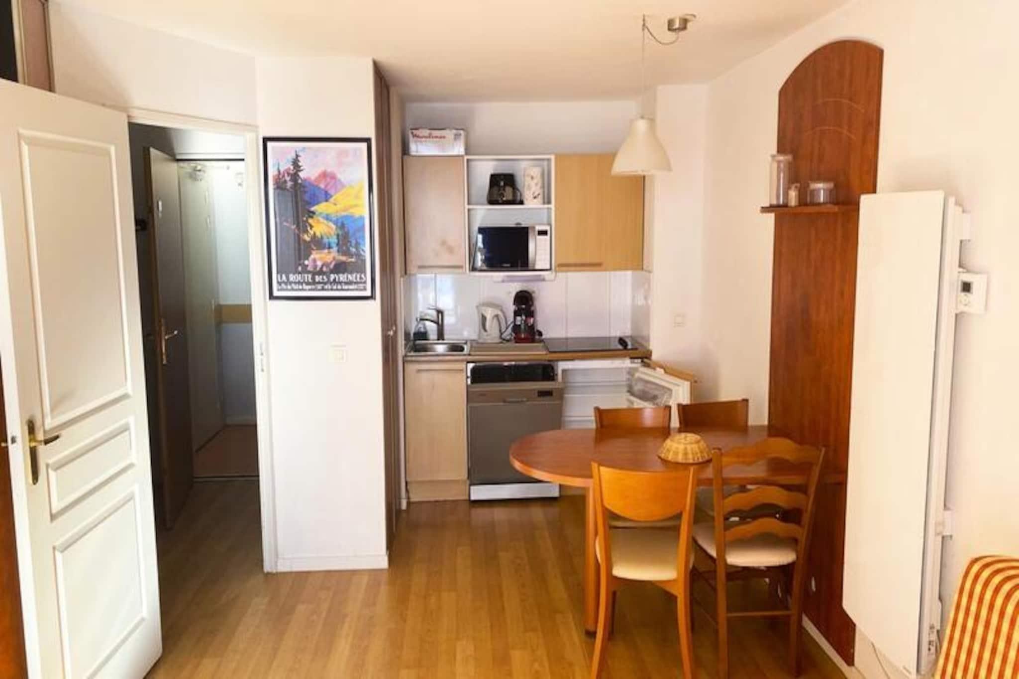 Pic du Midi-residensen ligger i La Mongie-skisportsstedet og tilbyder indkvartering med udsigt over det største skiområde i de franske Pyrenæer ("Grand Tourmalet - Barèges - La Mongie")! Residensen, der består af små bygninger med pyrenæisk arkitektur, der kombinerer træ og sten, tilbyder: - sydvendte lejligheder med loggiaer, der tilbyder en betagende udsigt over Pyrenæerne, - en opvarmet indendørs swimmingpool (Campan 1-bygningen), lukket om søndagen, åben fra kl. 10 til 19. - et fitnessrum (reservation påkrævet) (Campan 1-bygningen) - salg af liftkort og udlejning af skiudstyr, - en restaurant/pizzeria og bageri i nærheden. La Mongie-skisportsstedet er et paradis for vinterskiløb og udendørsaktiviteter (vandreture, cykling, hvidvandssport), og byder dig velkommen hele året rundt og er perfekt til familieferier! Ideelt beliggende ud mod pisterne, ved foden af ??Pic du Midi-observatoriet, med udsigt over den legendariske Col du Tourmalet-vej, vil Pic du Midi-residensen glæde dig med sin nærhed til "Grands Sites Hautes Pyrénées" og kurstederne Bagnères-de-Bigorre og Barèges. Om vinteren er der hurtig adgang til skiløjperne (300 m væk) via en gratis shuttle-service (120 m væk) hvert 15. minut (fra kl. 8.30 til 21.45 i weekenderne og indtil kl. 22.45 i weekenderne), som også har forbindelse til feriestedets centrum (800 m væk). Om sommeren nyder residensen godt af sin sydvendte beliggenhed, i hjertet af det pastorale område (får, køer og lamaer går frit omkring). Tournaboup- og Panorama-stoleliftene er åbne i juli/august for vandrere (mod et gebyr). Nøgleafhentning kan ske i receptionen på Tourmalet-residensen. Åbningstider for kollegiet: Lørdag fra kl. 8:00 til 12:00 og fra kl. 14:00 til 20:00. Søndag fra kl. 8:00 til 12:00 og fra kl. 15:00 til 18:00. Mandag til fredag ??fra kl. 9:00 til 12:00 og fra kl. 15:00 til 19:00. Denne lejlighed inkluderer: - Tekøkken med 4 keramiske kogeplader, køleskab, mikrobølgeovn/grill, opvaskemaskine, elkedel og elektrisk kaffemaskine - Spiseplads - Fladskærms-tv (TNT) - Skrivebord i stuen - Alle senge er udstyret med fleecetæpper, puder og en madrasbeskytter - Sydvendt terrasse eller loggia (med havemøbler om sommeren) med udsigt over pisterne og bjergene - Stue med 1 dobbelt sovesofa (160 x 200 cm) - 1 soveværelse med 1 dobbeltseng (160 x 200 cm) - Badeværelse med badekar og toilet I boligen: - 1 skiboks pr. lejlighed i et aflåst rum i hver bygning i vintersæsonen - Vaskerum åbent døgnet rundt Inkluderet i lejen: - Sengelinned (lagner og pudebetræk) - Badeværelseslinned: 1 bademåtte pr. badeværelse og/eller bruser, 2 badehåndklæder og 2 håndklæder er inkluderet under dit ophold. Ekstra sengetøj eller skift af sengetøj og rengøring er muligt mod et ekstra gebyr. - Wi-Fi med basisadgang (kontrol af e-mail og internetadgang). Fuld adgang (kontrol af e-mail, internetadgang og download af dokumenter og videoer) EURO5 til EURO25 afhængigt af pakke og varighed - Låneservice, afhængigt af tilgængelighed, til bordtennisketsjere og -bolde, hårtørrer, brødrister og brætspil - Udendørs parkeringsplads Bookingbetingelser: - Depositum på EURO250 pr. lejlighed, refunderes, fratrukket eventuelle skader, ubetalte tjenester eller mistede nøgler, inden for maksimalt 14 dage. Ved ophold på 14 sammenhængende nætter eller mere indløses depositummet. - Ankomst fra kl. 17.00, afrejse før kl. 10.00 Skal reserveres på stedet: Ekstra parkeringsplads: EURO49/uge Kæledyr: EURO40/uge Kæledyr tilladt - Gebyrbaseret Depositum (i euro) - EURO250 Parkering - Gebyrbaseret Wi-Fi - Gebyrbaseret Opvarmning - 1