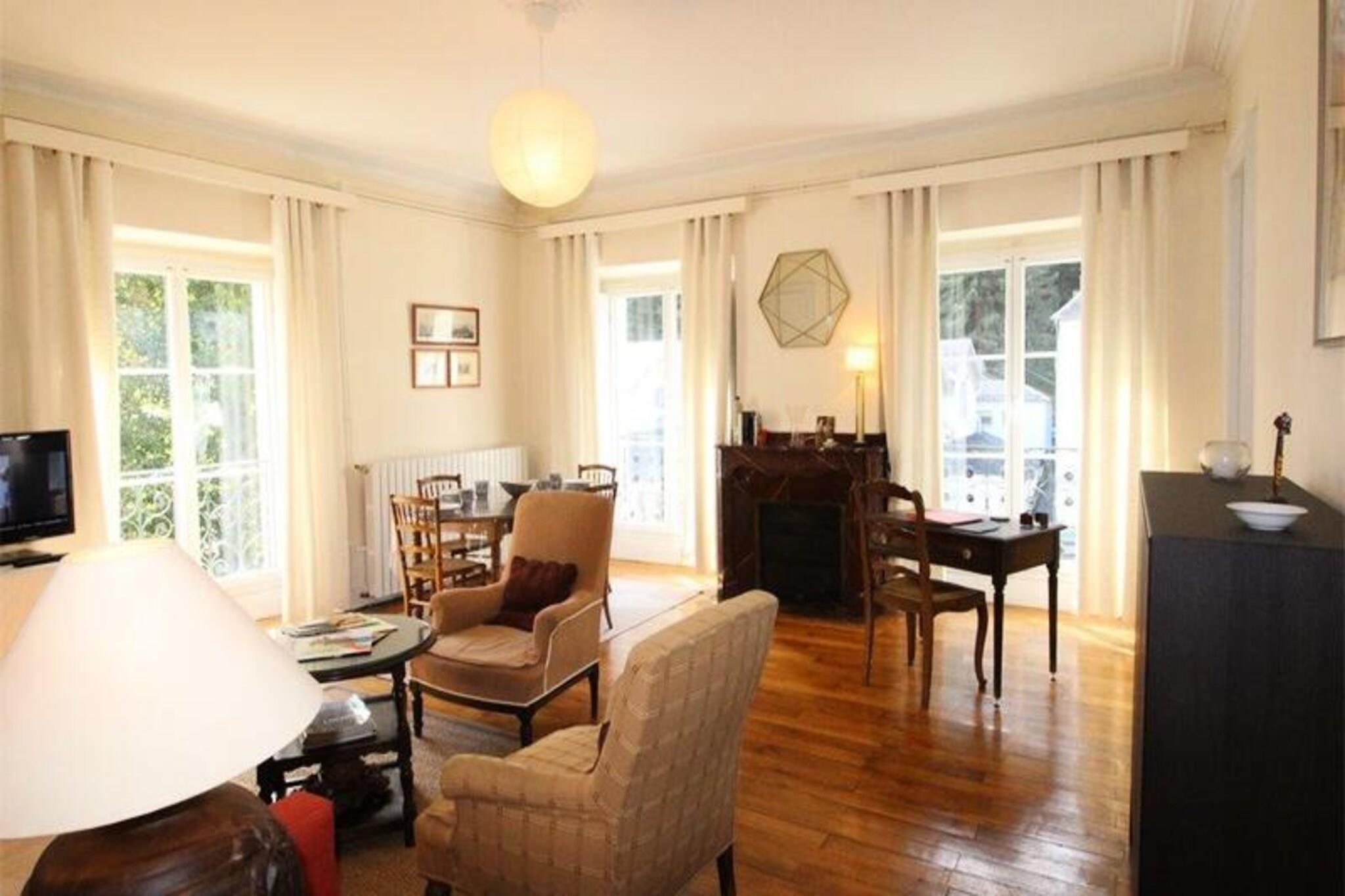 Denne solrige lejlighed på 70 m², beliggende på anden sal med elevator, har plads til 2-4 personer. Det har et fuldt udstyret køkken med moderne apparater, en stue med en dobbelt sovesofa og tv og et soveværelse med to 90*190 senge, skab og garderobe. Lejligheden er syd- og vestvendt og byder på skønt naturligt lys og udsigt til de termiske badeparken. Kun 400 meter fra gondolen og ud mod det termiske kompleks er lejligheden perfekt placeret til udendørsaktiviteter, herunder skiløb. Gæsterne kan udforske nærliggende butikker, caféer og restauranter i Luchons centrum. Lejligheden er ideel for dem, der søger både afslapning og eventyr. Badeværelset har bruser, bidet og toilet med vaskemaskine for nemheds skyld. Gæsterne har adgang til et fællesrum til ski og kan medbringe kæledyr under 10 kg. Et depositum og rengøringsdepositum er påkrævet for et glat ophold.
