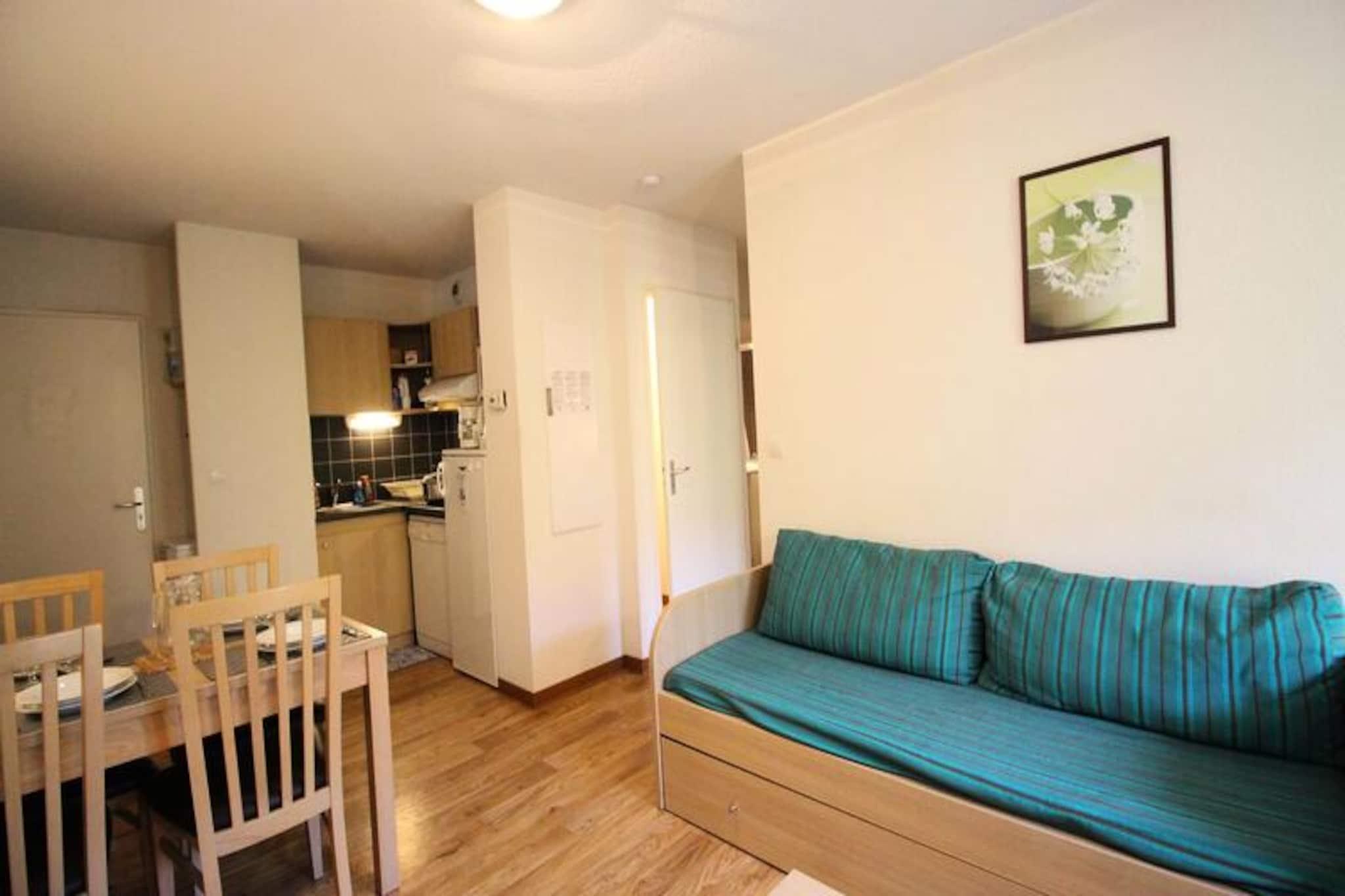 I hjertet af Pyrenæerne, hvor den friske bjergluft møder charmen fra en historisk kurby, tilbyder denne dejlige lejlighed i Residence Les Jardins du Ramel et roligt tilflugtssted for op til fire gæster. Beliggende kun få skridt fra den frodige Casino Park i Luchon, kombinerer ejendommen moderne komfort med betagende natur, hvilket gør den til en ideel base for at udforske regionens rige kultur og udendørs eventyr. Fra balkonen kan du nyde den rolige udsigt over en stille gade, den strømmende flod og de majestætiske tinder, der indrammer disse maleriske omgivelser. Indenfor er lejligheden omhyggeligt designet til at sikre et behageligt ophold. Det fuldt udstyrede tekøkken har moderne apparater, herunder keramisk kogeplade, opvaskemaskine, vaskemaskine, mikrobølgeovn og kaffemaskiner, perfekt til at tilberede måltider efter en dag med udforskning. Stuen med sin hyggelige sovesofa og fjernsyn åbner ud til balkonen, hvilket skaber et lyst og indbydende rum at slappe af. Soveværelset, der er møbleret med en blød 160x200 cm seng, har også franske døre, der fører ud til balkonen, så du kan vågne op til Pyrenæernes skønhed hver morgen. Et separat badeværelse og toilet, samt rigelig opbevaringsplads i gangen, bidrager til bekvemmeligheden ved dette charmerende tilflugtssted. Ud over lejligheden inviterer Luchon dig til at fordybe dig i sin unikke blanding af velvære og eventyr. Gå en tur gennem den pulserende Casino Park, forkæl dig selv med byens berømte termiske bade, eller tag svævebanen til skisportsstedet Superbagnères for panoramaudsigt og spændende alpine aktiviteter. Uanset om du er her for at vandre, stå på ski eller bare slappe af, tilbyder denne bolig det perfekte udgangspunkt for uforglemmelige oplevelser i enhver sæson. Små kæledyr er velkomne, hvilket sikrer, at alle familiemedlemmer kan deltage i det sjove. Oplev magien i Pyrenæerne fra dette hyggelige og veludstyrede hjem væk fra hjemmet.