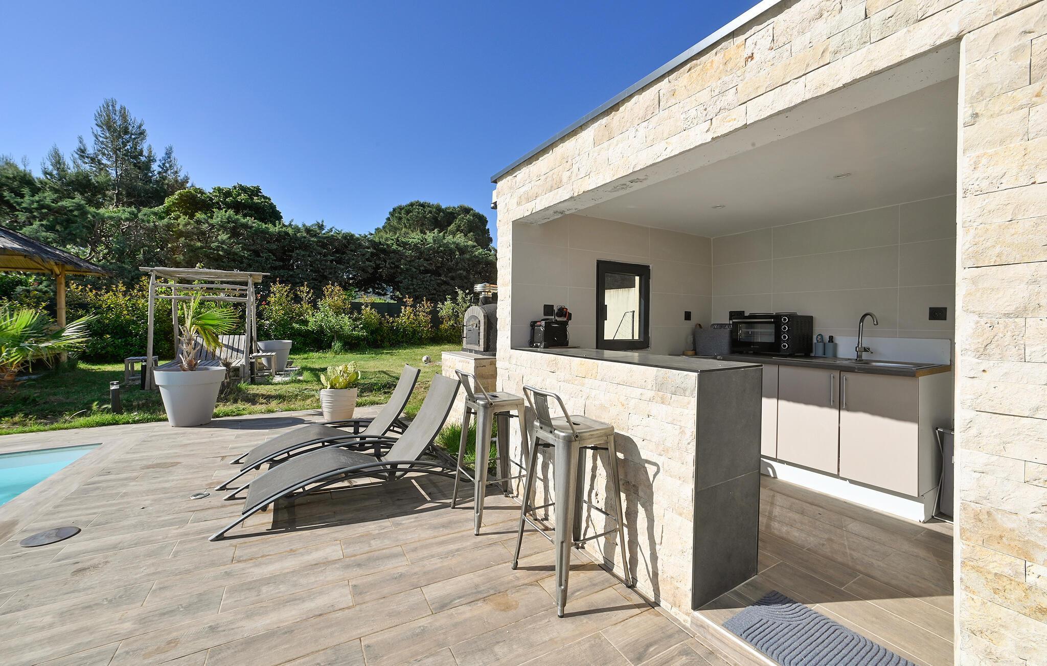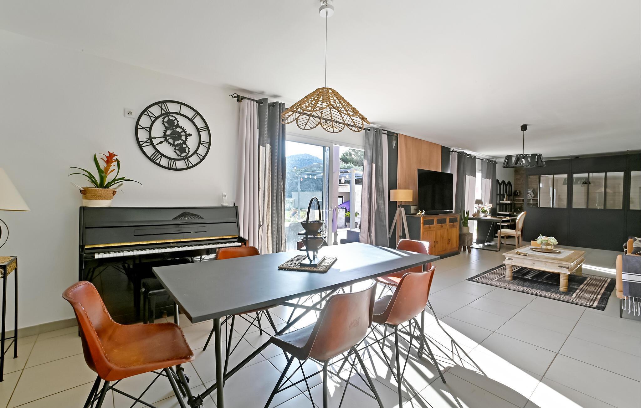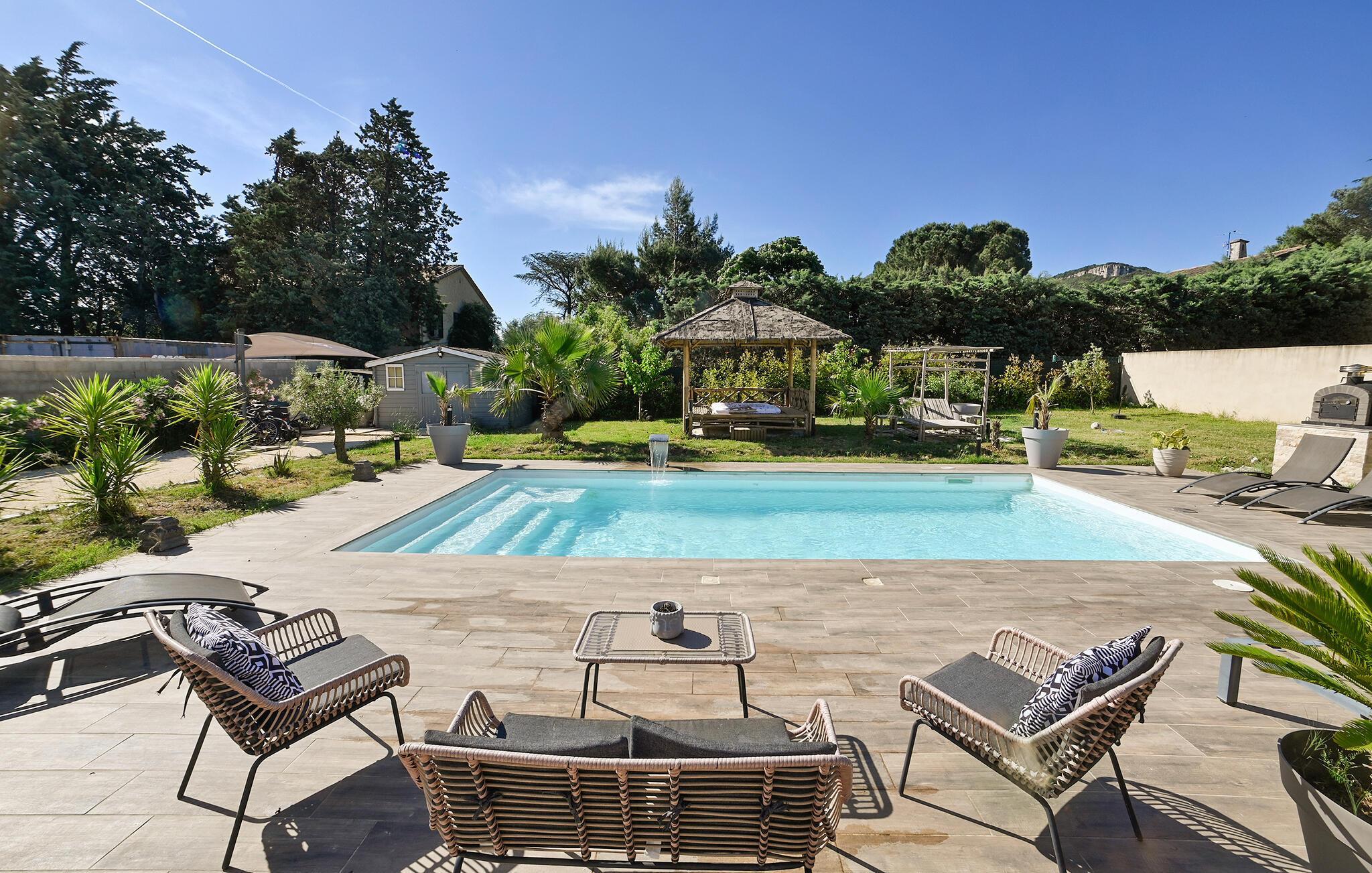 I dette indbydende hus får I alt, I kunne drømme om, til en magisk ferie tæt på Avignon. Huset ligger i rolige og trygge omgivelser, og her venter en oase, hvor I ikke kan andet end slappe af og koble helt af fra hverdagen derhjemme. Indretningen er yderst flot og stilren og kombineres med mange gode faciliteter. Sæt jer godt til rette ved klaveret og spil op til hyggelig fællessang og tag jer god tid til madlavningen i det veludstyrede køkken. Måltiderne nydes i solens milde stråler på terrassen, hvor I også kan stege saftige bøffer på grillen.