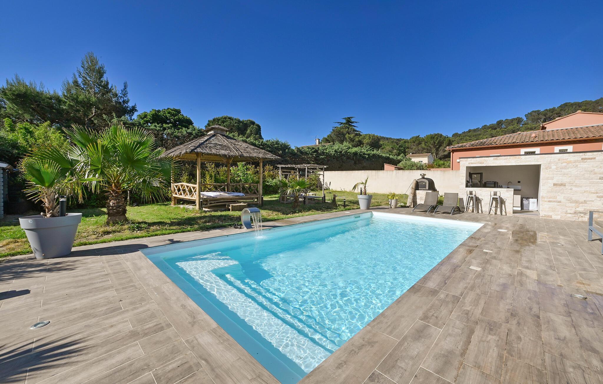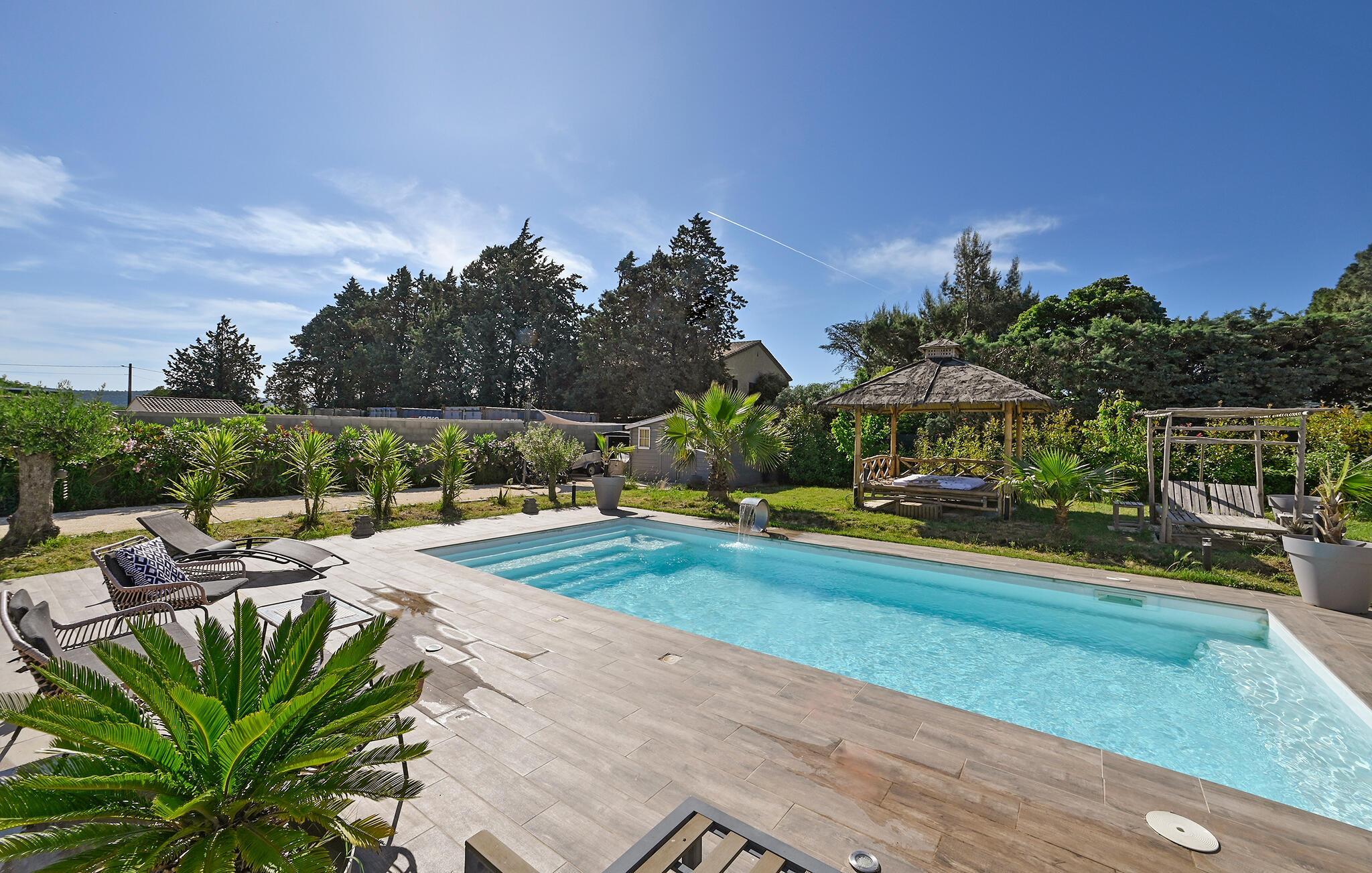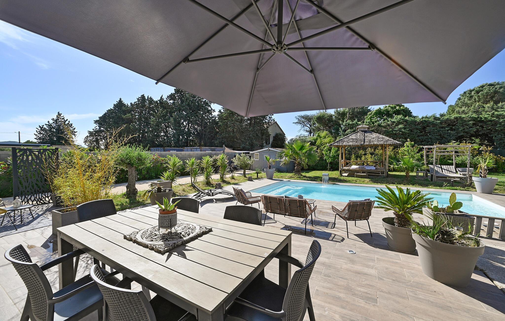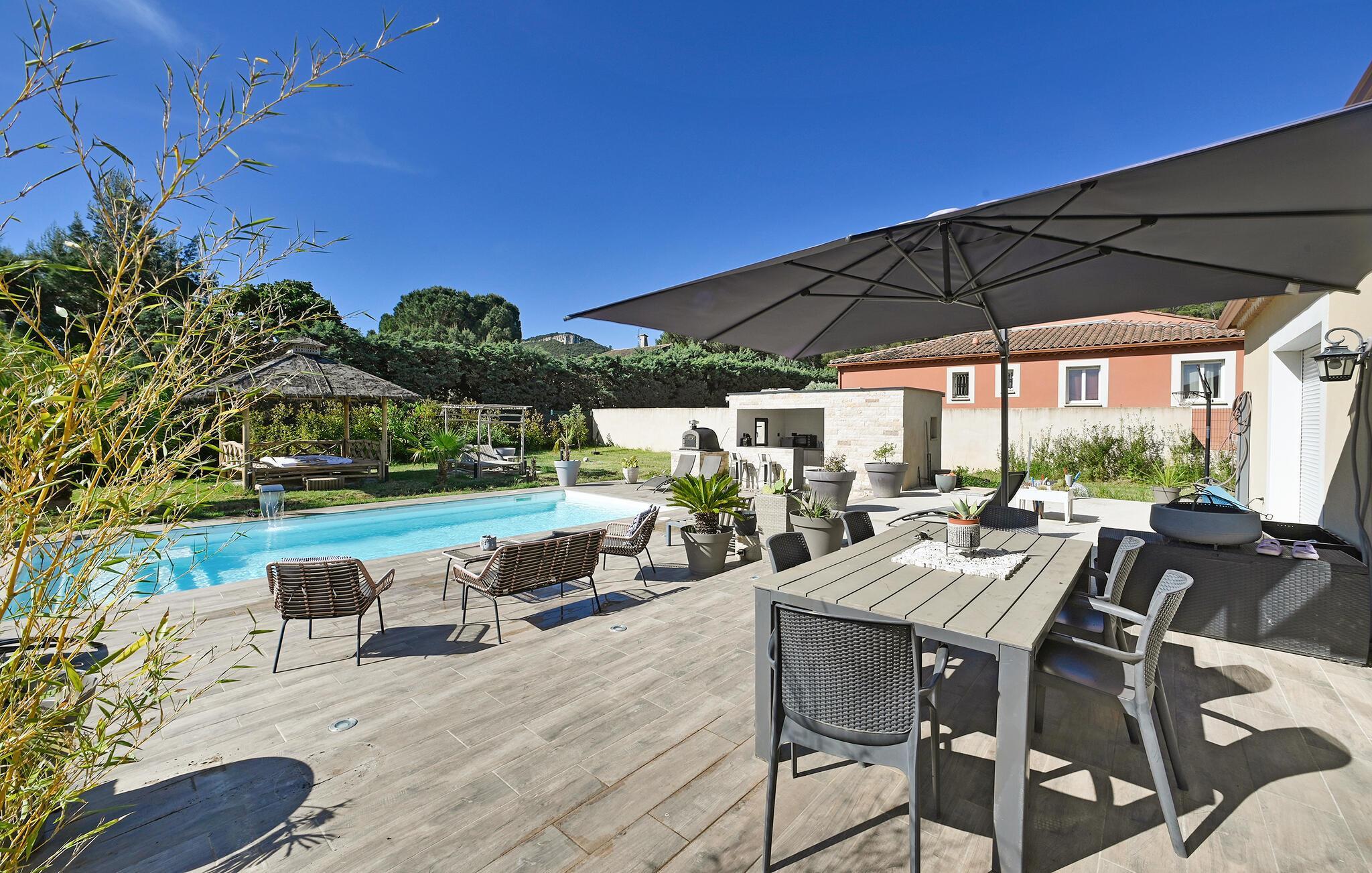 Årets dejligste ferie venter jer i dette elegante hus med pool, hvor I får masser af plads til hele familien.