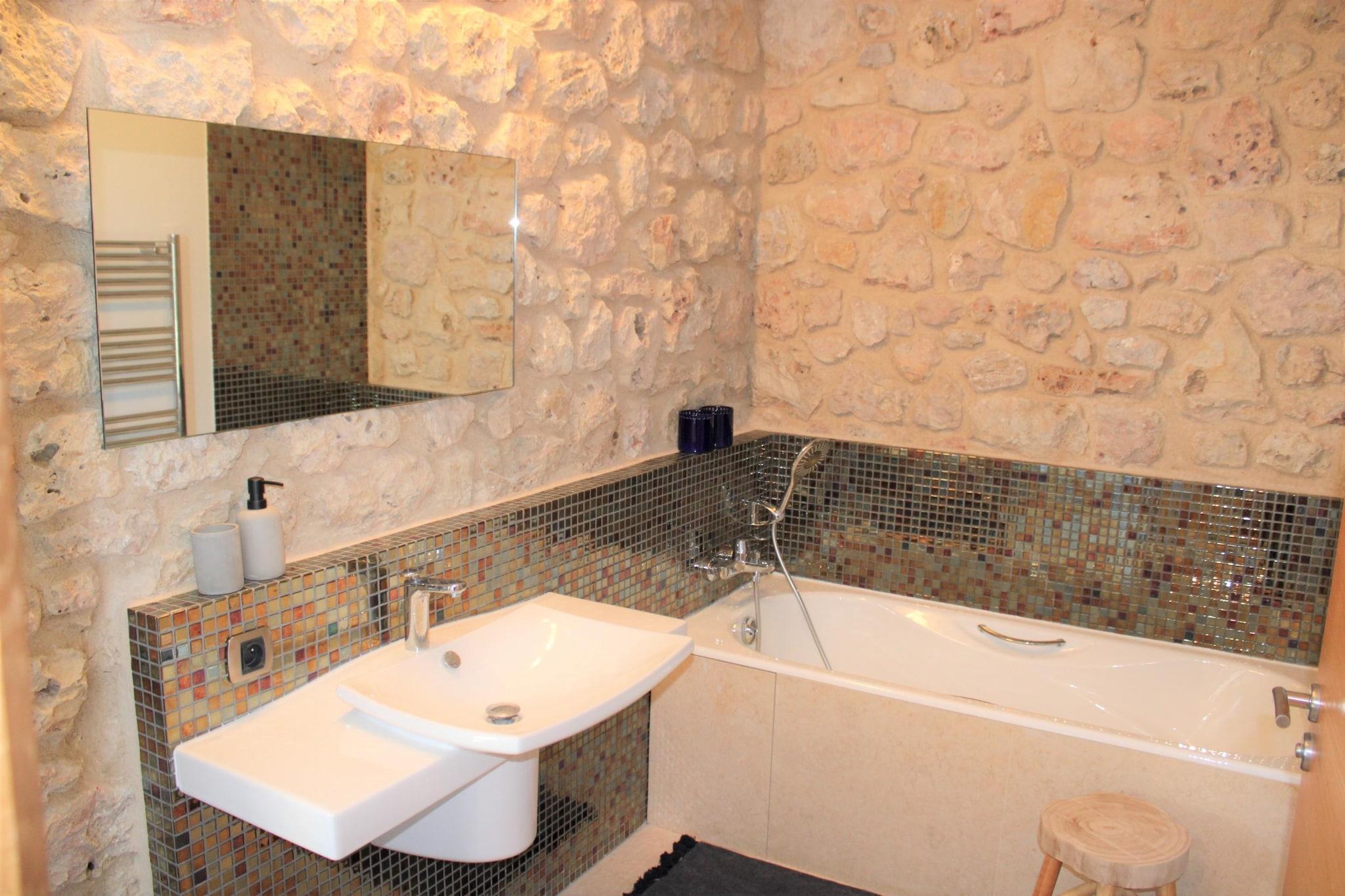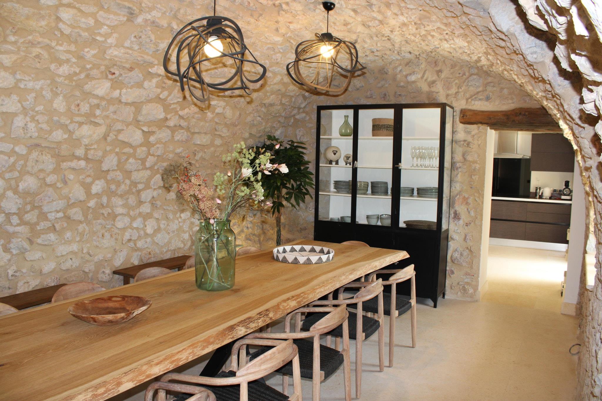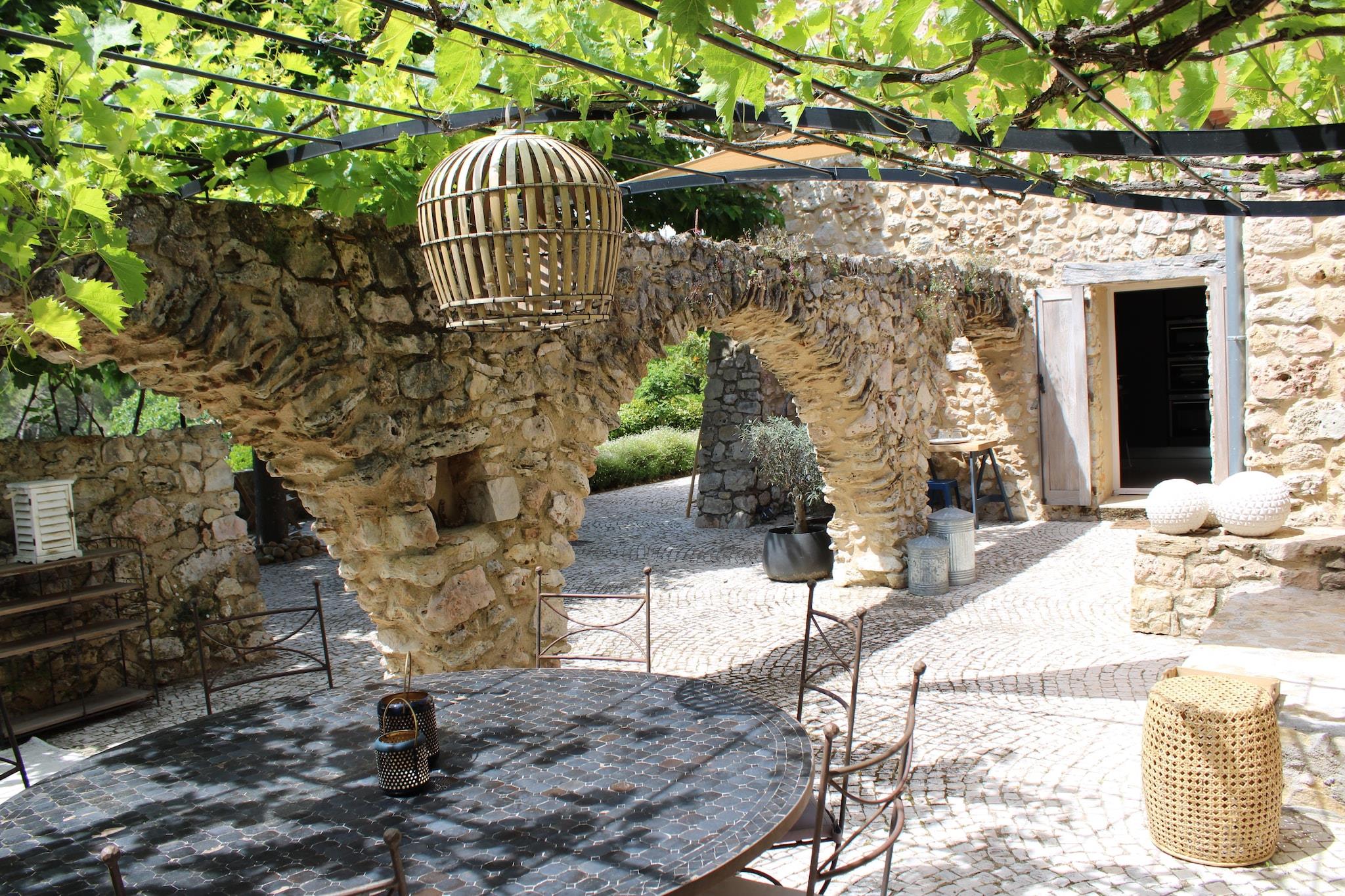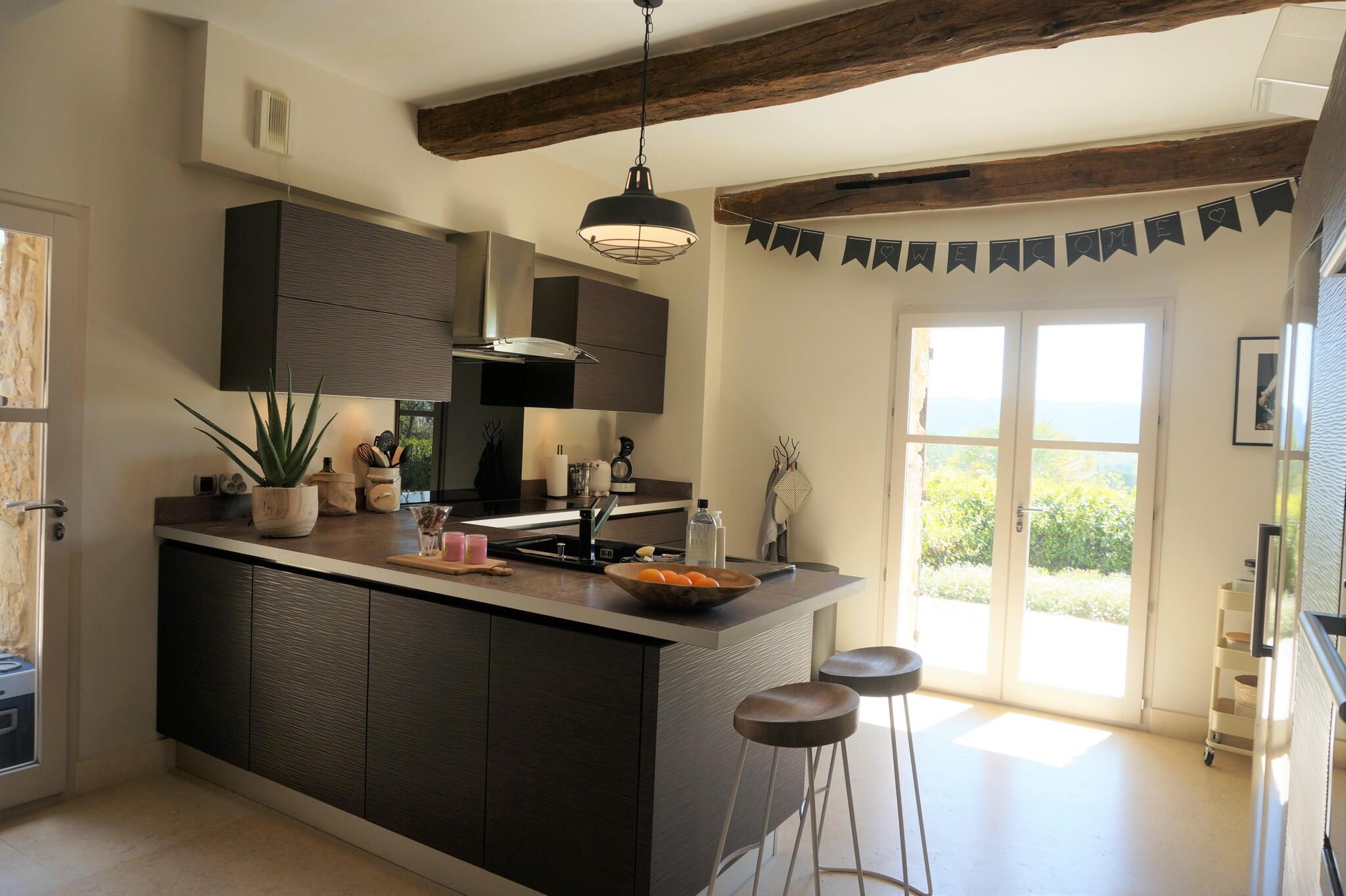 Du når Bastide Cléola gennem en stor indgangsport via indkørslen, gennem olivenlunden. En Pierre Bastide er blevet fuldstændig renoveret i autentisk stil og meget smagfuldt indrettet. Den rummelige bastide med et boligareal på mere end 450 m2, har en velholdt have på mere end 10.000 m2. Her finder du mange frugttræer, cypresser, oliventræer, oleandere og en dejlig græsplæne, hvor børnene kan lege. Til dem er der en trampolin, et børnehus med gynge, rutsjebane og basketballnet, en anden stor gynge og en svævebane (op til maks. 60 kg) til leg. Bastide Cléola har en smuk udsigt over den lidt lavere opvarmede swimmingpool og bakkerne i Bagnols-en-Forêt. Den opvarmede swimmingpool er 14 gange 8 meter og har trin til en dybde på op til 1,80 meter. Omkring poolen er der 14 komfortable liggestole (enkelt og dobbelt) til vidunderlige afslappende timer. Ved siden af ??køkkenet er en rummelig terrasse med et stort rundt spisebord og et rektangulært udtrækbart spisebord. Der er et dejligt opholdsområde med lounge sofa og 2 lænestole til at nyde udsigten med et glas lokal rosé. Der er en stor gasgrill og udendørs køkken til at forberede dine kulinariske lækkerier. Der er også en lidt lavere terrasse med et komfortabelt loungesæt og gyngestol. Bagnols-en-Forêt, er en charmerende landsby beliggende kun 18 km fra kystbyen Fréjus. I Bagnols-en-Forêt, 1,5 kilometer fra Bastide, kan du få dine friske croissanter og daglige dagligvarer. Dette smukke landlige feriehus er velegnet til store grupper på op til 14 personer. Der er masser af plads og privatliv omkring bastiden. Der er 3 overdækkede parkeringspladser og plads nok til flere biler på parkeringspladsen. Tænd for swimmingpoolvarmen sker altid på forespørgsel og er kun muligt uden for sommermånederne. I månederne juli og august har vandet i sig selv en vidunderlig temperatur. Omkostningerne hertil er EURO300 pr. uge.