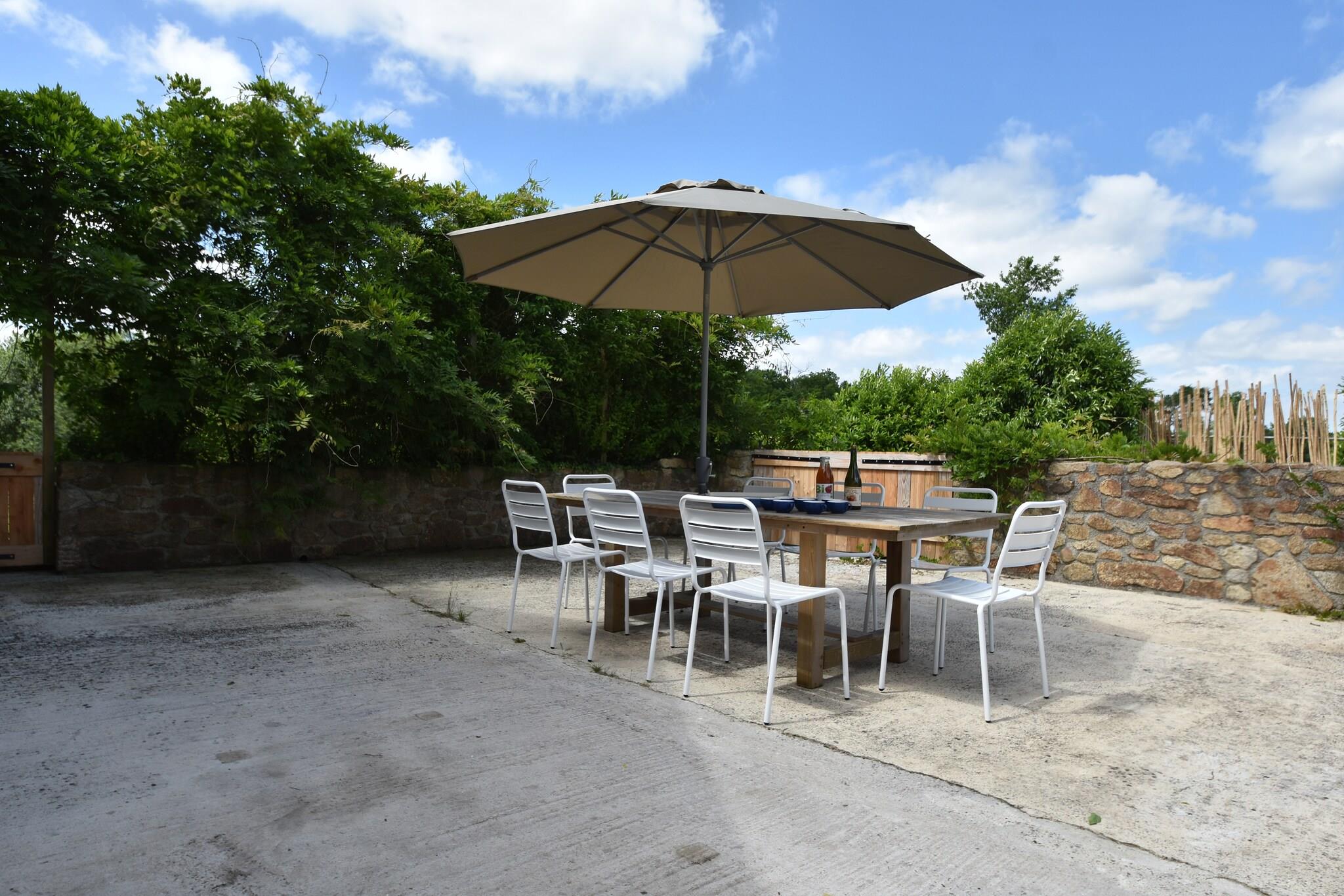 Flugt til Les Volets Bleus, et charmerende feriehus beliggende i det fredelige landskab i Baguer-Morvan. Med stilfulde, komfortable møbler og et rummeligt layout er det perfekt til familier eller venner, der søger en afslappende ferie. Boligen byder på privatliv uden tætte naboer og har et opholdsrum med bordtennis og en smukt møbleret have til udendørs nydelse. Beliggende kun 7 km fra bugten Mont St Michel og 30 km sydøst for St-Malo, er Baguer-Morvan en port til nogle af Bretagnes mest ikoniske destinationer. Udforsk de historiske gader i Dol-de-Bretagne, nyd sandyacht i Cherrueix, eller besøg fiskerbyen Cancale. For familiehygge ligger Coba Park kun 10 km væk, og den legendariske Mont St Michel er et must-see 40 km væk. Uanset om du slentrer gennem bretonske landsbyer, spiser frisk fisk og skaldyr eller blot slapper af i haven, tilbyder Les Volets Bleus en rolig base for at opleve skønheden og kulturen i det nordlige Frankrig.
