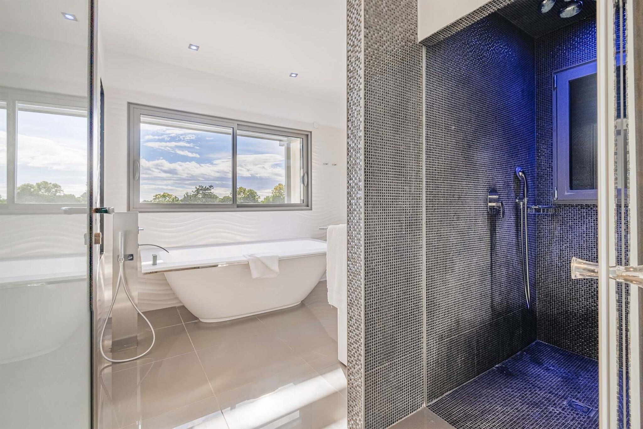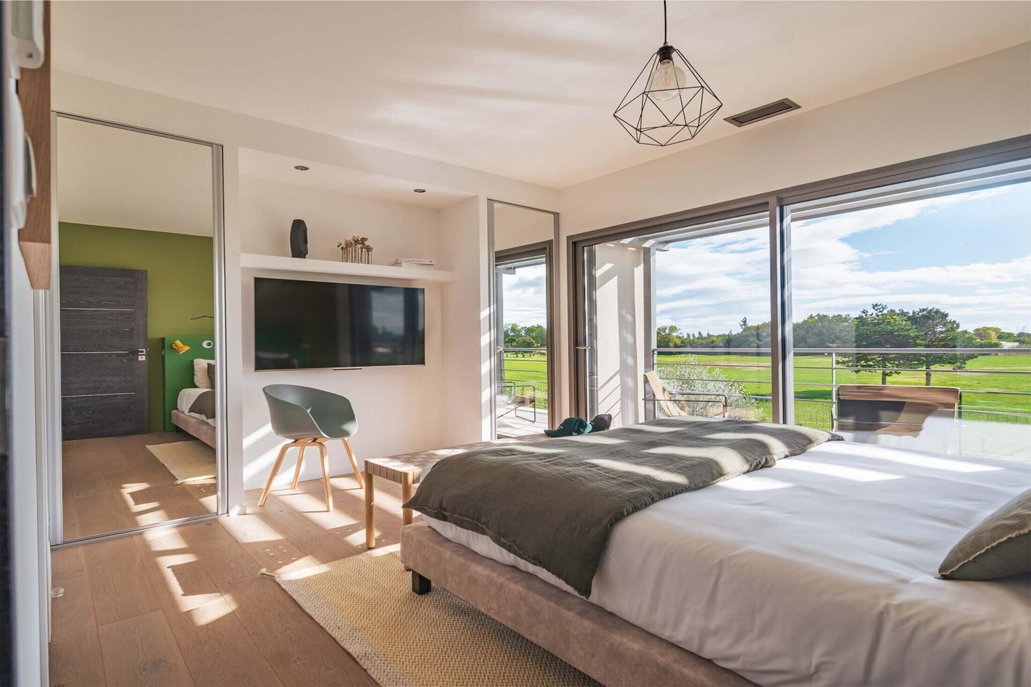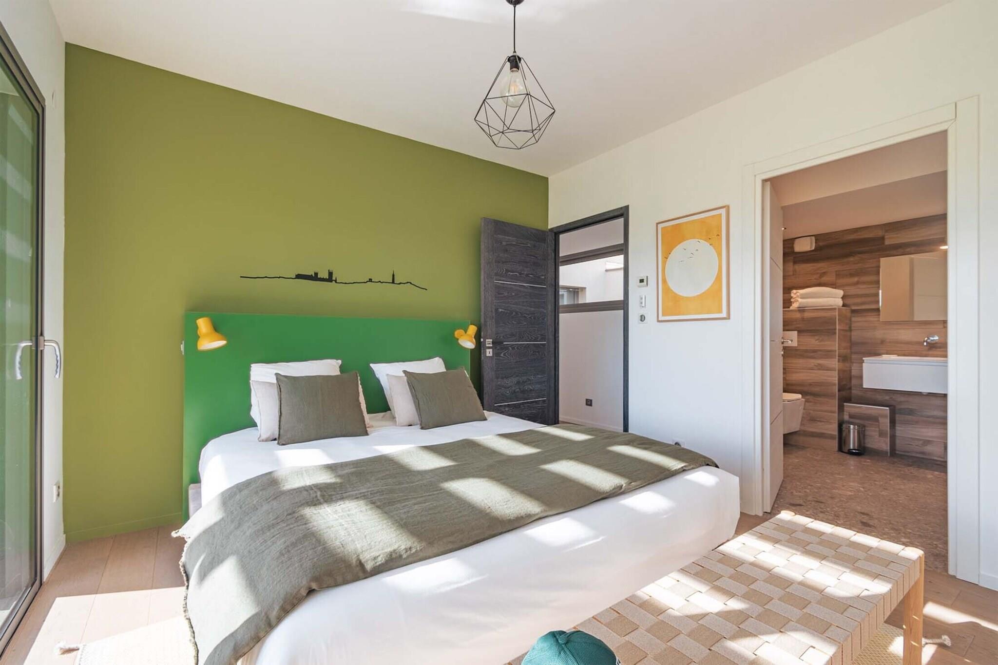 Beliggende i hjertet af Massane Golf Estate og kun få minutter fra Montpellier, tilbyder Villa Horizon Resort Massane et roligt og frodigt tilflugtssted. Dens førsteklasses beliggenhed balancerer ro og tilgængelighed perfekt, hvilket gør det til en ideel flugt fra bylivet. Med udsigt over uberørte naturlandskaber lover villaen en eksklusiv oplevelse, hvor luksus problemfrit møder velvære. Denne elegante villa på 270 m² byder velkommen til op til 8 gæster med rummelige, solrige interiører, der åbner ud til en frodig middelhavshave og en fantastisk privat swimmingpool. Stueetagen har en stor opholdsstue med en hyggelig lounge, pejs og et fuldt udstyret køkken designet til fælles øjeblikke. Fire stilfulde soveværelser - inklusive en master suite og et soveværelse med walk-in closet - har hver deres private badeværelser, hvilket sikrer komfort og privatliv. Tre soveværelser åbner ud til en gangsti med betagende panoramaudsigt over golfbanen og haven. Baillargues, lige uden for Montpellier, blander fredelige naturlige omgivelser med pulserende byliv. Nyd nem adgang til supermarkeder, butikker og restauranter, mens du udforsker nærliggende middelhavsstrande, naturskønne vandreture og lokale kulinariske lækkerier. Villaen tilbyder også adgang til 18-hullers Massane Golfbane, Zéphyr wellness-området med sauna og hammam samt et moderne fitnesscenter. Inkluderede ydelser sikrer et problemfrit ophold: redte senge ved ankomst, sengelinned og håndklæder, slutrengøring, højhastigheds-Wi-Fi, telefon, Chromecast, pengeskab, hårtørrer, rengøringssæt, aircondition, parkering med ladestationer, adgang til den opvarmede udendørs pool (april til oktober) og fitnessrummet.