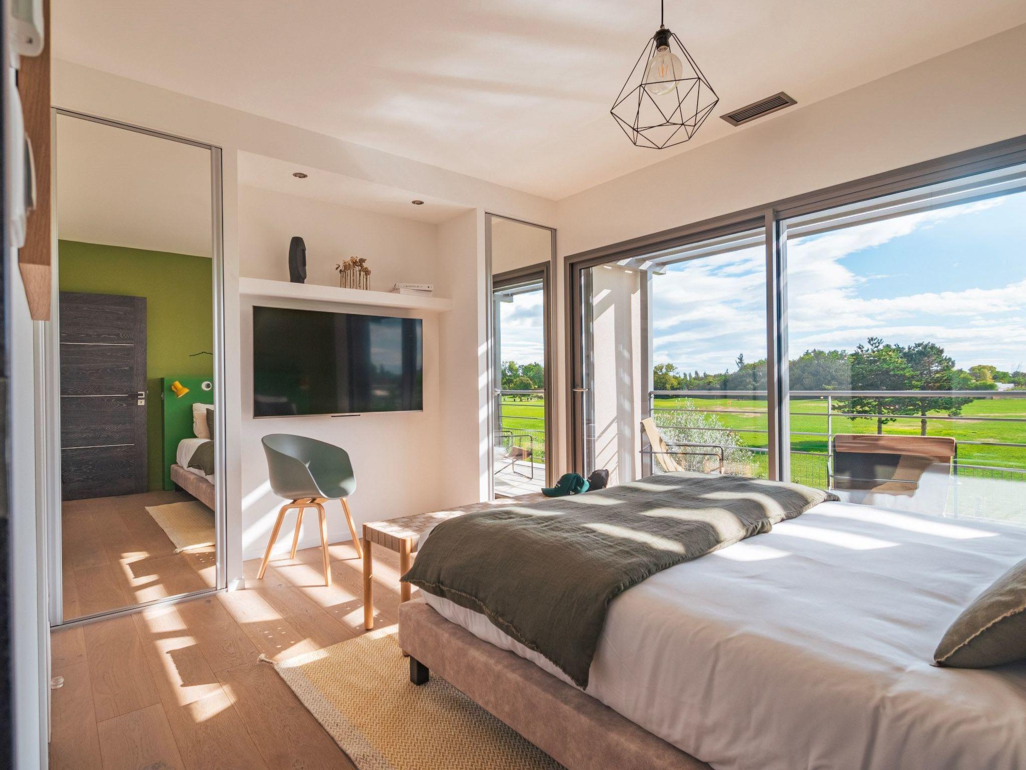 Modern, beautiful villa "Horizon Resort Massane", 2 storeys. 3 km from the centre of Baillargues, 17 km from the centre of Montpellier, 27 km from the centre of La Grande Motte, 27 km from the sea, 27 km from the beach, on the golf course. Private: well-kept garden (fenced), swimming pool heated (seasonal availability: 15.Apr. - 15.Oct.) with internal staircase and alarm system. In the complex: restaurant, bar, sauna (extra). Fitness room. Parking at the house on the premises, single garage. Shop 1.5 km, supermarket 1.5 km, bus stop "Gare de Baillargues" 1 km. Golf course (18 hole). Nearby attractions: Montpellier 17 km, Plages de la Méditerranée 27 km, Nimes / Aigues Mortes 40 km, Saintes Maries de la Mer 60 km, Arles 70 km, Béziers / Avignon 80 km.