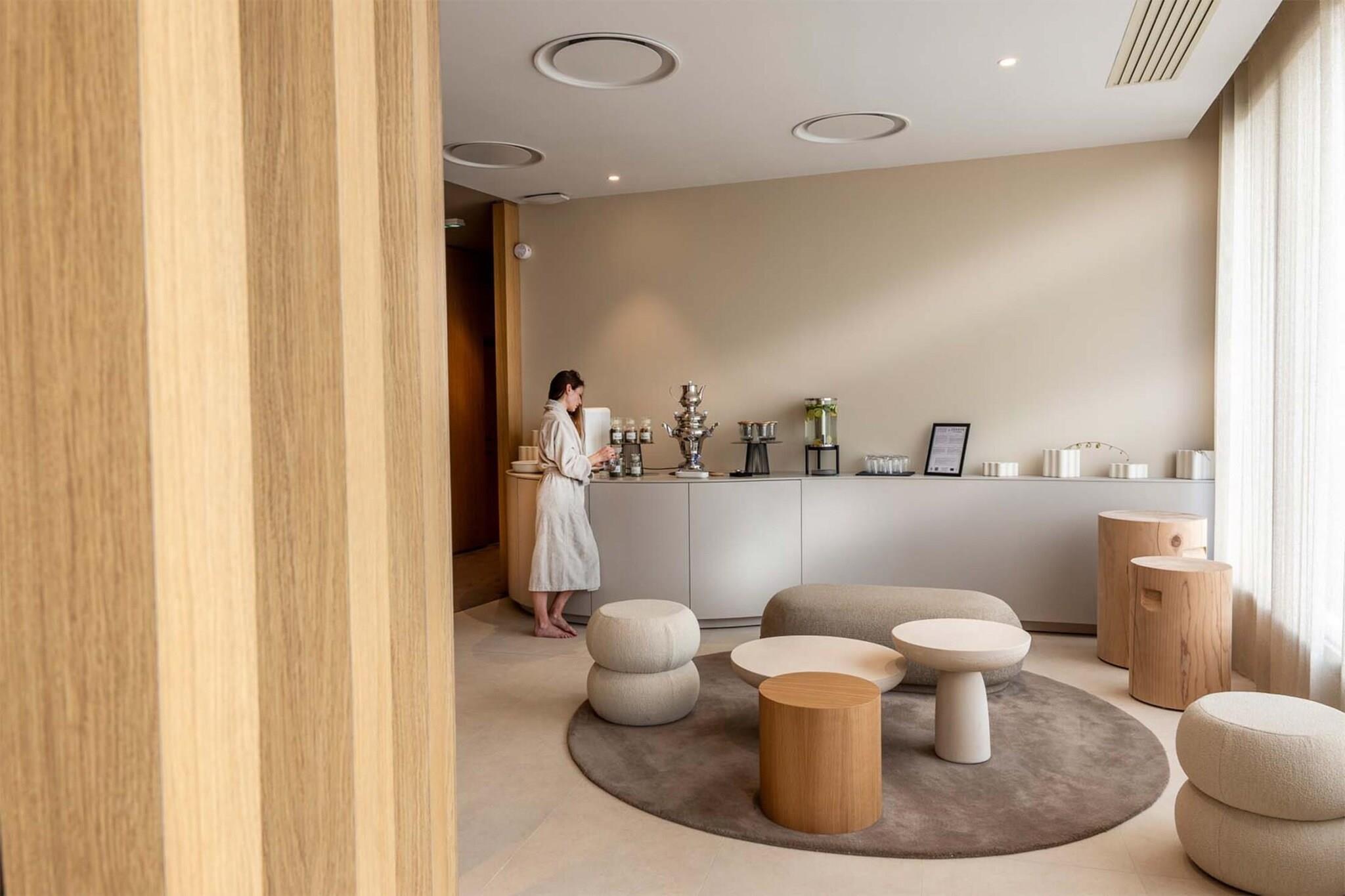 Stue(sofahjørne), Køkken(kogeplade, elkedel, kaffemaskine, mikrobølgeovn, opvaskemaskine , køleskab), soveniche(dobbeltseng), badeværelse(bruser, toilet), fitnessrum, sauna, klimaanlæg, parkering, swimmingpool(deles med andre gæster, udendørs, opvarmet), føntørrer