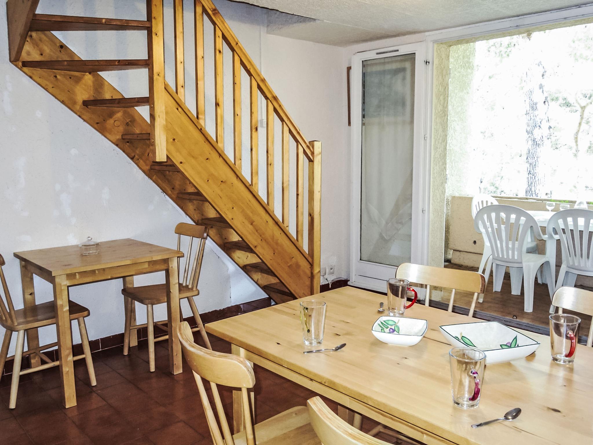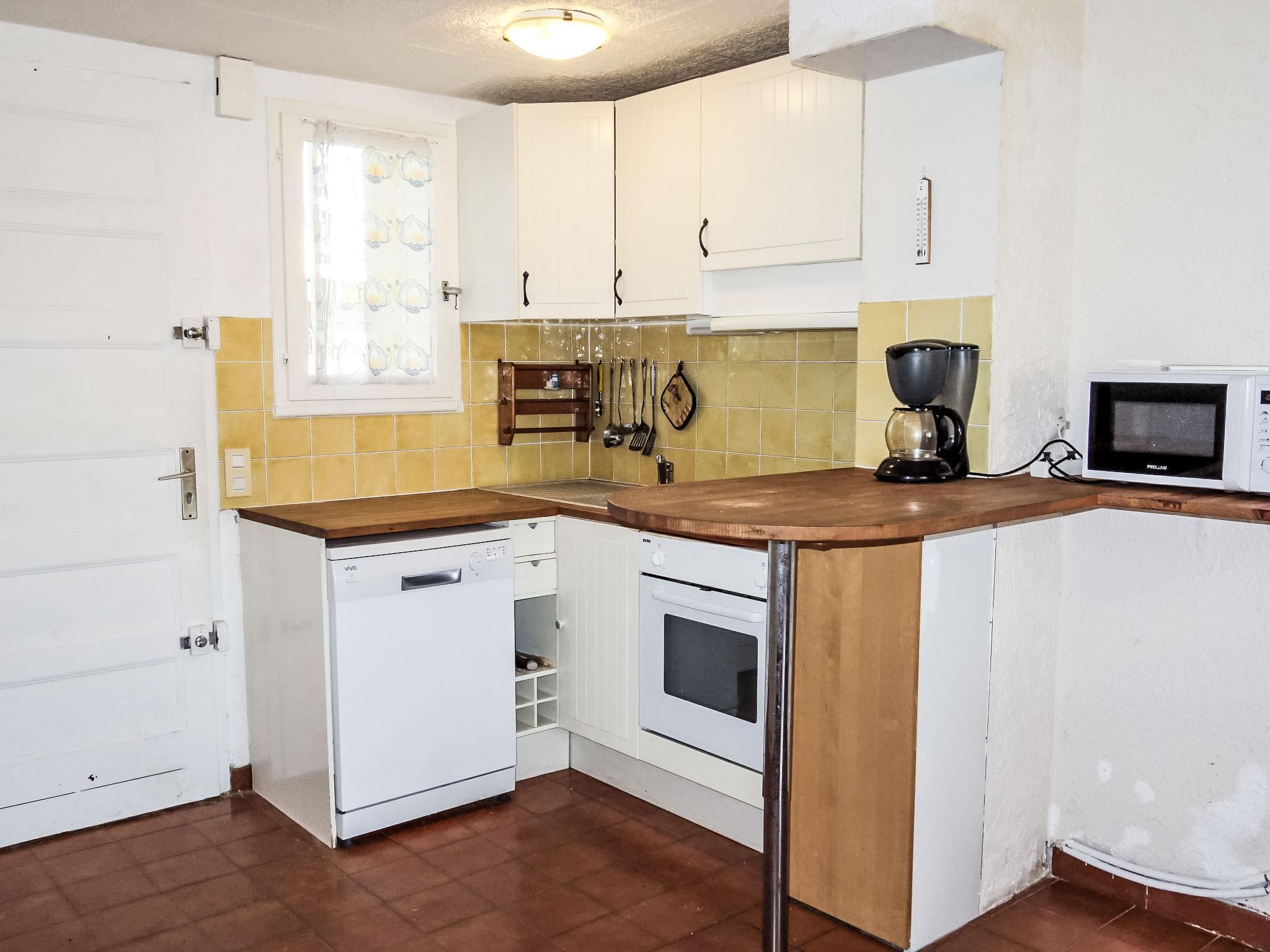 3-room apartment 46 m2 on 1st floor. Beautiful furnishings: living/dining room with 1 pull-out bed (2 pers. 2 x 80 cm, length 190 cm), TV (flat screen). Exit to the terrace. 1 room with 2 beds (80 cm, length 190 cm). Kitchenette (oven, dishwasher, 4 induction hot plates, toaster, kettle, microwave, freezer, electric coffee machine). Shower, sep. WC. Electric heating. Upper floor: (steep stair) large gallery with sloping ceilings, ceiling height 85 - 190 cm with rooflight with 2 beds (80 cm, length 190 cm). Terrace 10 m2, roofed, south-east facing position. Terrace furniture. View of the garden. Facilities: washing machine, iron. Internet (WiFi, extra). Parking space n 14. Please note: TV only FR. Smoke alarm. Instead of an enclosed bedroom, some sleeping areas are located in an open-plan area (gallery, alcove, etc.). 83009 000001 QR