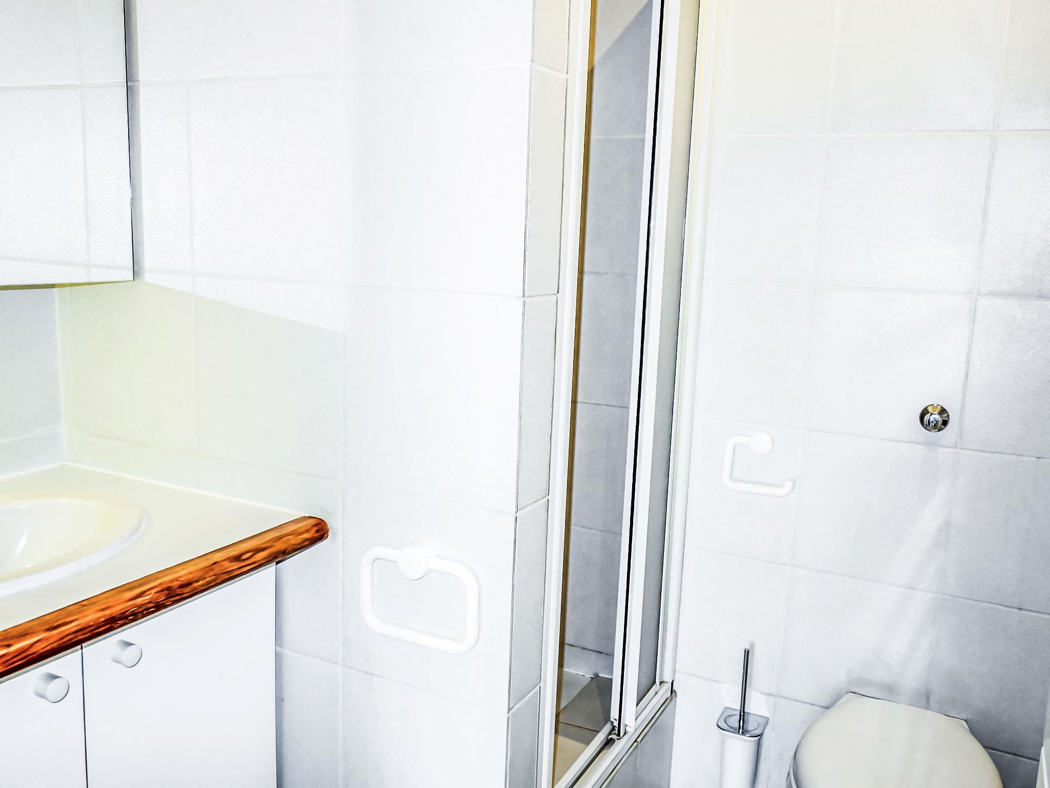 1-room apartment 28 m2 on 3rd floor, east facing position. Beautiful furnishings: living/dining room with panoramic window with 1 double sofabed (160 cm, length 200 cm), TV (flat screen), hi-fi system. Exit to the terrace. Kitchen in the entrance (dishwasher, 2 ceramic glass hob hotplates, toaster, kettle, microwave, freezer, electric coffee machine, Capsules for coffee machine (Nespresso) extra). Shower/WC. Electric heating, air-conditioning. Terrace 8 m2, roofed, east facing position. Beautiful distant view of the sea and the countryside. Facilities: washing machine, dryer, iron. Internet (WiFi, free). Please note: TV only FR. Smoke alarm. Covered balcony. Free parking 100m away from the property in the residence. 83009001288AS