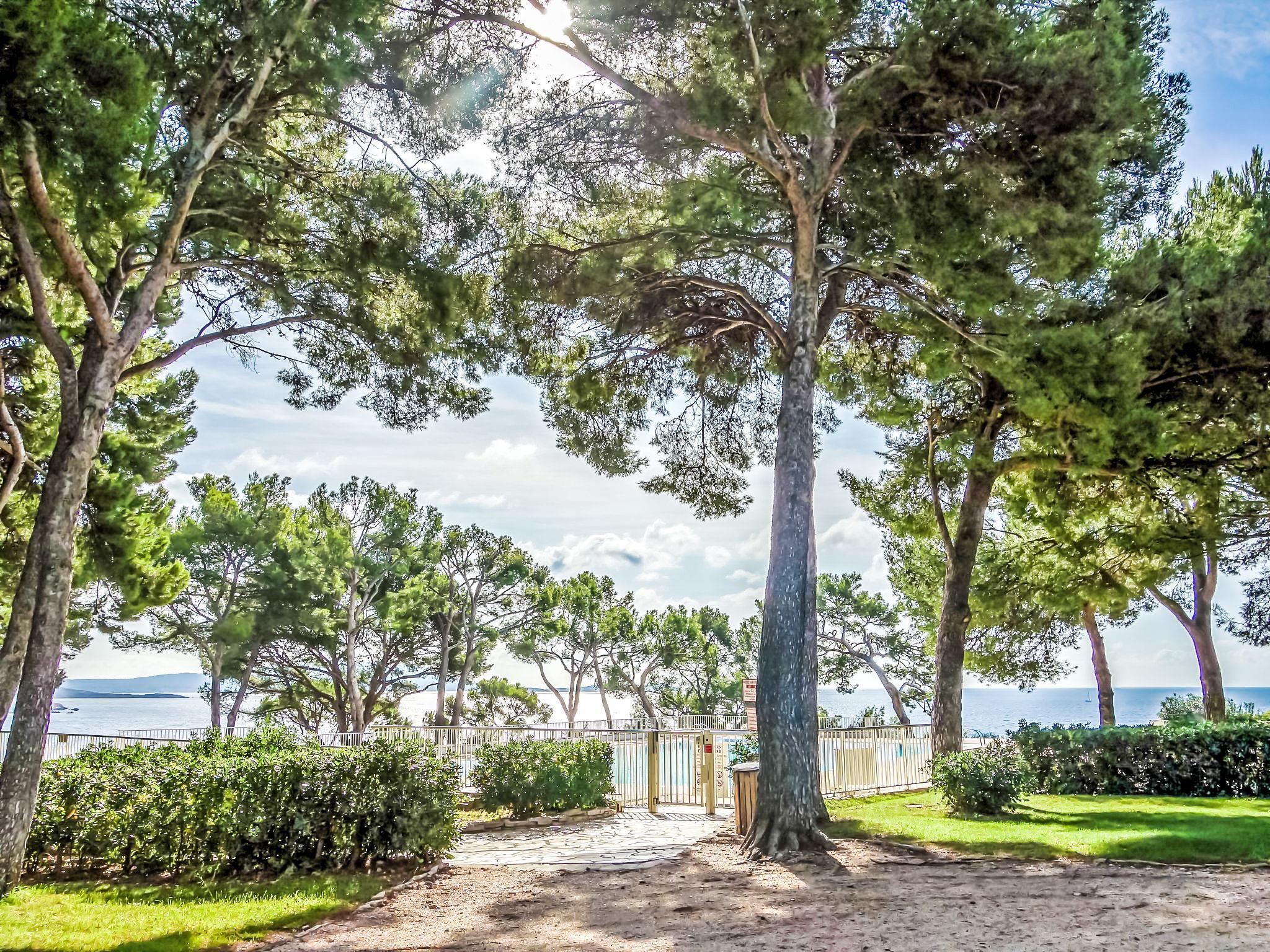 Beautiful apartment house "Athéna Résidence", 3 storeys, surrounded by trees. In the district of Pierreplane 3 km from the centre of Bandol, 50 m from the sea, in a cul-de-sac, in the countryside. For shared use: park 14 ha (fenced), swimming pool fenced (25 x 12 m, depth 110 - 350 cm, seasonal availability: 03.Apr. - 30.Oct. pool opening hours: 08:30-19:00). Tennis (01.Jul. - 31.Aug.) (extra). In the complex: reception, lift. Shop 1.5 km, grocery 1.5 km, bus stop "Arrêt Casino" 3 km, railway station "Gare de Bandol" 2.5 km, sandy beach 3 km, shingle beach 400 m. Sports harbour 2.8 km, golf course (18 hole) 6 km, walking paths from the house 50 m. Nearby attractions: Chemins de randonnées pédestres 50 m. Hiking paths: Sainte Baume, Sainte Victoire, Calanques Port-Cros, Porquerolles, Ile verte, Embiez, Figuerolles, Cassis. Please note: car recommended. 24hr guard. Residence with electric gates. The keys‘ handover takes place by the agency Interhome in Saint Cyr Sur Mer, 9 km.