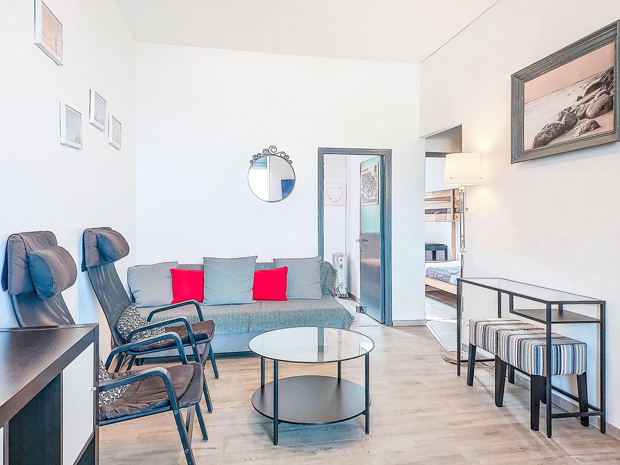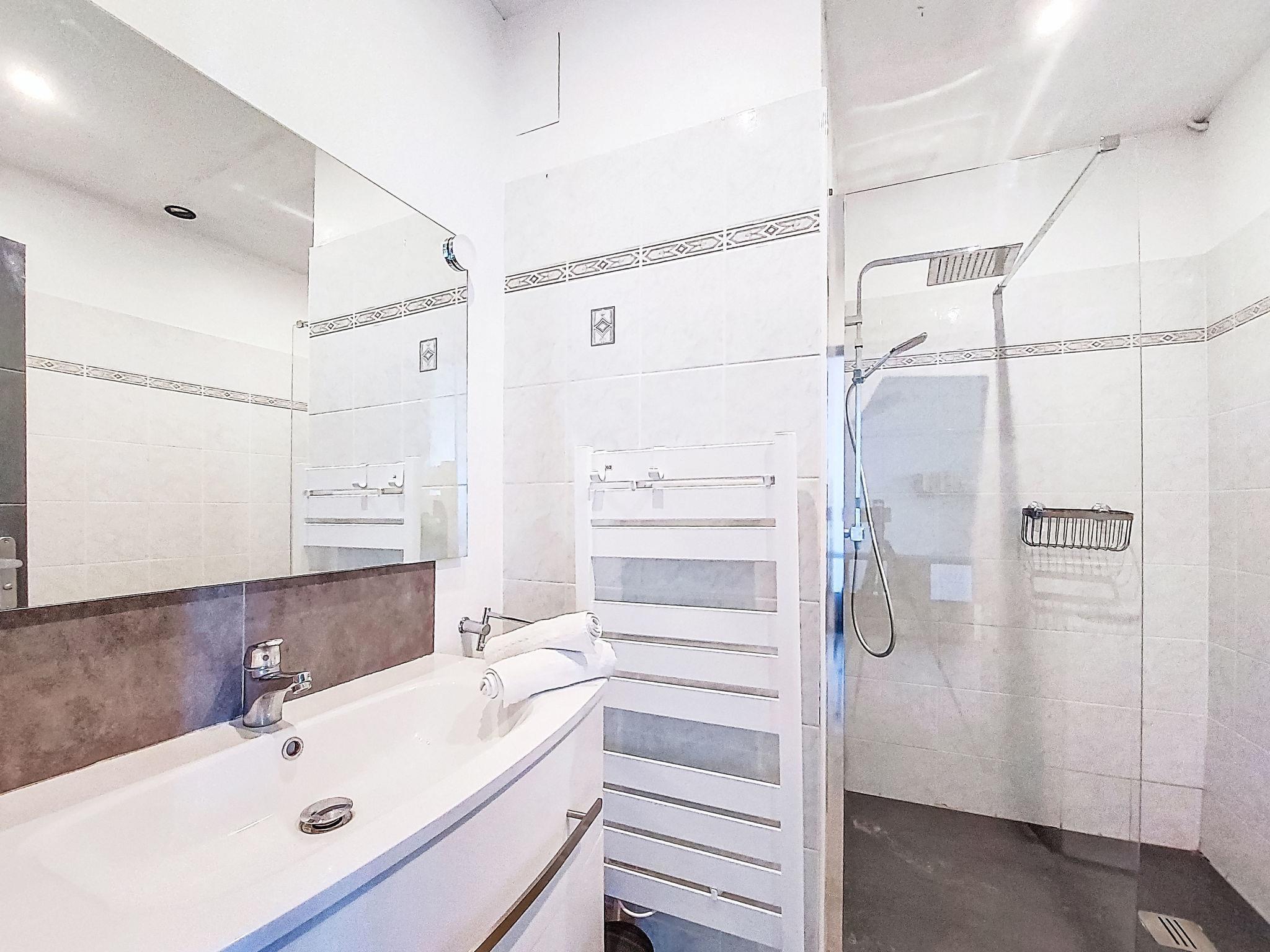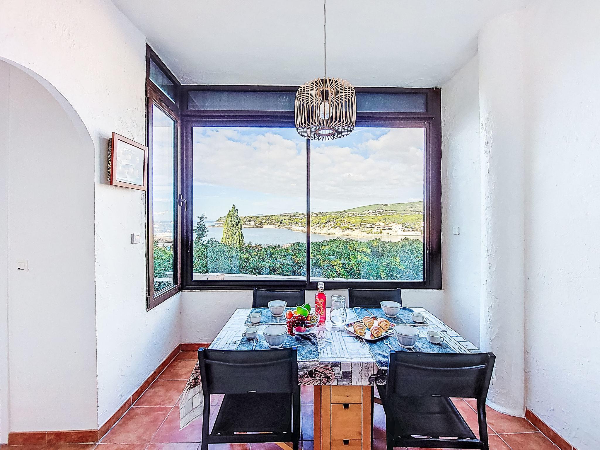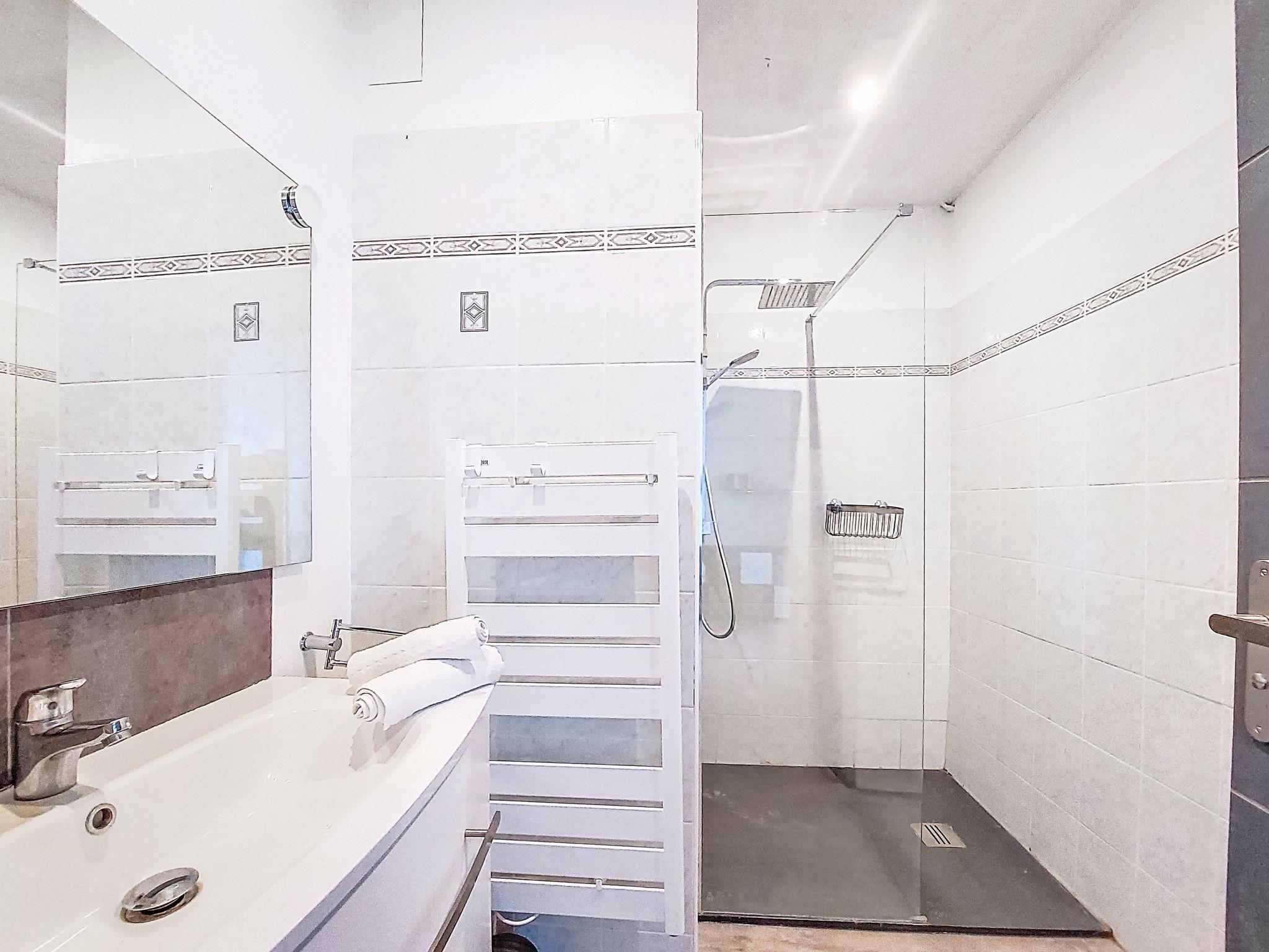 3-room apartment 48 m2, on the ground floor. Bright, partly renovated in 2023, comfortable furnishings: living/dining room with TV (flat screen), fan. 1 room with 1 french bed (1 x 160 cm, length 200 cm). 1 room with 1 x 2 bunk beds (80 cm, length 200 cm). Open kitchen (oven, dishwasher, 3 ceramic glass hob hotplates, toaster, kettle, freezer, electric coffee machine, combination microwave). Exit to the terrace. Shower, sep. WC. Electric heating. Terrace 18 m2, north-west facing position. Terrace furniture, electric barbecue. Marvellous panoramic view of the sea. Facilities: washing machine, iron, baby cot for up to 2 year olds. Internet (WiFi, free). Please note: maximum 1 small pet/ dog allowed. TV only FR. Smoke alarm. Parking spaces in the residence are limited. Access to the terrace is down 3 steps. Offer by a private individual according to Art. 155, IV of CGI.
