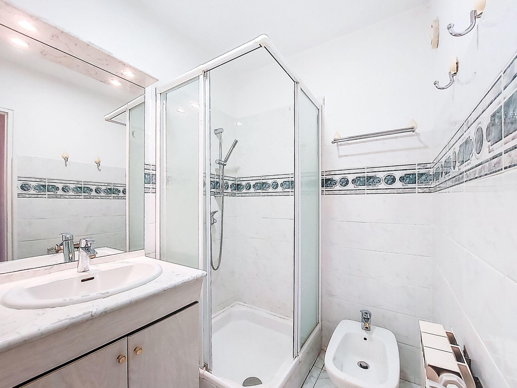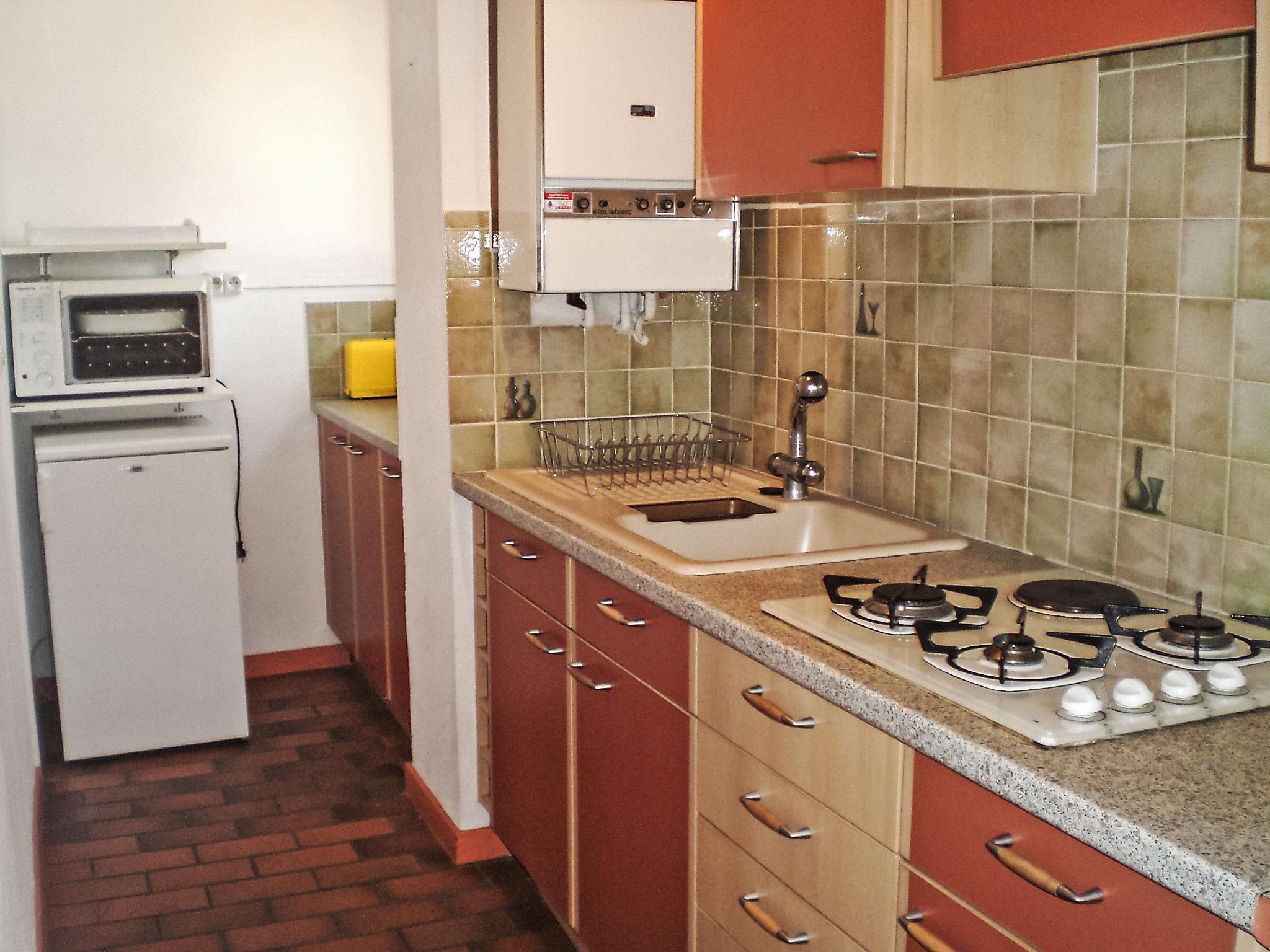 2-room apartment 45 m2 on 3rd floor. Spacious, beautiful furnishings: living/dining room with 1 double sofabed (140 cm, length 190 cm), TV. Exit to the terrace, to the loggia. 1 room with 1 french bed (140 cm, length 190 cm). Exit to the loggia, north-east facing position. Kitchen (4 hot plates, mini-oven, toaster, kettle, microwave, electric coffee machine). Shower, bidet, sep. WC. Gas heating. Large terrace 20 m2, south-west facing position. Terrace furniture, covered balcony. Side distant view of the sea. Facilities: washing machine, iron. Internet (WiFi, extra). Parking. Please note: TV only FR. Smoke alarm. 83009 000133MZ