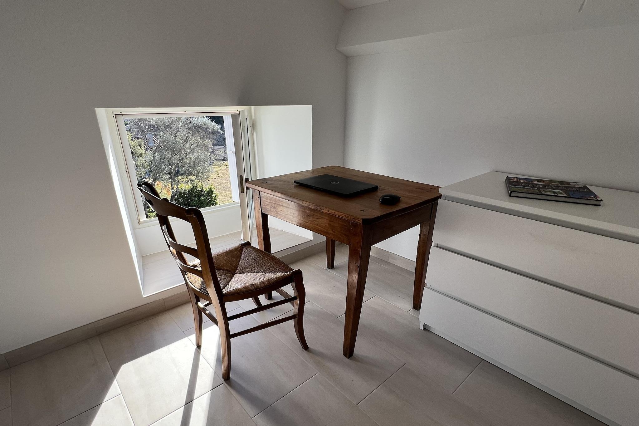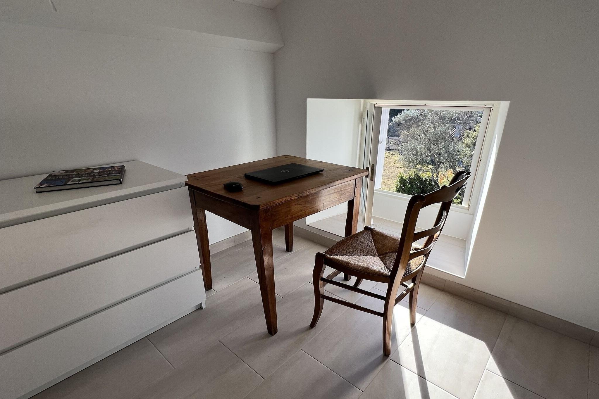 Stueetage: (Køkken(elkedel, brødrister, komfur(Komfur med fire kogeplader, gas), kaffemaskine, ovn, opvaskemaskine , køle-fryseskab, vaskemaskine, strygejern), stue / spisestue(50 m2)(Fjernsyn(Smart-TV), spisebord, kakkelovn(træ)), soveværelse(dobbeltseng(140 x 190 cm)), badeværelse(bruser, håndvask), toilet) På 1. etage: (soveværelse(enkeltseng(90 x 190 cm), enkeltseng(90 x 190 cm), enkeltseng(90 x 190 cm)), svalegang soveværelse(enkeltseng(90 x 190 cm), dobbeltseng(140 x 190 cm)), badeværelse(badekar, håndvask), toilet) pejs, mikrobølgeovn, badekar eller bruser, varme, klimaanlæg, terrasse, havemøbler, solstole, grill(trækul), parkering, Parasol, swimmingpool(privat, udendørs, 11 x 5 m.), petanquebane, bordtennisbord, hyggespil
