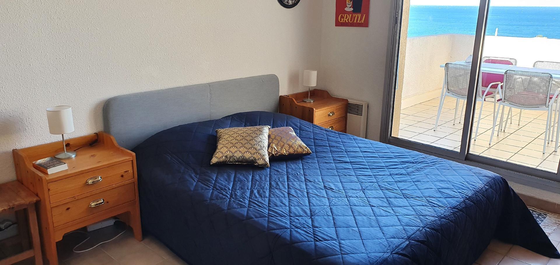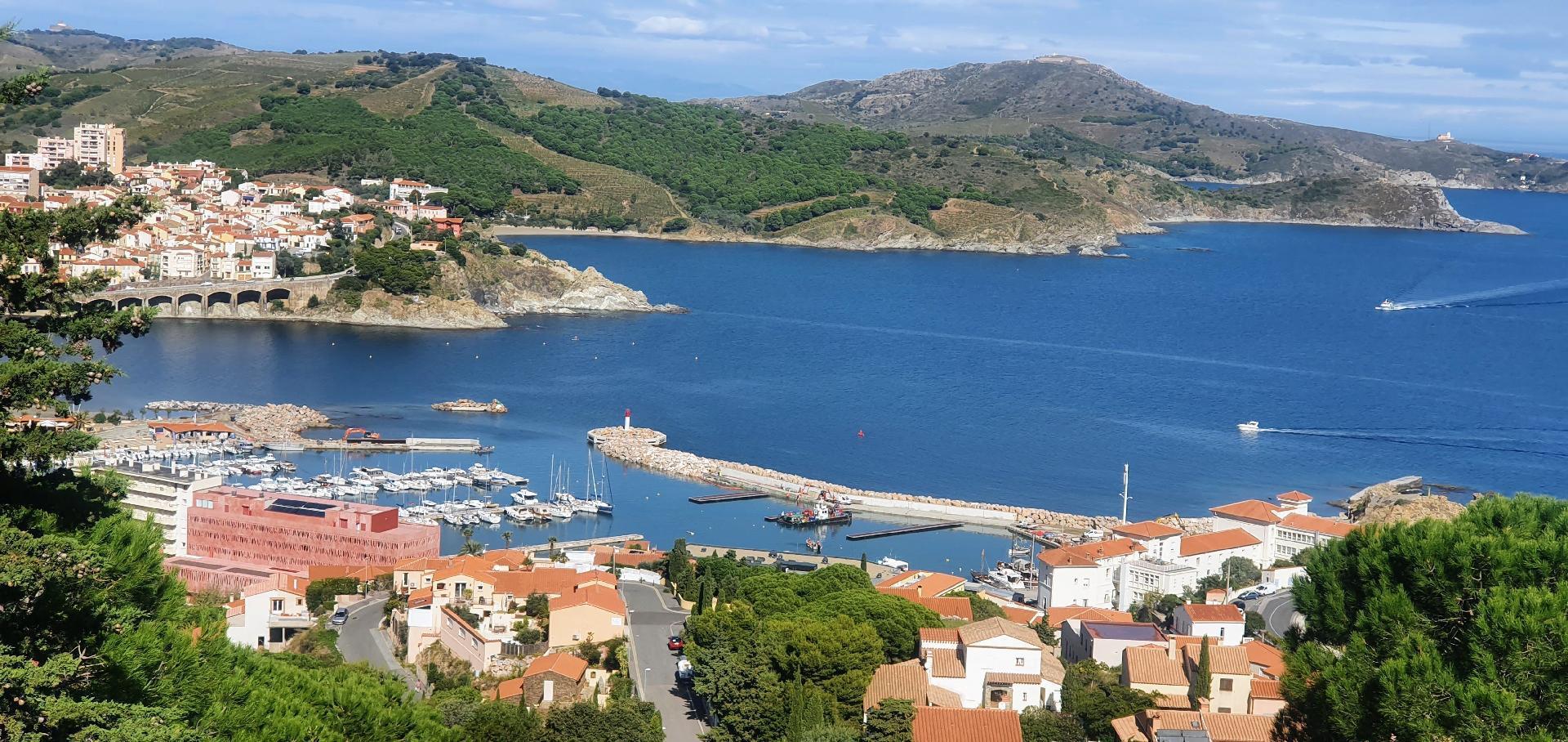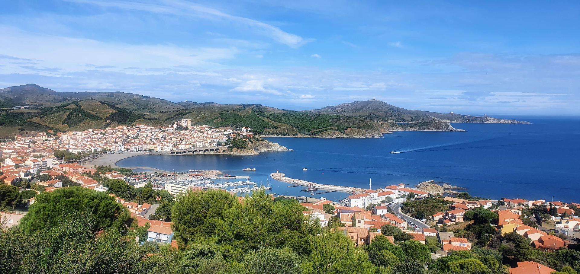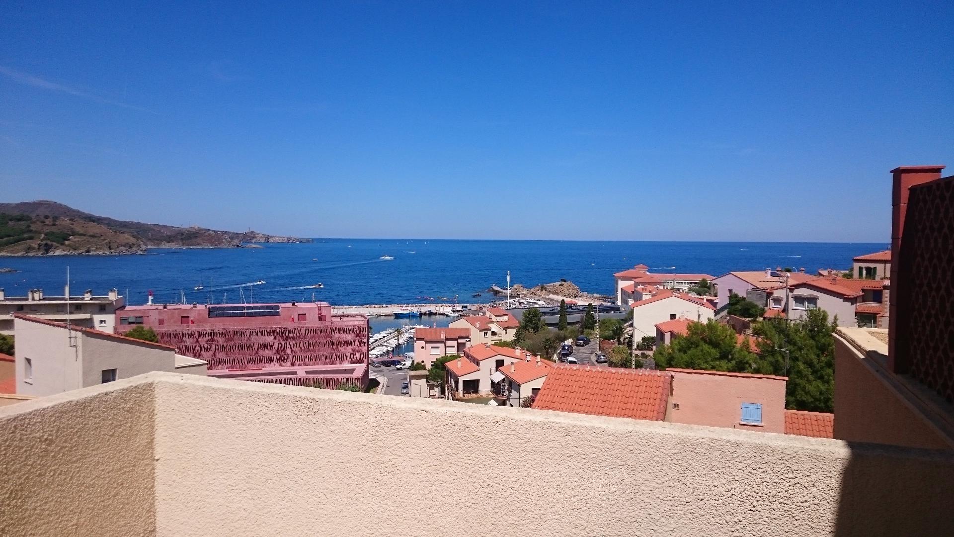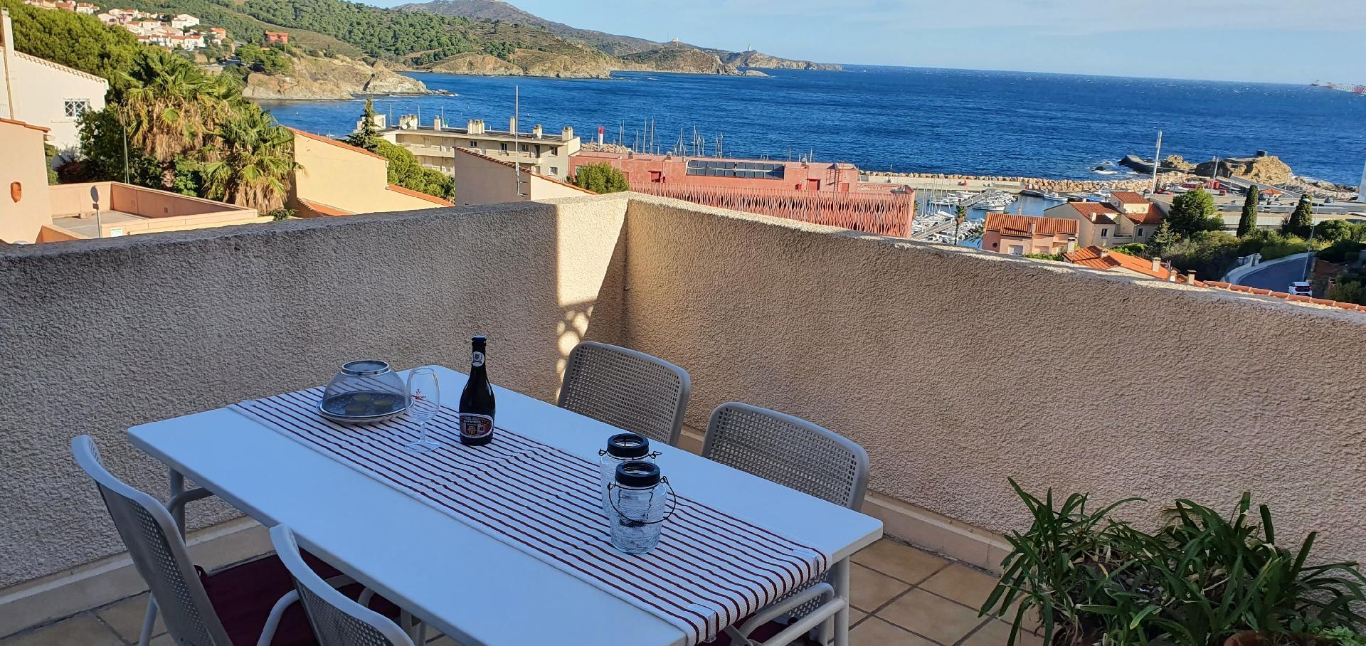 This studio apartment in an elevated location and with a great sea view is in Banyuls-sur-Mer in the south of France, just a few hundred metres from the sea.