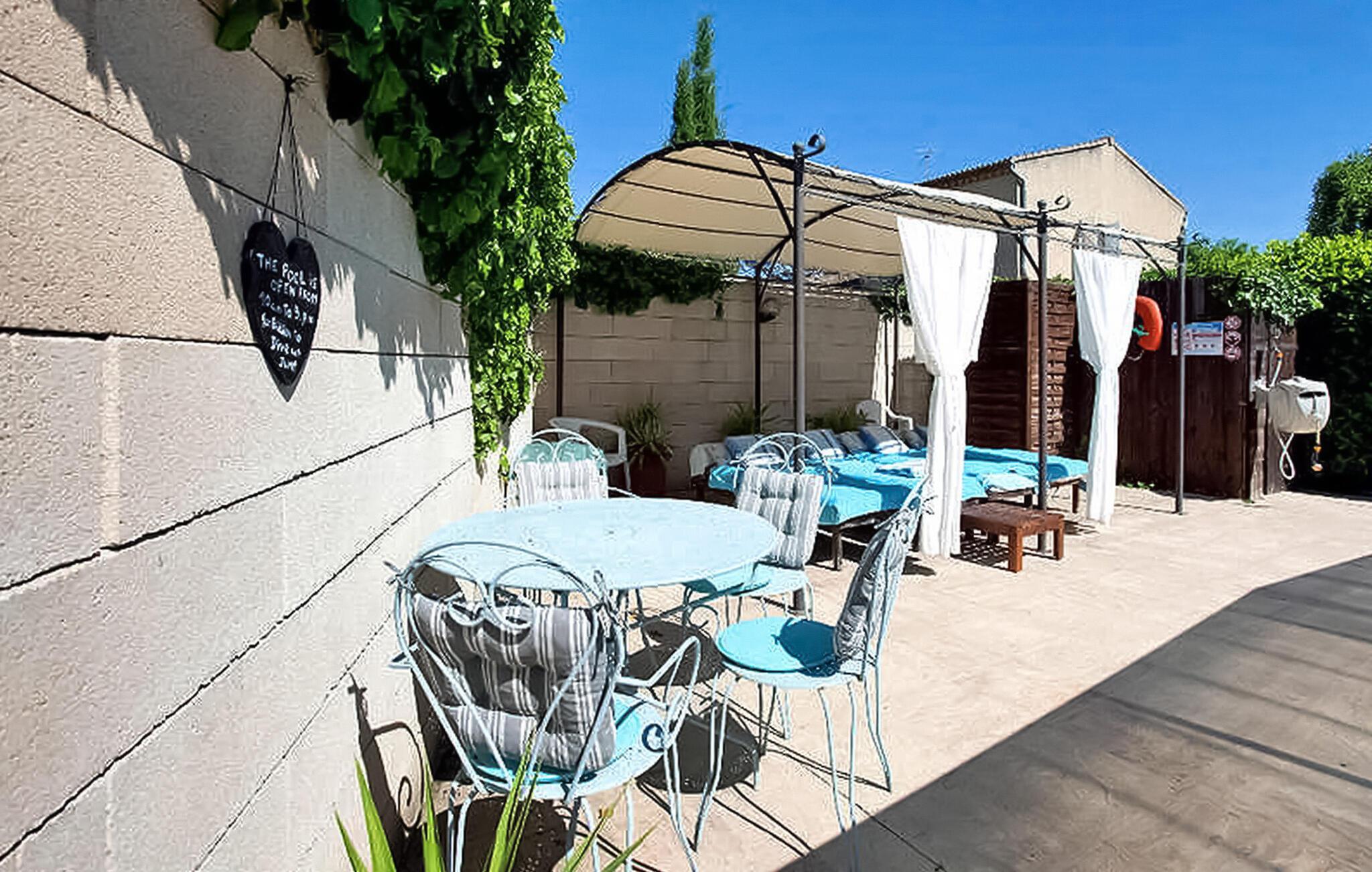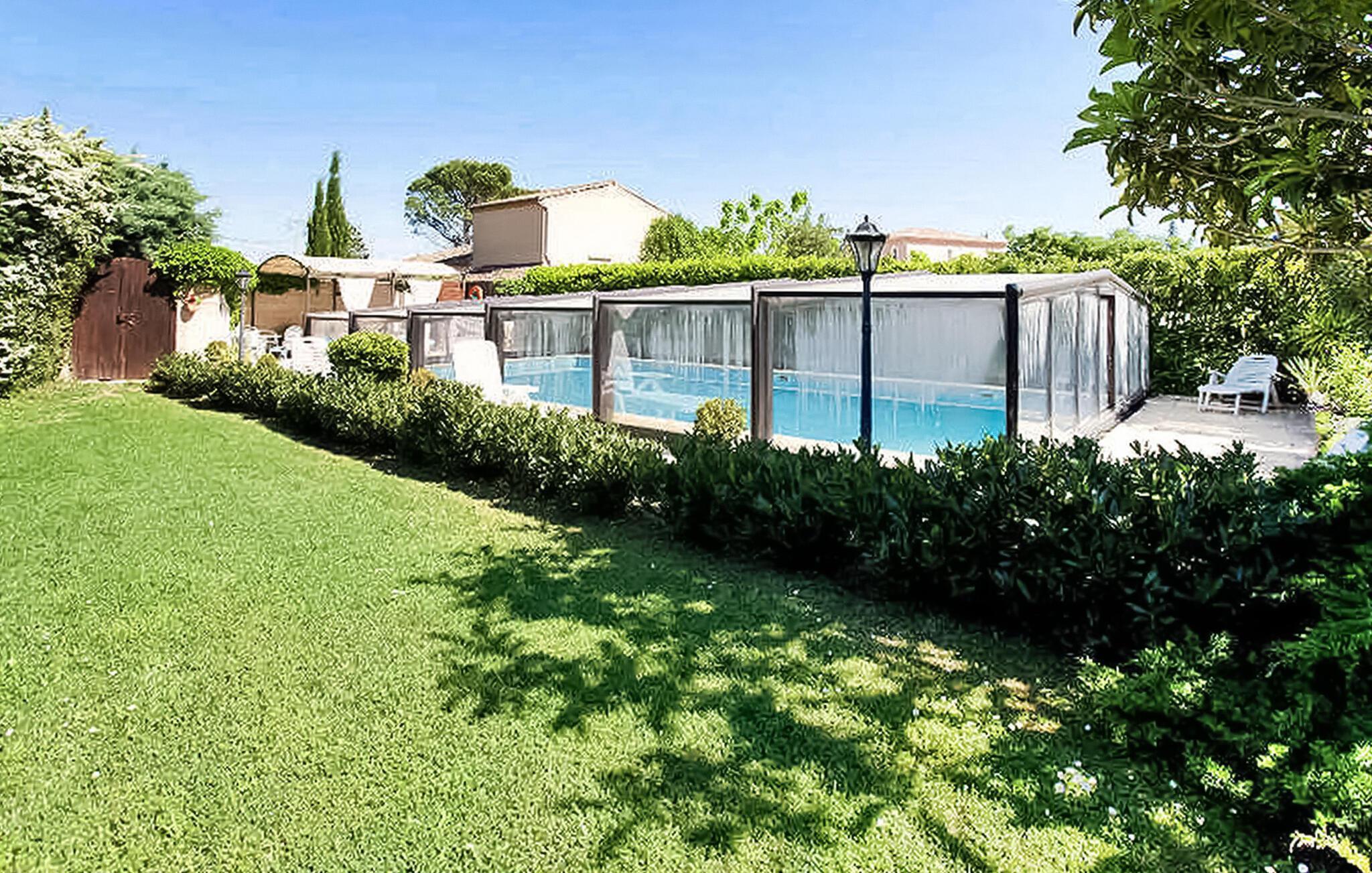 Denne dejlige provencalske feriebolig i Barbentane, beliggende mellem Avignon og Saint Remy de Provence, giver et fredfyldt tilflugtssted inden for rækkevidde af lokale butikker. Stueetagen består af et veludstyret køkken med udgang til terrasse, en rummelig spise-stue med masser af siddepladser og adgang til haven. På første sal venter soveværelserne. Derudover rummer en mezzanin en ekstra dobbeltseng. Udendørs lokker en have med gynge og bordtennis sjov. Den overdækkede terrasse har udsigt over haven og den indbydende 12m x 6m private pool. Poolen, der er sikret af et automatisk shelter, tilbyder dybder fra 1,1 m til 2,6 m med liggestole, en skyggefuld pergola og en praktisk poolbruser. Væsentlige bemærkninger: - Ejere bor i et uafhængigt dobbelthus mod nord, der kun deler parkeringsområdet. - Ejere bruger ikke poolen eller haven. - Vær opmærksom på en vej, der passerer inden for 50 m fra ejendommen. Oplev dette charmerende ferieparadis for dit ophold mellem Avignon og Saint Remy de Provence, og lover en fredfyldte og indbydende ramme for din ferie. Huset ligger i udkanten af landsbyen, i et boligområde, ca. 1 km fra butikkerne. Huset ligger 2 km fra Golf de Barbentane (6 huller). I nærheden kan du gå eller cykle i bakkerne i "Montagnetten" i nærheden, du besøger Avignon, Saint Remy de Provence, Les Baux de Provence, klosteret Saint Michel de Frigolet og opdager Camargues kyst (strande).