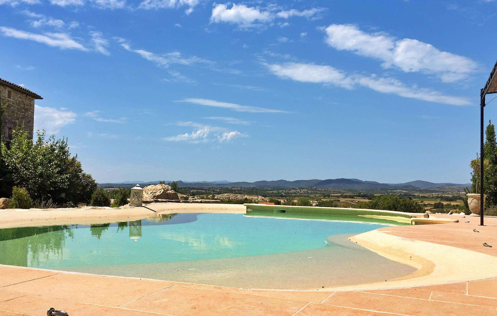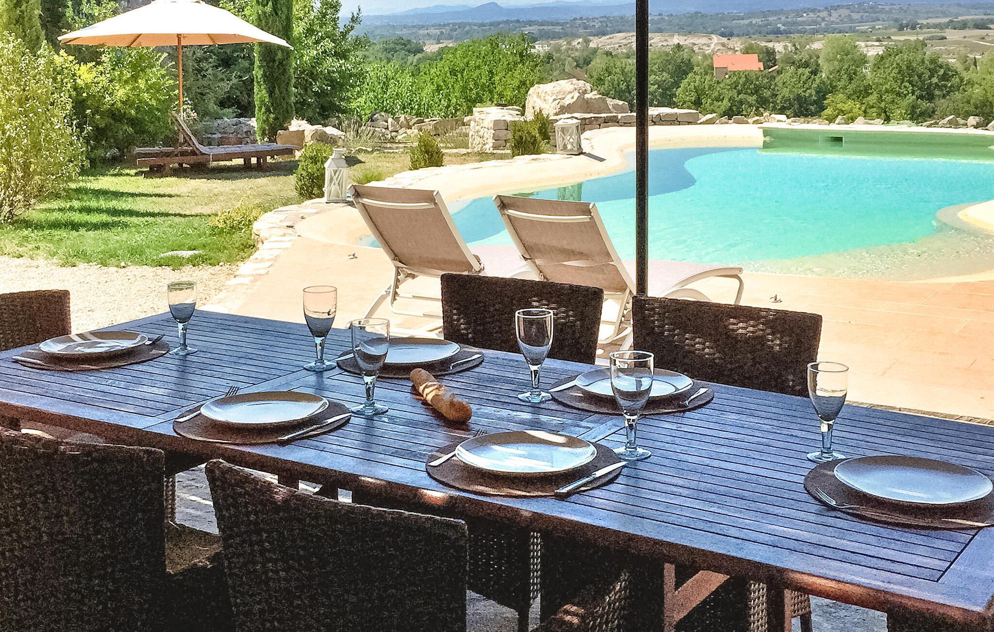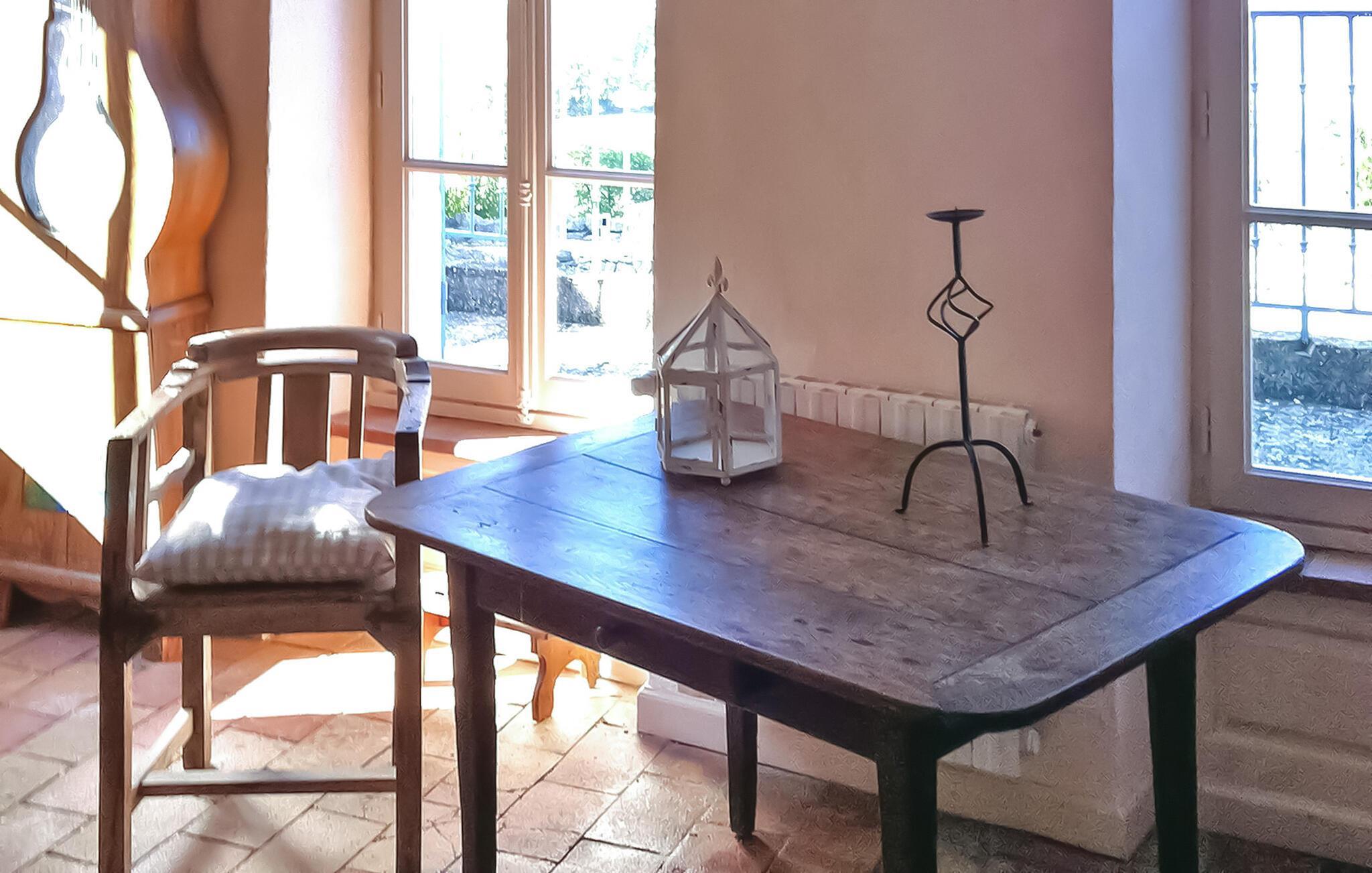 en malerisk landsby, ikke langt fra den charmerende by Barjac, ligger et dejligt sommerhus og venter på din ankomst. Beliggende i Avéjan i Provence-regionen Gard, tilbyder denne hytte et fredfyldt tilflugtssted og har en privat opvarmet pool. Udsmykket med en have med udsigt over dalen, lover dette idylliske sommerhus fascinerende solnedgange. Perfekt placeret til at udforske regionens skatte, det fungerer som en fremragende base for dagsture til ikoniske vartegn såsom Pont du Gard, Gorges de l'Ardèche og flere middelalderlandsbyer. Sommerhuset byder på et veludstyret køkken, et indbydende soveværelse i stueetagen med udgang til haven og en hyggelig opholdsstue på første sal. Anden sal i loftsstil har to charmerende soveværelser, det ene med eget brusebad. Udenfor inviterer ejendommen til afslapning med sit store skovområde og en petanquebane til afslappende spil. Den private opvarmede pool, udsmykket med liggestole og parasoller, tilbyder et forfriskende pusterum. En terrasse med en grill og et bord til udendørs spisning fuldender det indbydende udendørs rum. Ferieboligen er beliggende i hjertet af den lille landsby Avéjan i Gard, Provence. Alle butikker i Barjac (7 km). Der er mange interessante steder at besøge i området: Huler, romerske monumenter, ørkenmuseet, den berømte Pont du Gard, Gorges de l'Ardèche (kanosejlads). Nyd din ferie i et hjem i Gard i Provence.