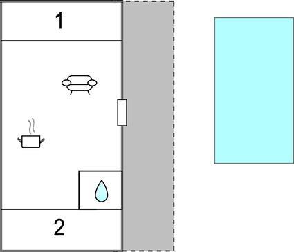 Komb. spisestue/køkken 15m2 - 2 Sovepladser. (Sofa, madras eller lignende).
