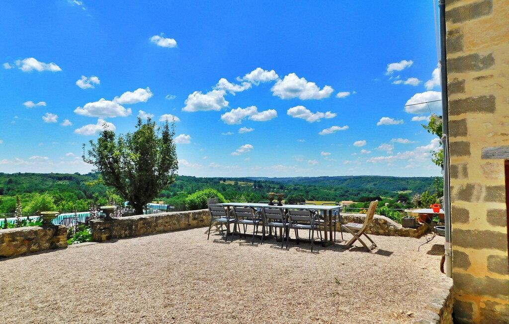 Beliggende i fredfyldte landskabelige omgivelser tilbyder denne stenferieleje et idyllisk tilflugtssted. Denne ejendom er omfavnet af en flot udsigt over enge, skove og vandrestier og er en del af en gammel bondegård bestående af 2 huse, hvor ejernes bolig er ubeboet under dit ophold. En malerisk restaurant i landsbyen Bars, cirka 1,3 km væk, byder på en smag af lokale retter, mens væsentlige faciliteter kan findes omkring 7 km væk i Thenon. Boligen byder på et hyggeligt opholdsrum med et komfortabelt opholdsområde med en stor åben pejs. En spiseplads sidder ved siden af, forbundet med et veludstyret åbent køkken og adgang til en privat terrasse. Derudover har ejendommen et legeområde med træhytte og gynge samt et bordtennisbord. Udendørs kan du nyde udsigten over landskabet fra terrassen sammen med en grill til udendørs spisning. Oplev en indhegnet og sikker privat opvarmet pool, komplet med en poolterrasse. Derudover venter en privat tennisbane, 100 m fra huset, på sportsentusiaster. Ferieboligen er en del af et smukt renoveret bondehus, fredelige omgivelser på landet, du finder de nærmeste butikker i landsbyen Thenon (7 km). Bemærk venligst: Boligen er en del af en ejendom med 2 huse og enkelte lukkede udhuse. Ejerne vil ikke være til stede under dit ophold. En anden lille landsby ligger cirka 500 m væk.