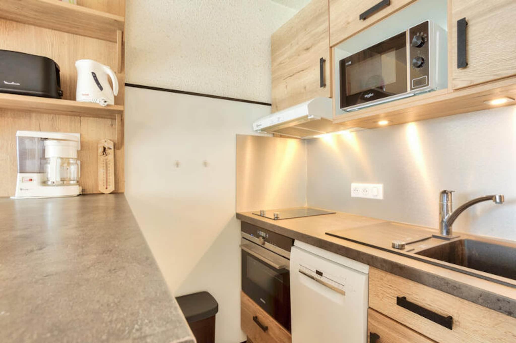I hjertet af den fredfyldte Haute-Maurienne-dal, hvor den friske bjergluft stimulerer sanserne, inviterer denne charmerende studiolejlighed i L'Albaron-residensen dig til at opleve den ægte essens af livet i Alperne. Med sin vestvendte altan kan du nyde solnedgangens gyldne farver, mens du betragter de majestætiske bjergtoppe, der omgiver den maleriske landsby Bessans. Dette fredfyldte fristed tilbyder den perfekte balance mellem komfort og eventyr, hvilket gør det til et ideelt feriested for par eller små familier, der søger en fredelig bjergferie. Studiet er omhyggeligt designet for at maksimere plads og funktionalitet og har et hyggeligt bjerghjørne med køjesenge og en komfortabel dobbelt sovesofa i opholdsstuen. Det fuldt udstyrede køkken med mikroovn, køleskab, ovn og opvaskemaskine giver dig mulighed for at tilberede solide måltider efter en dag med udforskning. Moderne faciliteter såsom gratis Wi-Fi og fladskærms-tv sikrer et afslappende ophold med god forbindelse. Badeværelset har badekar og håndvask, mens et separat toilet tilføjer ekstra bekvemmelighed. Skiskabe og privat underjordisk parkering øger praktiskheden af dette alpine fristed. Bessans, der er kendt for sin uberørte natur og solrige højtliggende plateau, er et paradis for friluftsentusiaster. Kun 500 meter fra landsbyens centrum finder du charmerende butikker, lokale tjenester og nem adgang til langrendsløjper og vandrestier. Uanset om du glider gennem uberørt sne om vinteren eller vandrer gennem livlige alpine enge om sommeren, lover det omgivende landskab uforglemmelige øjeblikke. Vælg denne dejlige studiolejlighed på grund af dens uovertrufne beliggenhed, varme atmosfære og nærhed til Haute-Maurienne-regionens vidundere. Her afslører hver sæson et nyt eventyr, og hver dag begynder med løftet om ro og opdagelse.