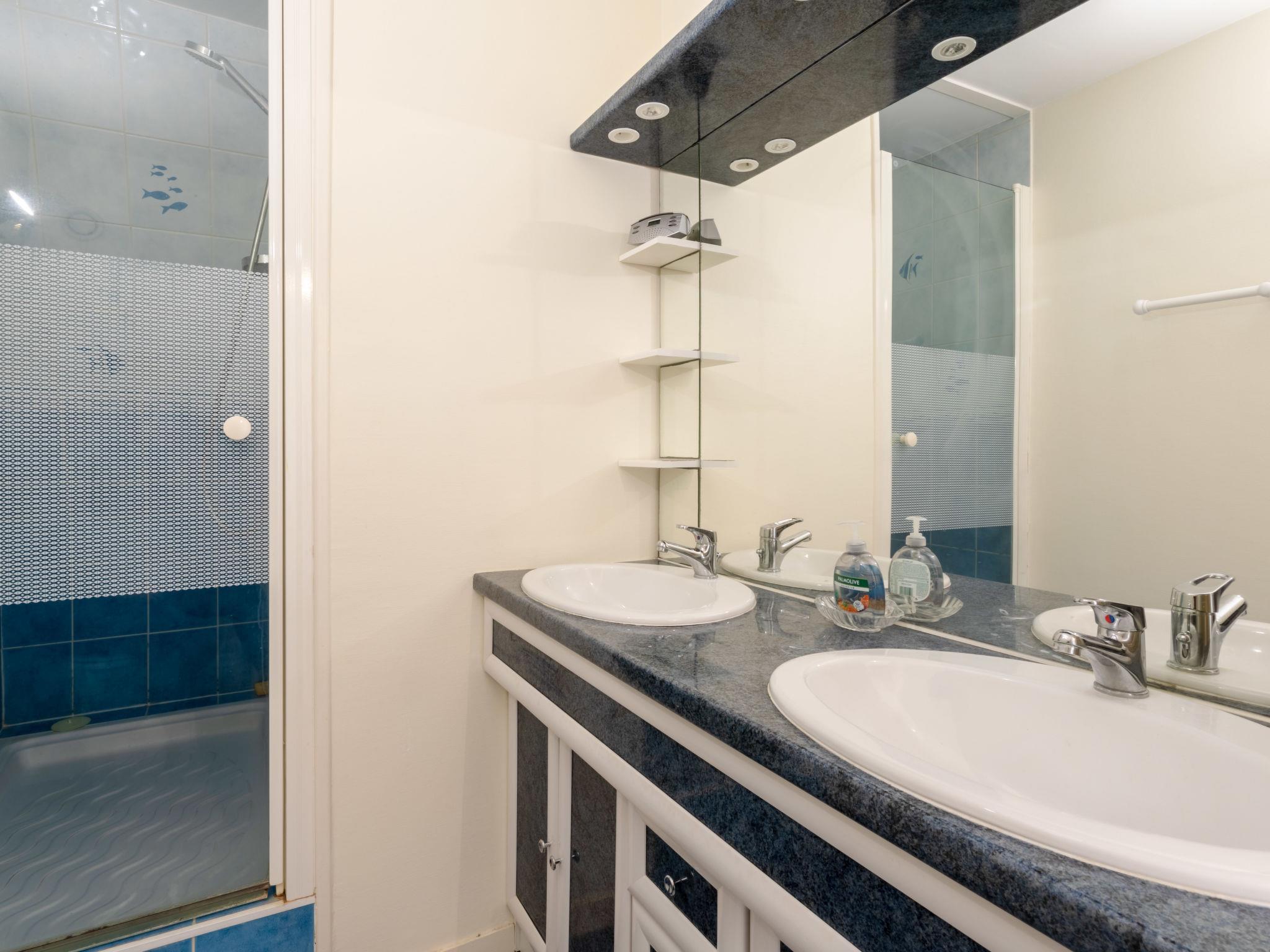 3-room apartment 65 m2 on 2 levels on 5th floor, west facing position. Living/dining room with 1 double sofabed (140 cm, length 190 cm), TV (flat screen), electric shutters. Exit to the balcony. 1 room with 1 bed (90 cm, length 190 cm). Kitchen (4 hot plates, oven, microwave, freezer, electric coffee machine). Sep. WC. Electric heating. Upper floor: 1 large room with 1 french bed (160 cm, length 200 cm), TV (flat screen). Exit to the terrace. Shower/WC. Large terrace 70 m2. Terrace furniture, deck chairs. Very beautiful view of the sea, the river and the port. Facilities: washing machine, iron. Internet (WiFi, extra). Parking space n 709 (roofed). Please note: smoke alarm.