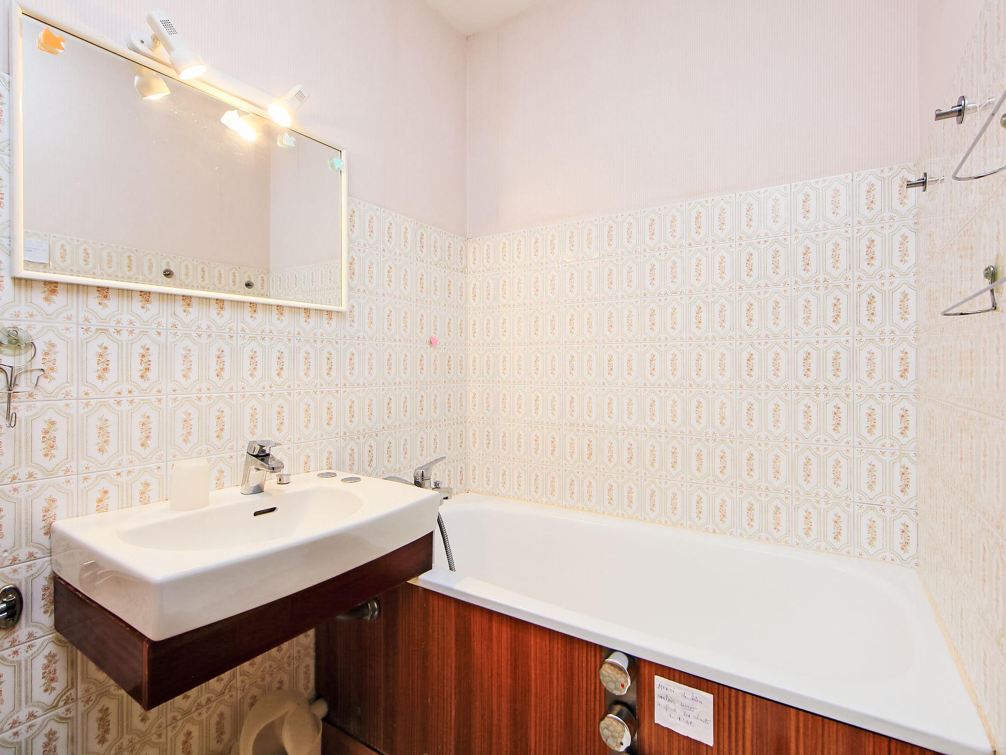 2-room apartment 35 m2, on the ground floor, south-west facing position. Living/dining room with 1 double sofabed (140 cm, length 190 cm), TV, flat screen and electric shutters. Exit to the terrace, to the patio. 1 room with 1 french bed (140 cm, length 200 cm), bathroom. Exit to the terrace, to the patio, south facing position and west facing position. Kitchen (oven, dishwasher, 3 ceramic glass hob hotplates, toaster, kettle, microwave, electric coffee machine). Sep. WC. Electric heating, boiler. Parquet floors. Terrace 15 m2, patio. Terrace furniture. Facilities: iron, hair dryer. Internet (WiFi, extra). Parking space n 69. Please note: non-smokers only. Smoke alarm. There is a fairly high step to access the terrace.