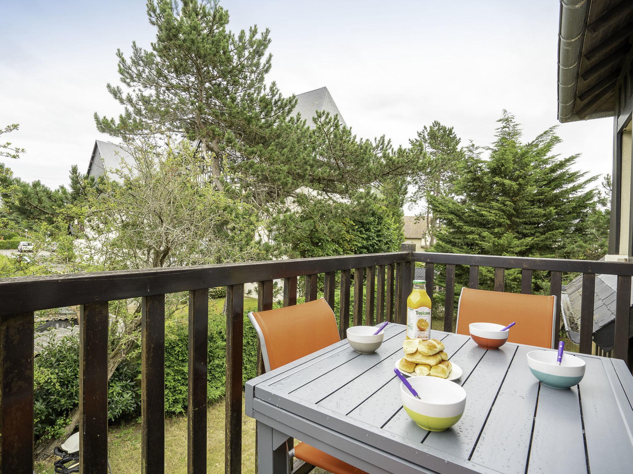 Residence "Fleur Marine". In the resort 1 km from the centre of Cabourg, 300 m from the sea, 300 m from the beach, direct access to the beach. For shared use: boccia, parking (limited number of spaces). Shop 1 km, grocery 1 km, supermarket 900 m, restaurant 1 km, bar 1 km, bicycle rental 550 m, bus stop "Plage" 450 m, sandy beach 300 m, thermal baths "Thalazur" 500 m. Sports harbour 3 km, golf course (9 hole) 1.2 km, tennis 700 m, minigolf 2.3 km, sports centre 500 m. Nearby attractions: Deauville 26 km, Honfleur 48 km, Caen 25 km. Please note: no lift. The photograph shows a typical example. Composed of 2-storey terraced houses and 3-storey buildings in Norman style.