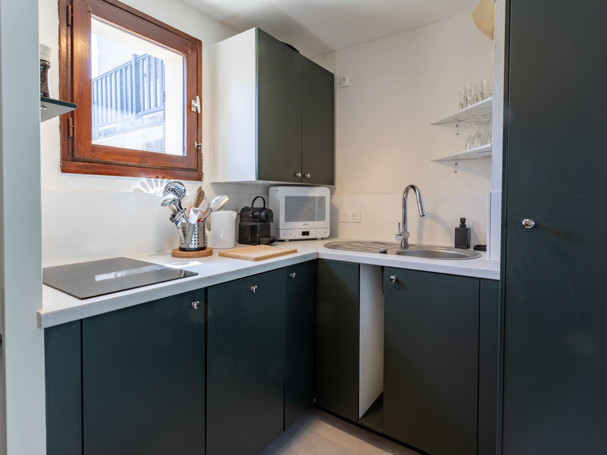 3-room apartment 47 m2 on 2 levels, on the ground floor, west facing position. Living/dining room with TV (flat screen). Exit to the garden, to the terrace, west facing position. Kitchenette (dishwasher, 2 induction hot plates, toaster, kettle, microwave, electric coffee machine, Capsules for coffee machine (Nespresso) extra). Upper floor: 1 room with 1 french bed (160 cm, length 200 cm). 1 room with 1 x 2 bunk beds (90 cm, length 190 cm). Shower/WC. Electric heating. Parquet floors. Terrace 8 m2, patio 15 m2. Terrace furniture, deck chairs (2). Facilities: iron. Internet (WiFi, free). Parking space n 1G. Please note: non-smokers only. Smoke alarm. Offer by a private individual according to Art. 155, IV of CGI.