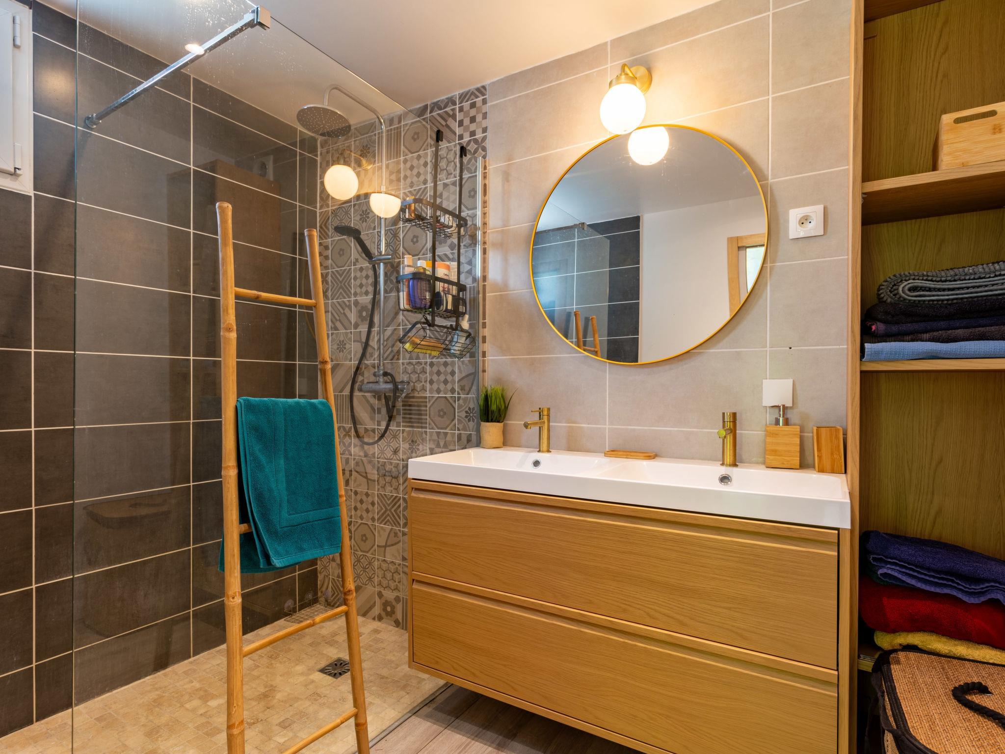 6-room house 170 m2 on 2 levels, south facing position. Living/dining room with open-hearth fireplace and TV (flat screen). Exit to the garden, to the terrace. 1 room with 1 french bed (140 cm, length 190 cm), shower and double hand-basin. Exit to the terrace. Kitchen (oven, dishwasher, 4 ceramic glass hob hotplates, toaster, kettle, microwave, freezer, electric coffee machine, Capsules for coffee machine (Nespresso) extra). Sep. WC. Electric heating. Upper floor: 1 room with 2 beds (90 cm, length 190 cm). 1 room with 1 pull-out bed (2 x 90 cm, length 190 cm). 1 room with 1 french bed (140 cm, length 190 cm). 1 room with 2 beds (90 cm, length 190 cm), TV (flat screen). Bath/WC, double hand-basin. Electric heating. Parquet floors. Terrace 120 m2, south facing position. Terrace furniture, barbecue, deck chairs. Facilities: washing machine, iron, hair dryer. Internet (WiFi, free). Please note: smoke alarm. Offer by a private individual according to Art. 155, IV of CGI.