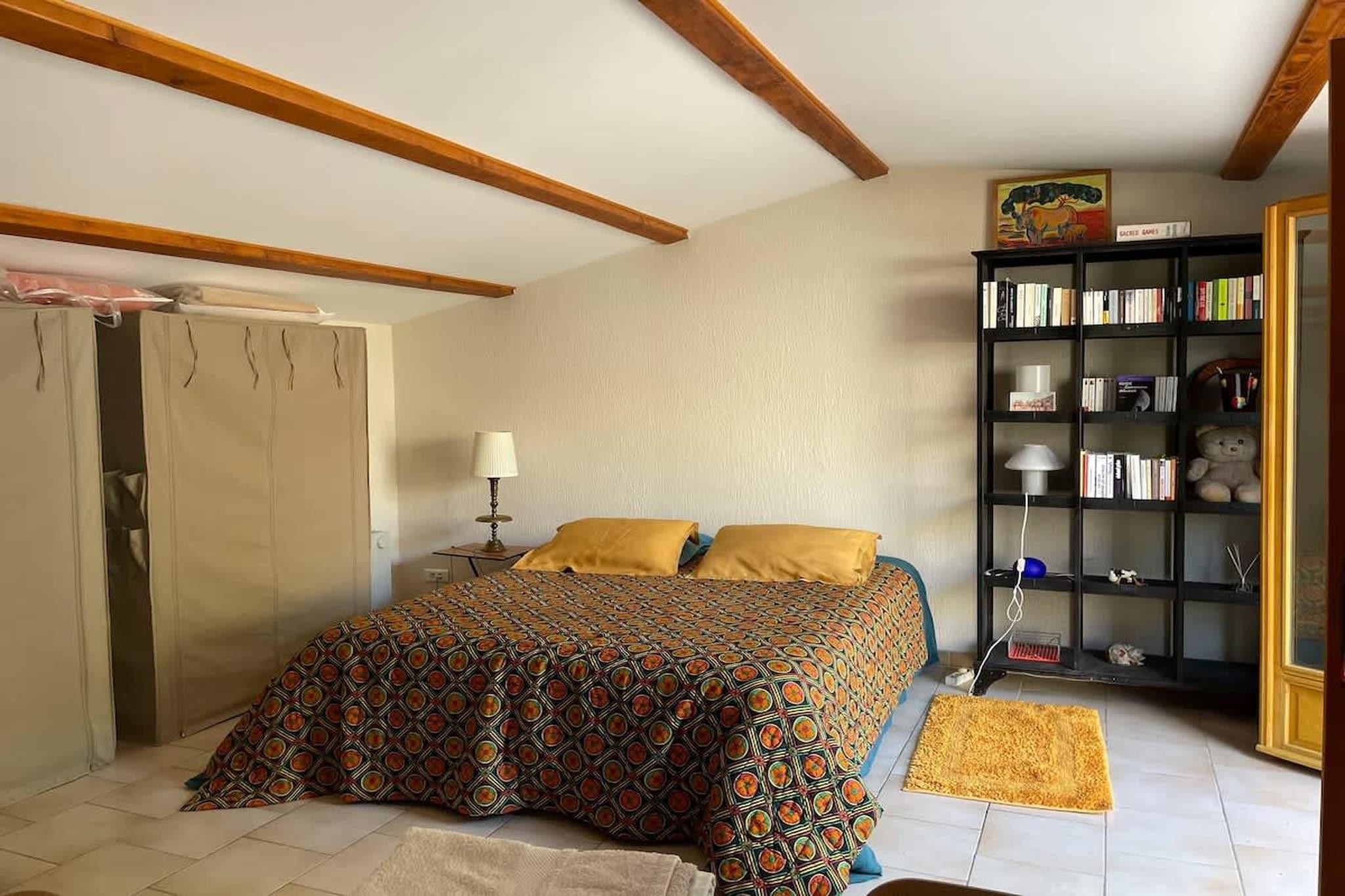 Oplev den ideelle studiolejlighed kun en kort, behagelig gåtur fra den maleriske landsby Cabrières-d"Avignon, der tilbyder en smuk udsigt over de majestætiske Luberon-bjerge. Dette hyggelige og komfortable tilflugtssted er perfekt til op til to personer, der søger en afslappende ferie. Beliggenheden er bekvemt placeret ved den udendørs pool og er en meget behagelig base for at nyde solen. Studiolejligheden er funktionelt designet for at sikre maksimal komfort og uafhængighed. Den har en kingsize-seng, der er problemfrit integreret med et brusebad og toiletområde, hvilket maksimerer pladsudnyttelsen. Et lille åbent køkken med spiseplads er fuldt udstyret med alt hvad du behøver, inklusive komfur, ovn, mikrobølgeovn, minikøleskab, fryser, kaffemaskine, elkedel og vinglas. Til underholdning tilbyder studiolejligheden et tv, dvd-afspiller, hi-fi-system og pålidelig Wi-Fi. Yderligere bekvemmeligheder inkluderer varme, hårtørrer, ekstra puder og tæpper samt fornødenheder. Gæsterne har en privat indgang og en sikker parkeringsplads lige foran boligen. Udenfor kan ejendommen prale af en smuk lukket have, perfekt til afslapning. Højdepunktet er swimmingpoolen, der generelt er åben fra kl. Maj til september (gæster bedes kontakte ejerne vedrørende åbningstider i april/oktober). En dejlig sommerterrasse venter med gasgrill og udendørs siddepladser til uforglemmelige spisestunder under åben himmel. For vandrere ligger en fem hektar stor cedertræsskov med fitnesssti og picnicområde nord for landsbyen. De diskrete ejere bor i den nærliggende villa og tilbyder lokal rådgivning og assistance, hvis det er nødvendigt. Små hunde er velkomne efter anmodning.