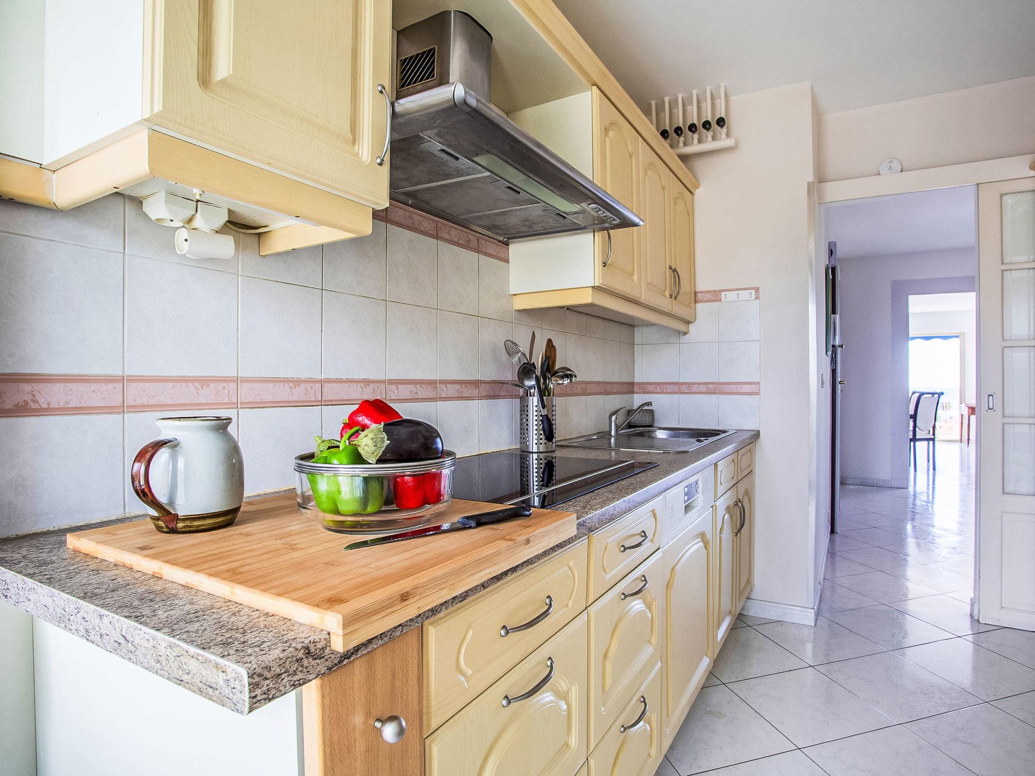 3-room apartment 100 m2 on 5th floor, south facing position. Spacious, partly renovated in 2025, comfortable furnishings: large living/dining room with 1 double sofabed (1 x 140 cm, length 190 cm), TV (flat screen). Exit to the terrace. 1 large room with 1 french bed (1 x 160 cm, length 200 cm). Exit to the balcony. 1 large room with 1 french bed (2 x 80 cm, length 200 cm). Exit to the balcony. Large kitchen (oven, dishwasher, 3 induction hot plates, toaster, kettle, microwave, electric coffee machine). Exit to the balcony. Shower/WC, sep. WC. Heating, air-conditioning. Large balcony 10 m2, north facing position, terrace 15 m2, south facing position. Terrace furniture. Very beautiful panoramic view of the sea, the countryside and the resort. Facilities: washing machine, iron, hair dryer. Internet (WiFi, free). Garage (1 car). Please note: non-smoking house. Smoke alarm. Offer by a private individual according to Art. 155, IV of CGI. 06027039026HT