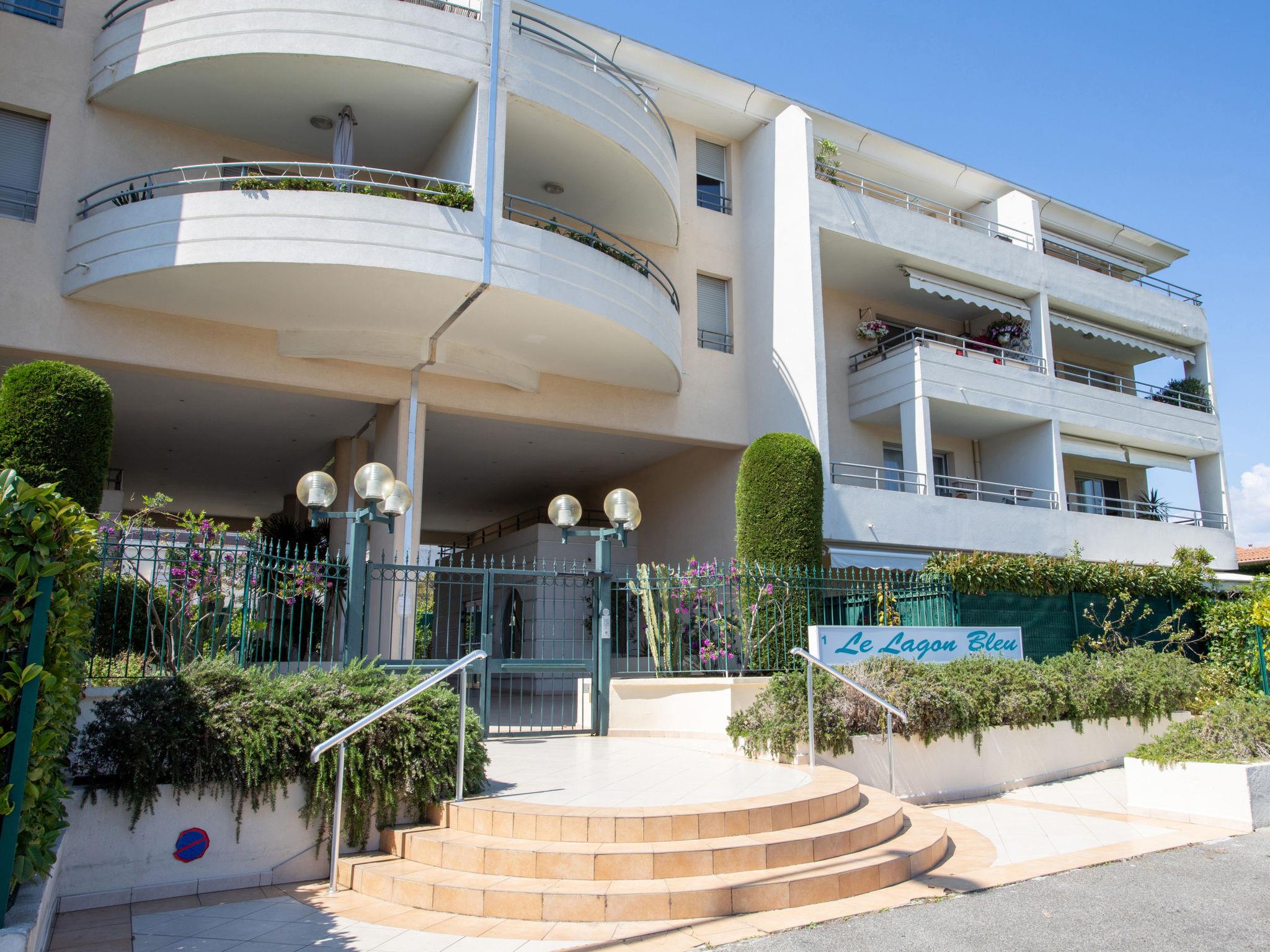 Residence "Le Lagon Bleu", 3 storeys. Excellent location: right in the centre but still quiet, 400 m from the sea, from the beach, east facing position. Grocery 450 m, supermarket, restaurant, bar, bakery 450 m, bus stop "val fleuri" 160 m, railway station "gare du cros" 500 m, shingle beach "plage du cros" 400 m. Sports harbour 3 km, sailing school 2 km. Nearby attractions: haut de Cagnes médiéval 3.7 km, promenade des anglais Nice 9 km, Centre commercial Cap 3000 2.6 km.